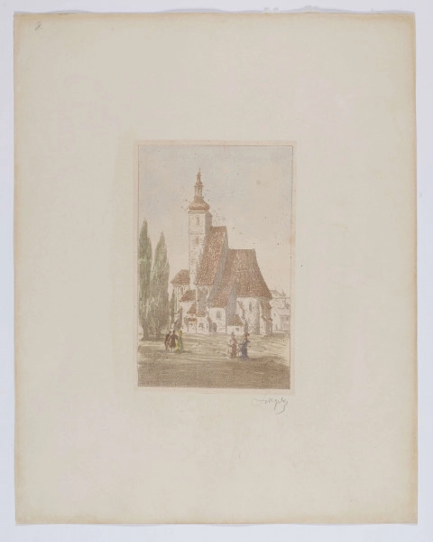 The portfolio Lublin is one of the most beautiful graphic portraits of the city, which the artist supplemented with three boards not related to architecture. These include two versions of Sosenka [The Pine] and Stara lipa w Piotrawinie [The Old Lime in Piotrawina]. Wyczółkowski prepared the drawing sketches during his stay in Lublin in 1918. Composed of seventeen auto-lithographic boards, the portfolio was published a year later in Kraków in twenty copies. After printing the edition assumed by the artist the lithographic stones were destroyed, which in Wyczółkowski's case was a frequent practice and gave his prints a unique character. The Church of St Michael the Archangel, located on an old hill in the heart of the Old Town, was the most important temple in Lublin. The period of progressive ruin of the church, which began in the 18th century, led to its demolition in the mid-19th century. To include the view of the temple in the Lublin portfolio, the artist had to refer to the available iconographic sources, modelling the board on the view by Adam Lerue included in Album Lubelskie. A rather faithful repetition of the compositional scheme and the resulting stiffness lost the lightness and finesse characteristic of the other panels of the portfolio, often subordinated to impression and the desire to capture the unique atmosphere of the city.