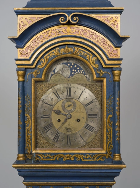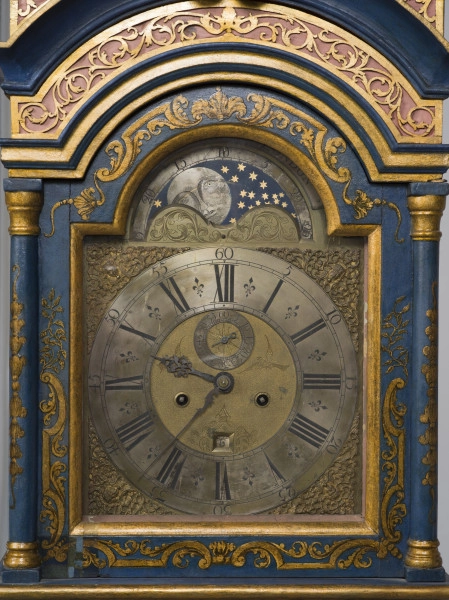The floor clock (forming a pair with the Wil.933 clock) is housed in a three-part high cabinet, typical of English longcase clocks of the early 18th century.