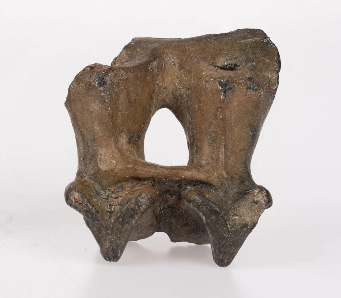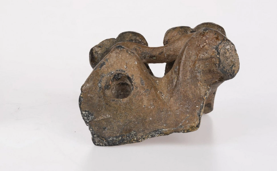 This monument, called a figurine, is in fact a part of an earthenware vessel, which unfortunately has not survived in its entirety to our times. Only a fragment, which was originally the ear of this hand-made vessel, has remained. It depicts a pair of oxen whose necks have been joined together with a yoke - a harness for draught cattle.