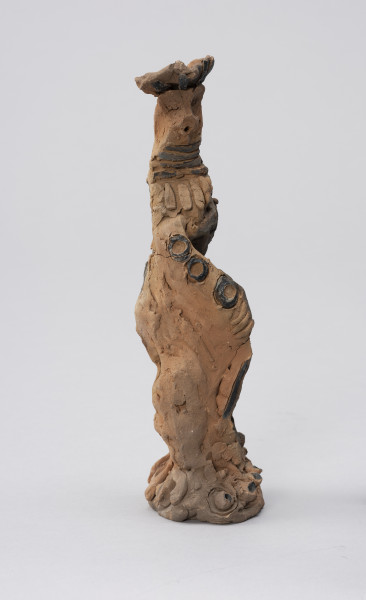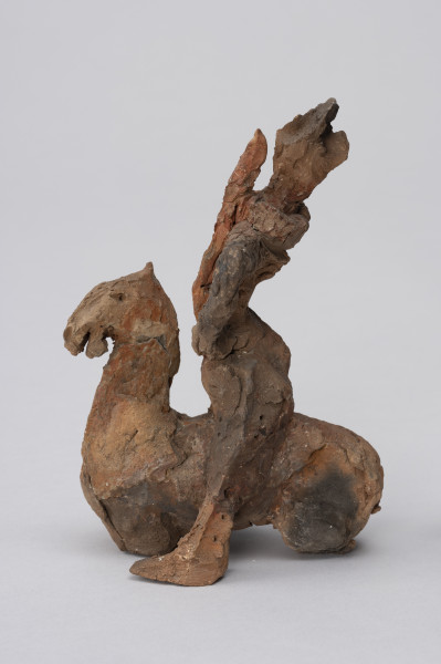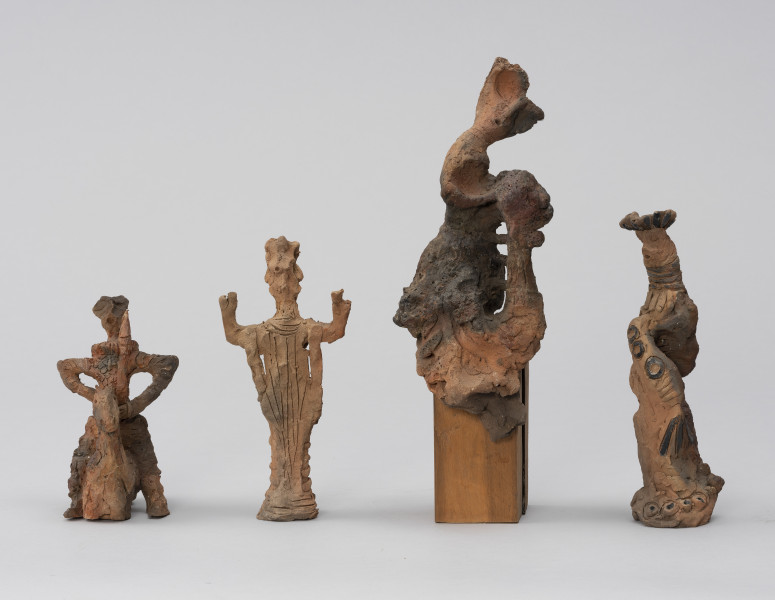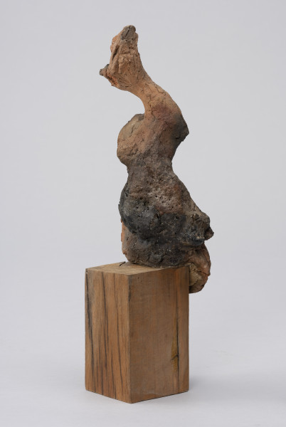 In the latter, 14 sarcophagi of the ducal family were discovered, filled with relics of Renaissance costumes. The event was not only noted by the national media, but also by local writers and visual artists. In December 1946, three months after the opening of the tin tombs, Sławomir Lewiński presented the painting Crypt with ashes of the Piasts in the Szczecin Castle during the Second Exhibition of Works by Members of the Association of Polish Artists in the City Museum. He returned to this theme in 1960, preparing a bust of Boguslaw X, modelled on 16th-century iconography, for the local primary school 36. Two years later, experimenting with firing techniques in a self-built ceramic kiln, he made the sculptural group Twilight of the Kings. He combined elements of Renaissance costume, dismembered as if on an archaeological site, with a primitive, semi-abstract form, a terracotta magma – smoky, parched and cracked like the bricks of Gothic buildings salvaged from the conflagration of war.