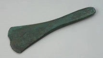 It is an exceptional specimen of a tool/weapon cast in bronze, characterised by a very narrow, long shank that transitions into a widened trapezoidal blade. The exquisitely selected proportions emphasise the slender silhouette of the item. Together with a small dagger and a gold spiral with several coils, the axe was found in a grave with a skeletal burial placed in a stone chest. It was discovered by accident on 4 May 1933 at the edge of a sand pick. Shortly after its discovery, the owner of the Sand pit permitted taking the find to the Museum in Trzebiatów. It was soon transferred to the Pommersches Landesmuseum in Stettin (Polish: Pomorskie Muzeum Krajowe w Szczecinie; English: Pomeranian State Museum in Szczecin), where it remained until 1944. Then the collection was evacuated due to repeated Allied air raids. The axe, dagger, and spiral were taken deep into Germany along with many other relics. All the grave equipment was returned to Szczecin only in 2009 due to the Polish-German exchange of old archaeological artefacts. The skeletal grave from Śliwin, dated to the 2nd half of the 1st to the beginning of the 2nd Bronze Age (approx. 1700-1500 BC), is a unique find in West Pomerania, containing bronze and gold objects. The research on the beginnings of the Bronze Age in the Pomeranian zone is based mainly on the so-called loose finds (without any known context of discovery), hoards of bronze objects, and few graves, often poorly documented.