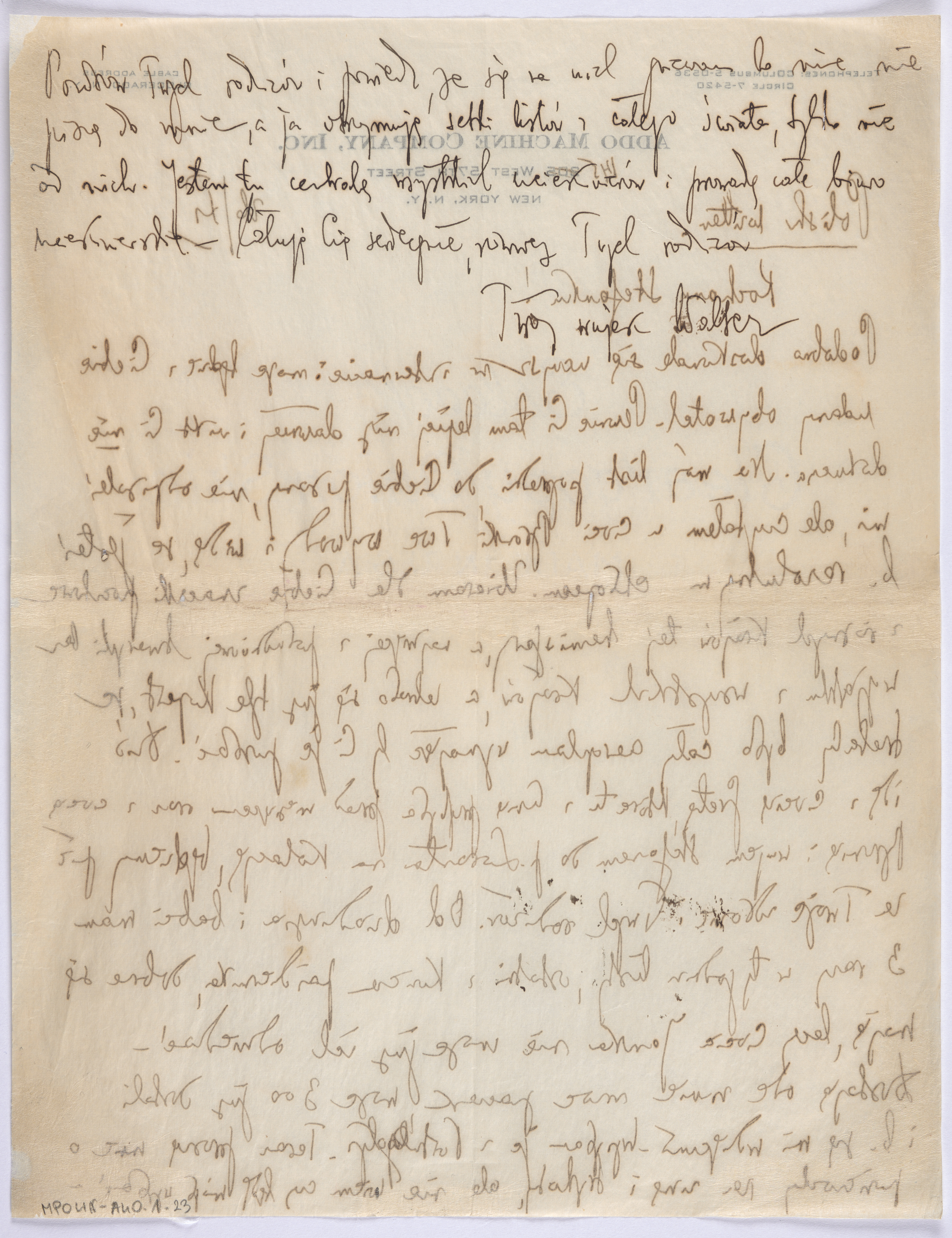 List Władysława Glocera do Stefana na 1 karcie. Z treści listu (pisownia oryginalna): „Podobno doskonale się uczysz w internacie i może będzie z Ciebie udany obywatel. Pewnie Ci tam lepiej niż dawniej i nikt Ci nie dokucza. Na mój list poprzedni do Ciebie pisany, nie odpisałeś mi, ale czytałem u Cioci Bronki Twe wywody i widzę, że jesteś bardzo rezolutnym chłopcem. Zbieram dla Ciebie znaczki pocztowe z różnych krajów tej hemisfery, a najwięcej z południowej Ameryki bez wyjątku z wszystkich krajów, a zebrało się już tyle kopert, że trzeba by było cały aeroplan wynająć by Ci je posłać.”