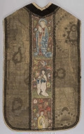 Egzemplarz z kolekcji lubelskiej to ornat brokatowy, rzymski, ze skróconym i esowato wykrojonym przodem. Środkową część stanowi preteksta z haftem figuralnym, który przedstawia Matkę Boską z Dzieciątkiem, św. Agnieszkę i św. Barbarę. Ciężar materii bogato dekorowanego ornatu miał również swoje znaczenie, przypominał o odpowiedzialności, jaką bierze na siebie duchowny – celebrans, sprawując liturgię.