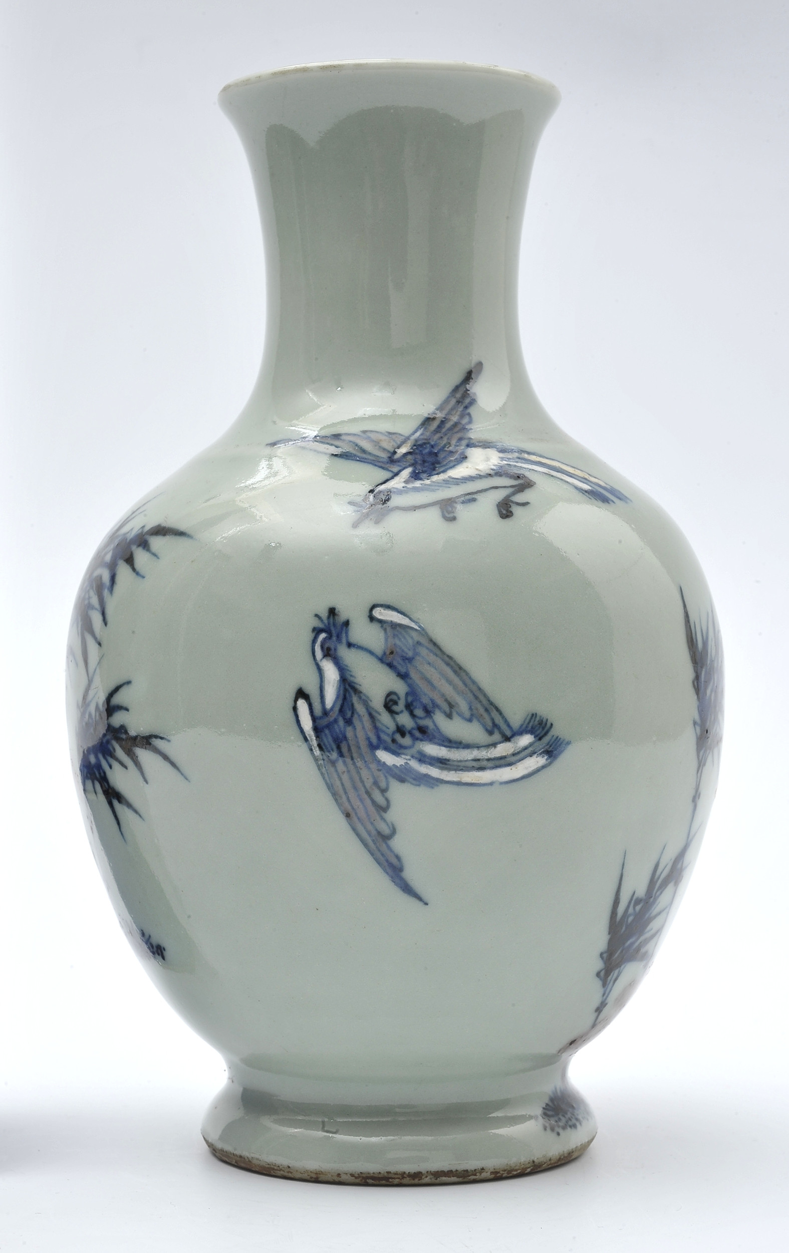 Porcelanowy wazonik o owoidalnym brzuścu płynnie przechodzącym w stosunkowo szeroką szyję z delikatnie rozchylonym wylewem. Powierzchnia wazonu została pokryta półprzejrzystym, seledynowym szkliwem. Kolorystyka ta nawiązuje do jadeitu, który był bardzo cennym i niezwykle pożądanym materiałem w kulturze Dalekiego Wschodu.