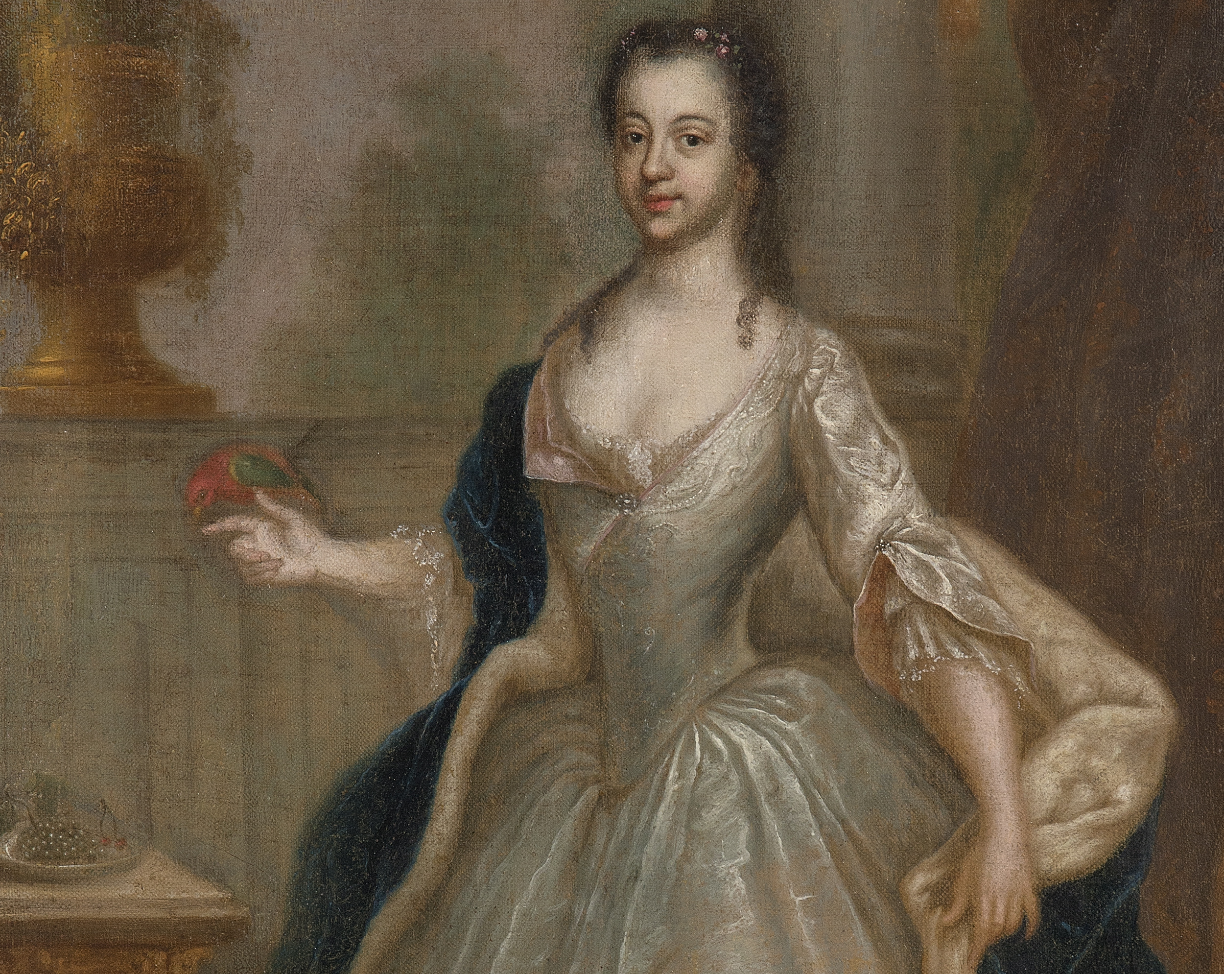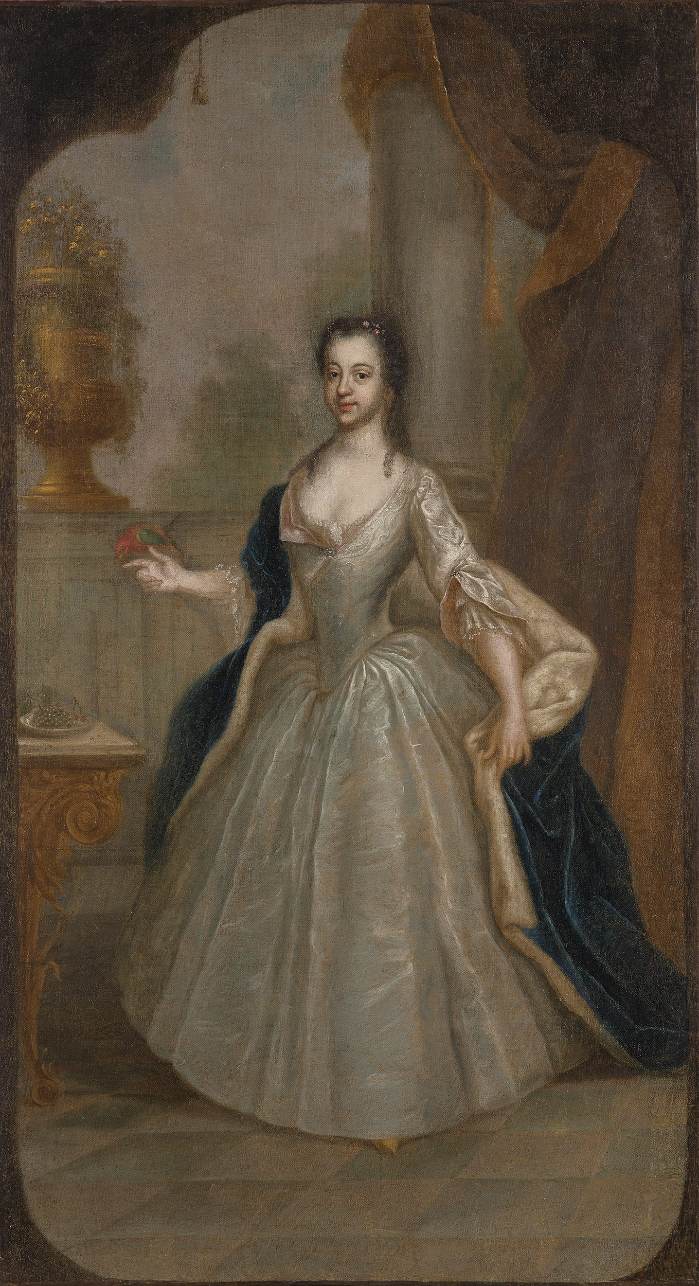 Zastosowany repertuar rekwizytów wiele mówi o pozycji i aspiracjach portretowanej. Kolumna odnosi się do znamienitości i starożytności rodu, z którego wywodzi się młoda arystokratka. Upięta na kształt kurtyny draperia, jakby odsłaniająca akt przedstawienia, przywodzi na myśl splendor żywota i barokowe zamiłowanie do teatralności. Papużka odczytywana być może jako przyjemny szczegół obyczajowy, powiew egzotyki i przepychu, lecz także jako symbol ślepego naśladownictwa innych i konformistycznego podążania za modą. W dalszym skojarzeniu może być odnoszenia do posłuszeństwa, powtarzania wyuczonych konwencjonalnych ról społecznych.