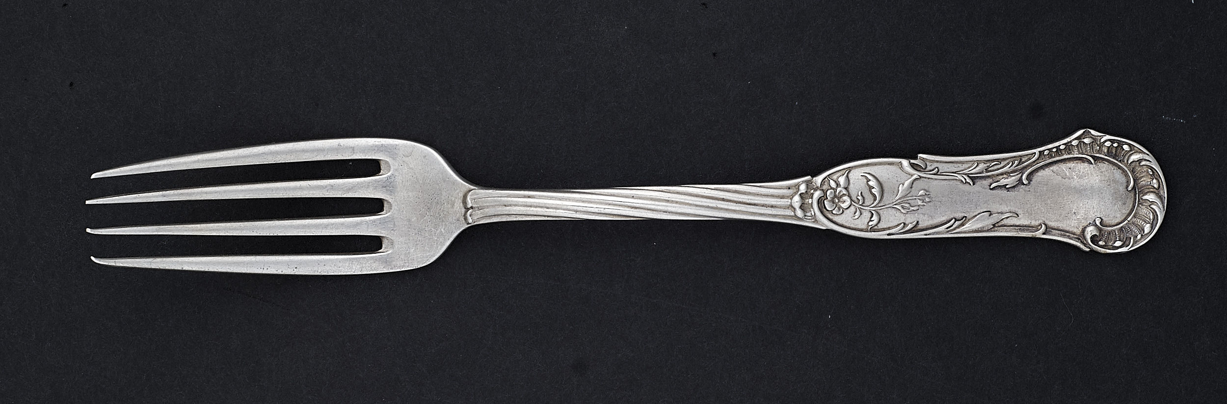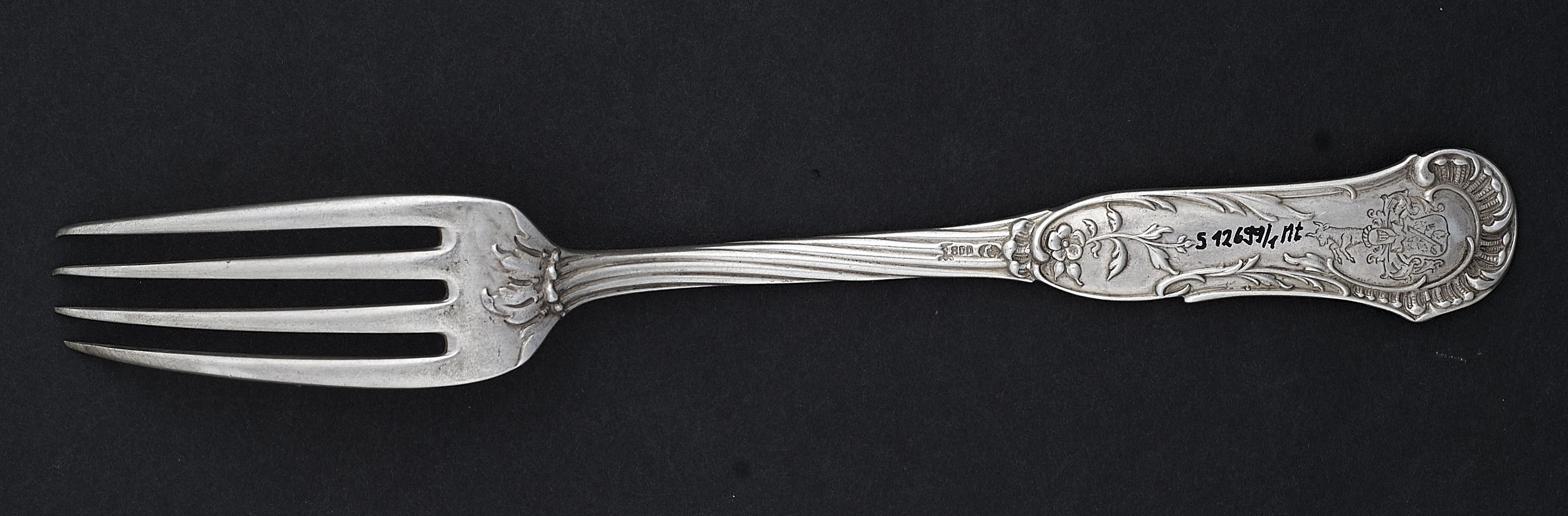 Widelec pochodzi z kompletu na sześć osób liczącego łącznie 36 elementów. W jego skład poza sześcioma widelcami stołowymi wchodzi: