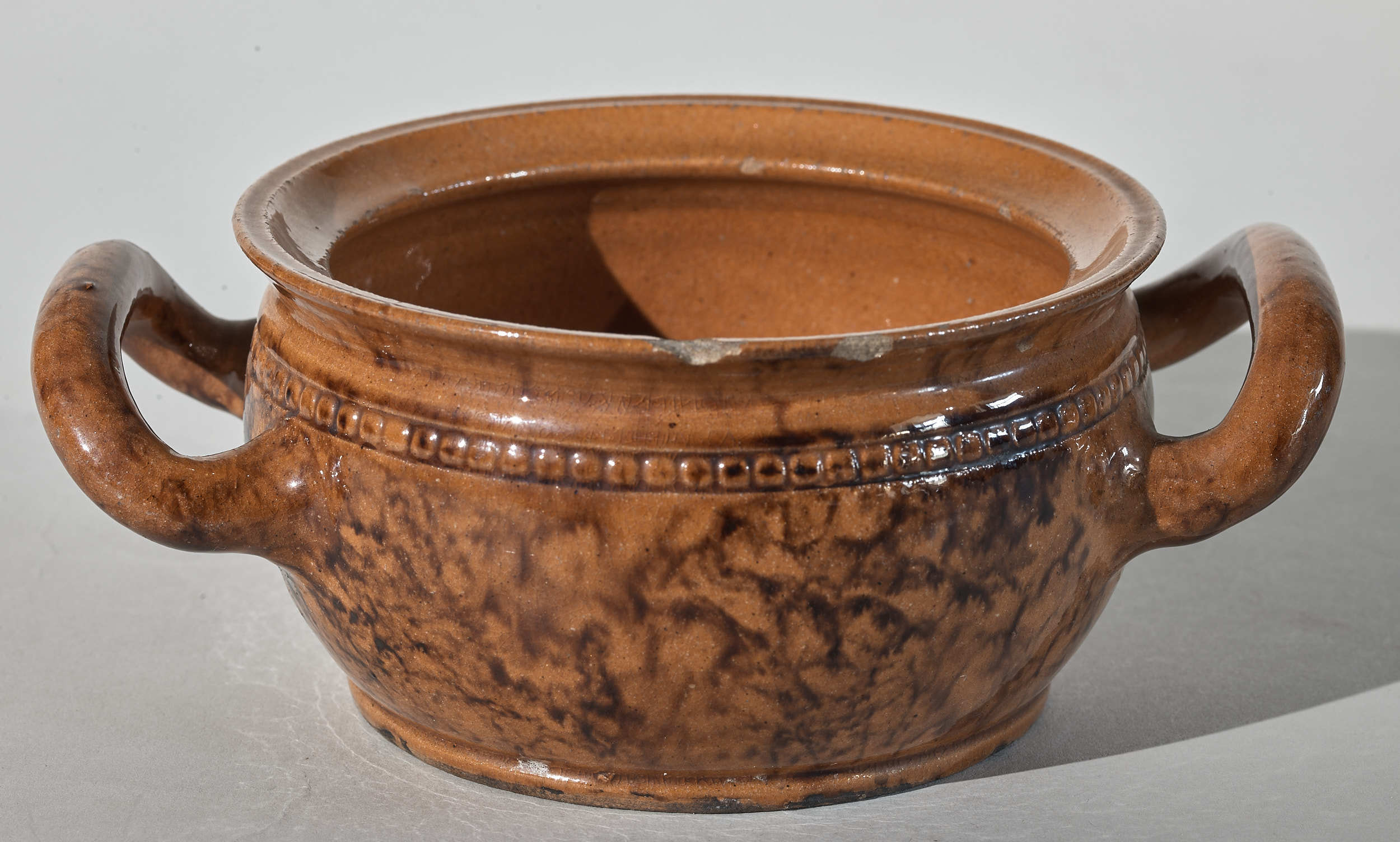 Okrągła miseczka z dwoma wystającymi uchwytami, w kolorze wypalonej glinki. Od spodu wytłoczona sygnatura producenta Feuerfest Meissen. Założenie manufaktury zawdzięczamy elektorowi saskiemu, a później królowi Polski Augustowi II Mocnemu. Monarcha był miłośnikiem i kolekcjonerem porcelany wschodniej.