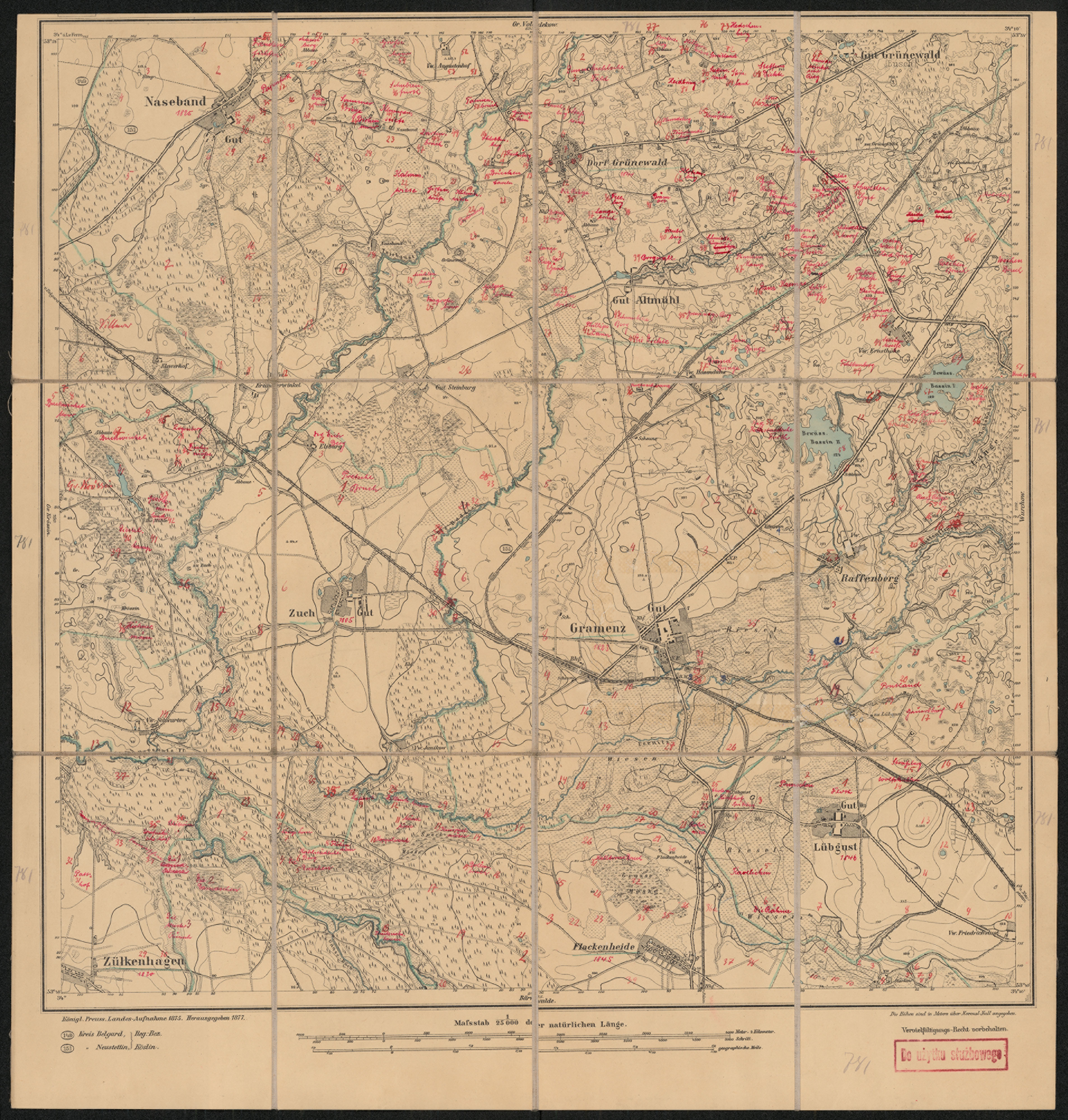 Mapę 781 Gramenz I opracowano w 1875, a wydano w 1877 roku. Obejmuje obszar w pobliżu miejscowości Gramenz, Kreis Neustettin, Reg. Bez. Köslin, Prov. Pommern, dziś Grzmiąca, pow. szczecinecki, woj. zachodniopomorskie, Polska. Jest jedynym zachowanym egzemplarzem arkusza przedwojennej mapy topograficznej oznaczonego godłem 781, zawierającym dane o lokalizacji obiektów i ich nazw w zasobie archiwalnym Flurnamen Sammlung. Na drukowanej mapie ręcznie naniesiono warstwę z numeracją obiektów fizjograficznych odnoszących się do miejscowości: Naseband, dziś Nosibądy; Grünewald, dziś Mieszałki; Altmühl, dziś Radusz; Gr. Krössin, dziś Krosino; Zuch, dziś Sucha; Gramenz; Raffenberg, dziś Równe; Zülkenhagen, dziś Sulikowo; Flackenheide, dziś Wielawino; Lübgost, dziś Lubogoszcz.