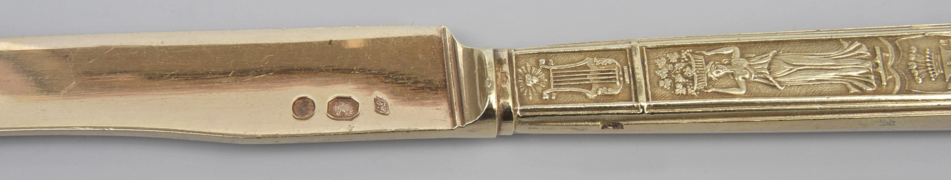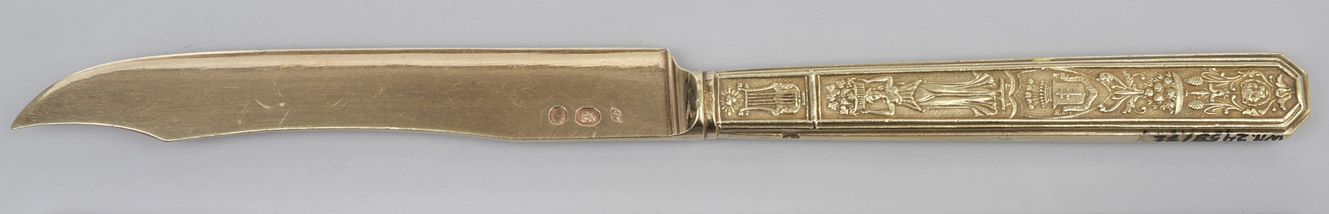 Prezentowany sztuciec jest jednym z siedemdziesięciu dwóch noży deserowych zachowanych w wilanowskiej kolekcji. Co ciekawe, cały komplet na  72  osób wykonany został przez dwóch złotników. Łyżki i widelce wykonał Dominique F. Naudin, a noże Martin G. Biennais.