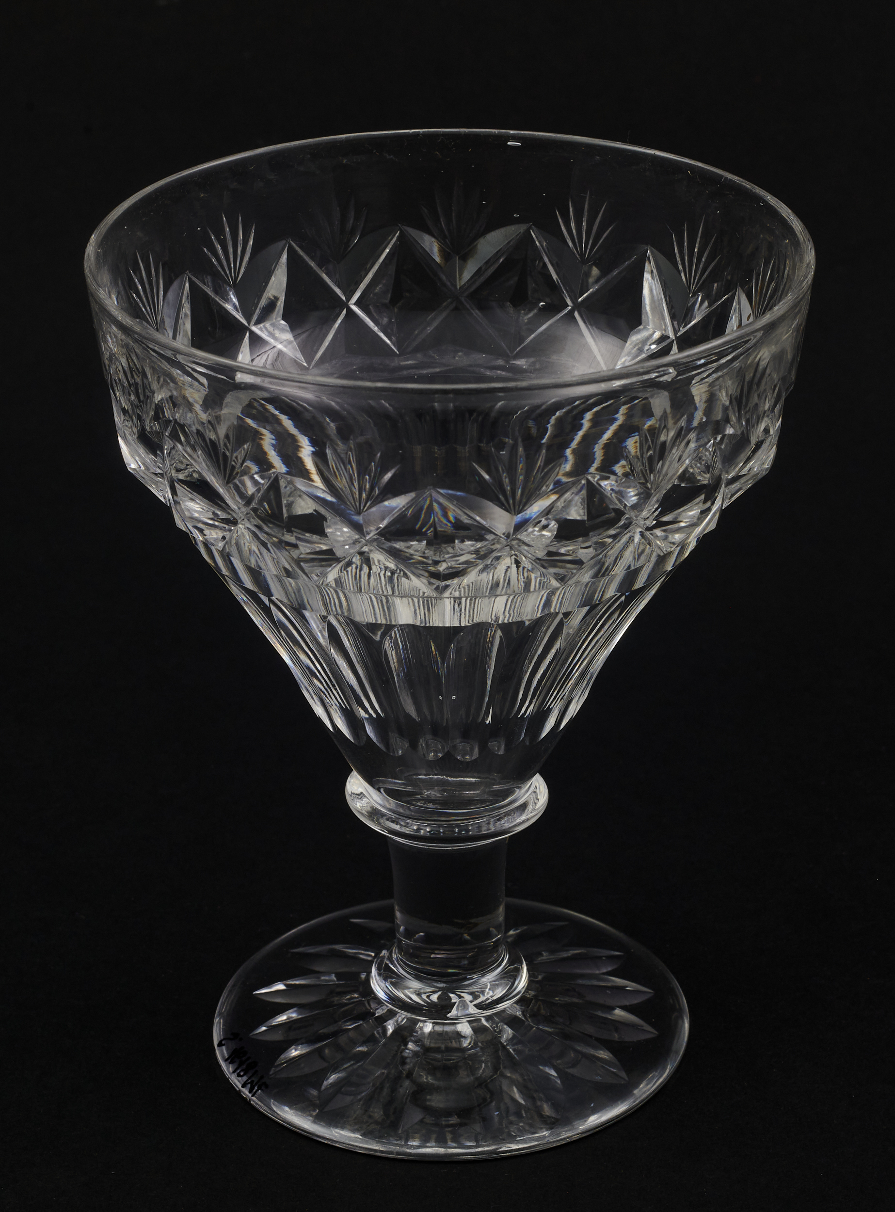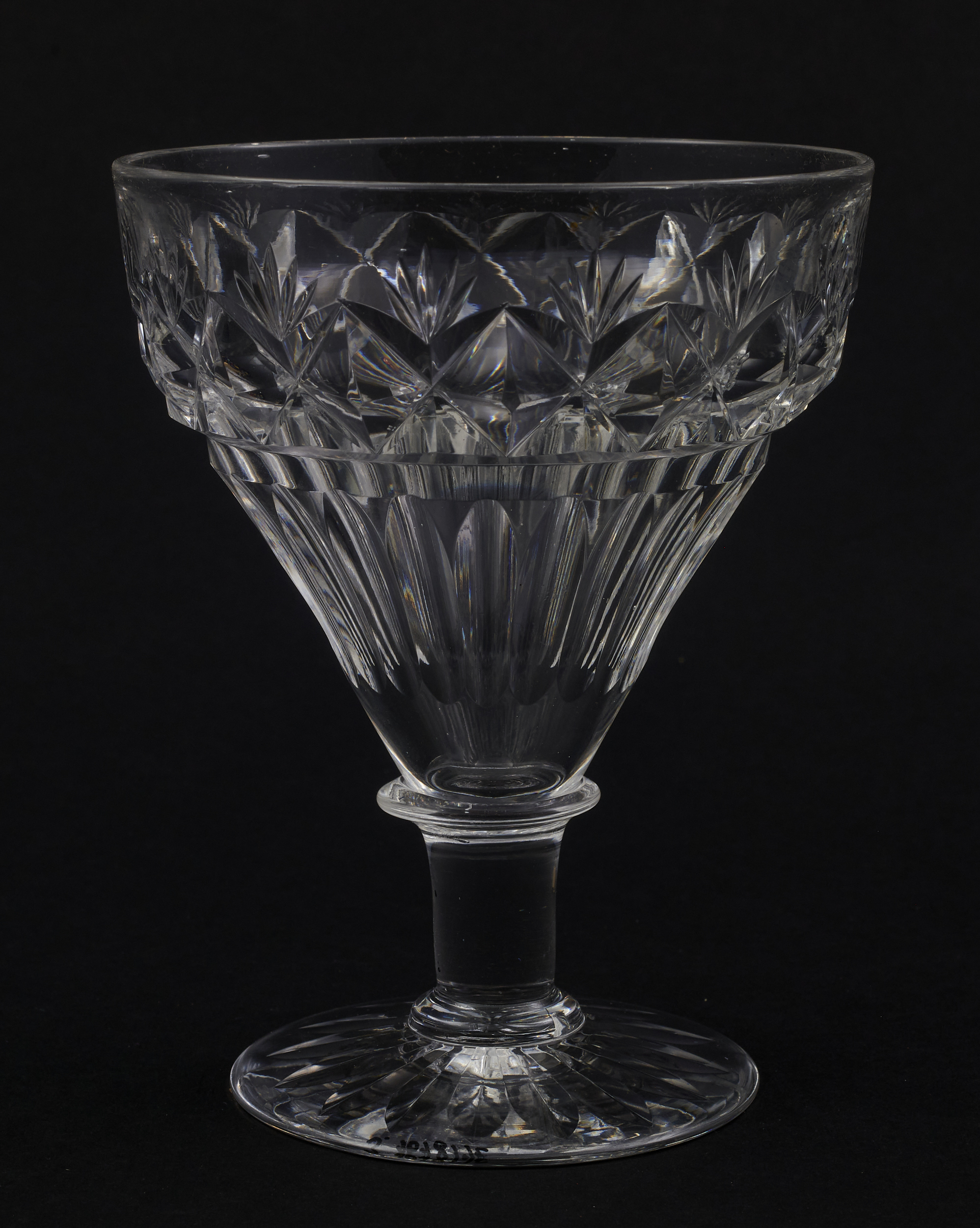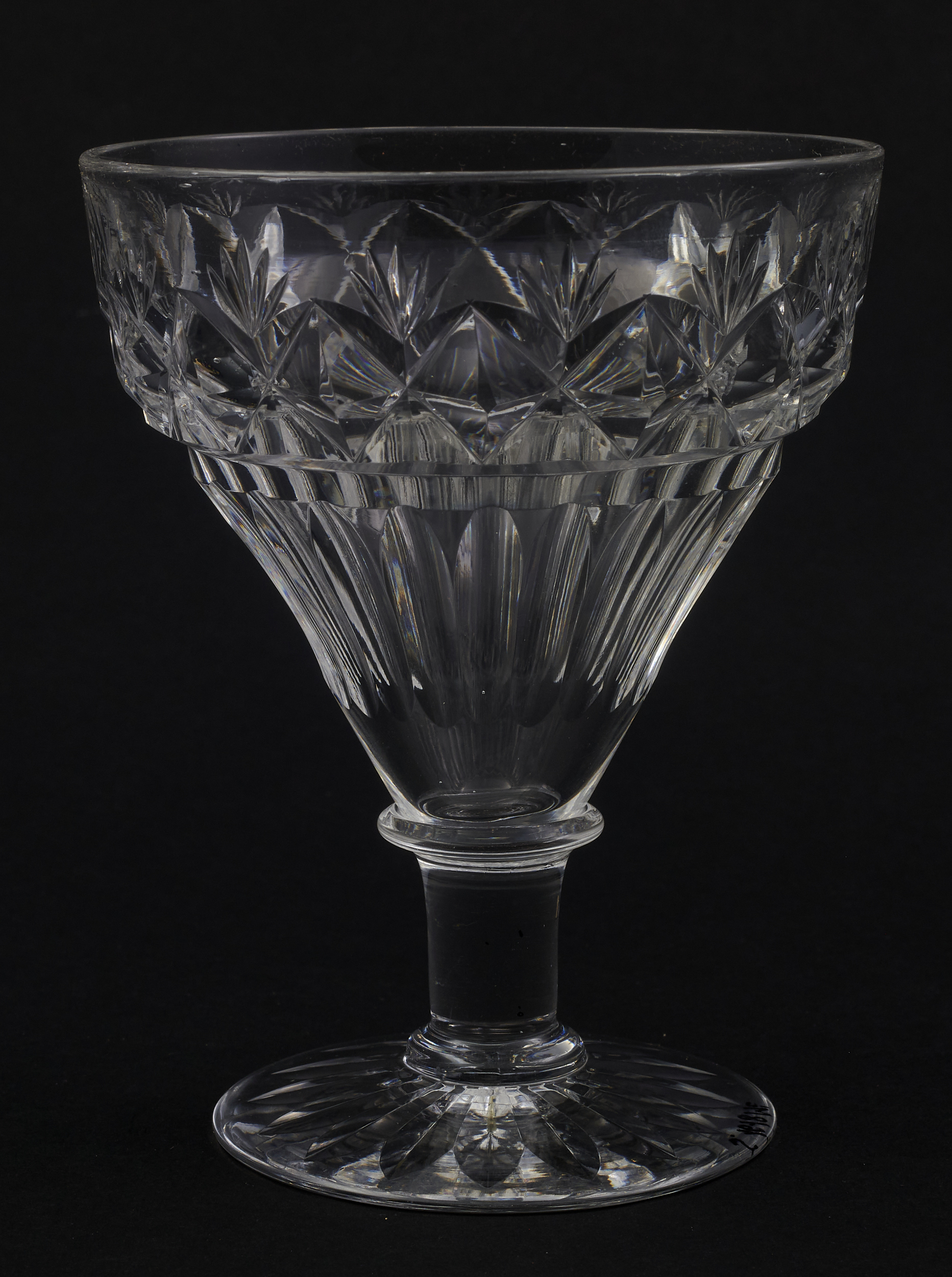 Kieliszek duży, wykonano ze szkła kryształowego. W zbiorach łańcuckich znajduje się także jeszcze pięć takich kieliszków. Zostały wykonane na przełomie XIX-XX wieku w Anglii, w stylu secesyjnym.