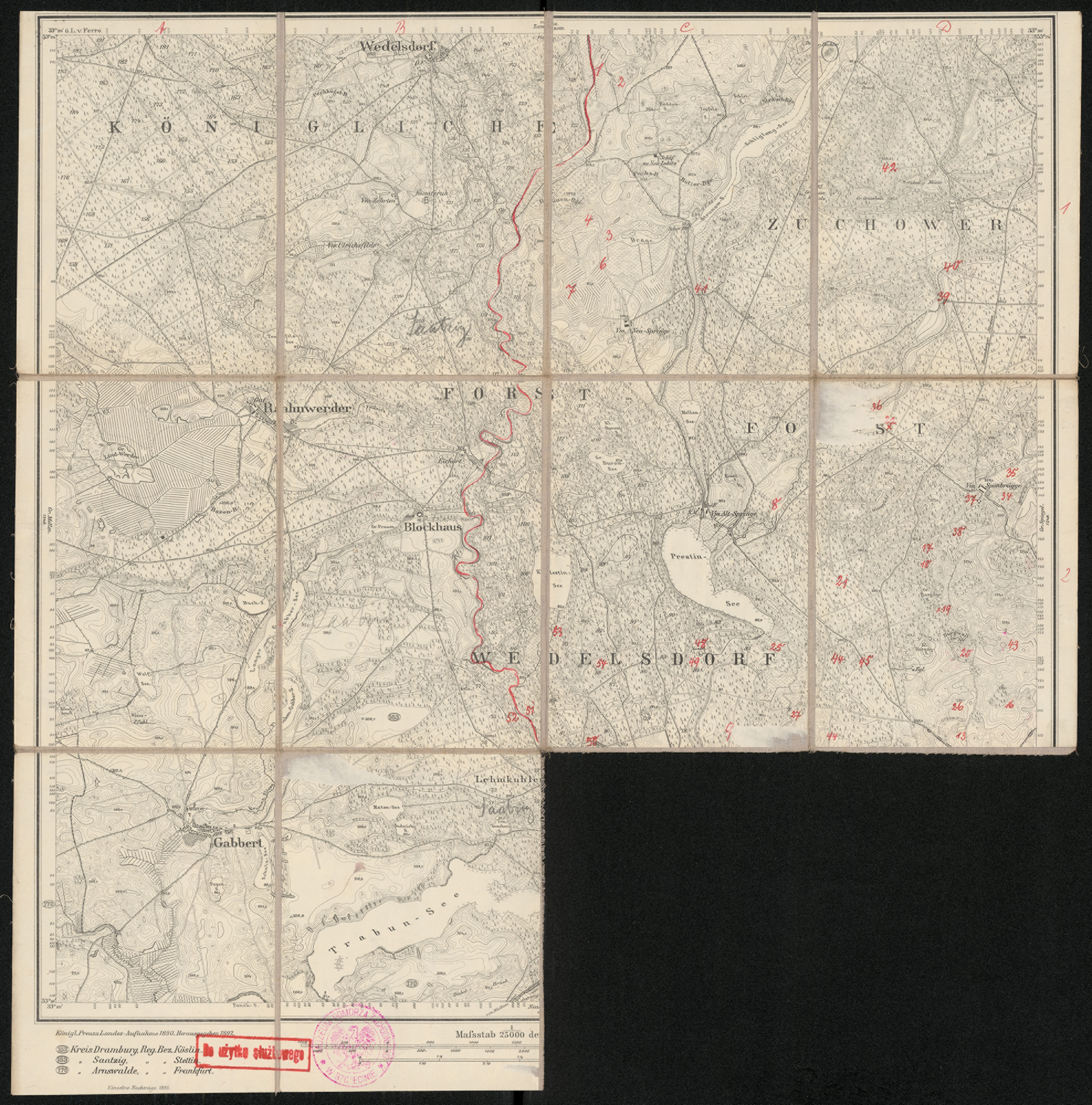Mapa jest załącznikiem do spisu toponimów, wykonanego w ramach zainicjowanego przez pomorskiego językoznawcę dr. Roberta Holstena (1862–1954) projektu, polegającego na zebraniu z przedwojennej prowincji Pomorze w wyniku wywiadów terenowych i kwerendy źródeł nazw obiektów fizjograficznych naturalnych i antropogenicznych oraz miejsc zamieszkanych i niezamieszkanych. Mapy topograficzne typu Meßtischblatt w skali 1:25 000 charakteryzują się bardzo wysoką szczegółowością i dokładnością odwzorowania topografii terenu.