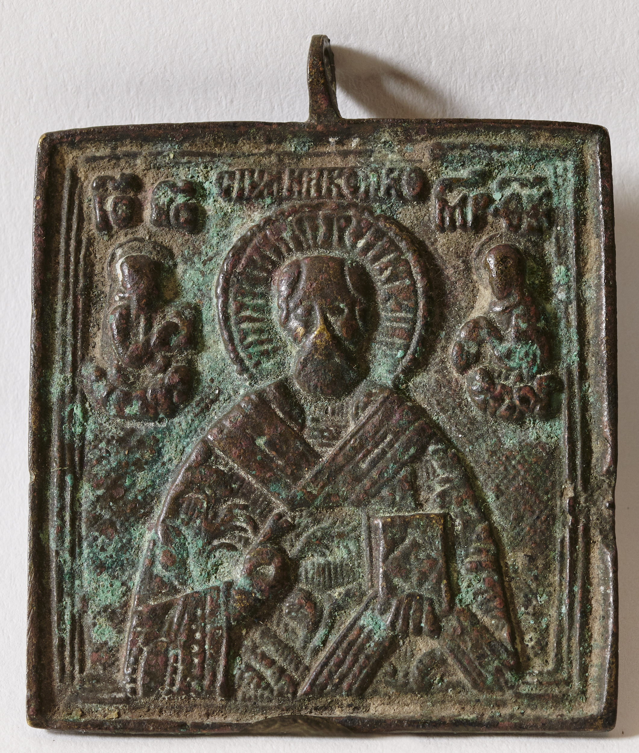 Mikołaj Cudotwórca, biskup miasta Mirry w Azji Mniejszej z przełomu III/IV w., jest jednym z najbardziej czczonych świętych wschodniego i zachodniego chrześcijaństwa. Pomimo prześladowań w czasach cesarza Dioklecjana św. Mikołaj nie przelał krwi. Z tego względu nie sporządzono jego życiorysu, były one spisywane w przypadku męczenników chrześcijańskich. Może dlatego św. Mikołaj niekiedy był utożsamiany z żyjącym w VI w. mnichem Mikołajem, archimandrytą klasztoru Święty Syjon, późniejszym biskupem miasta Pinary. Jednak popularyzacja mało znanego wcześniej w Azji Mniejszej imienia Mikołaj oraz rozwijający się na szeroką skalę w V-VI w. kult świętego jest pośrednim, ale ważnym dowodem autentyczności osoby Mikołaja z Mirry. Potwierdzeniem kultu były również mowy pochwalne ku jego czci oraz świątynie budowane pod wezwaniem Mikołaja Cudotwórcy. Do najstarszych i zachowanych do dziś należy bazylika św. Mikołaja w Mirze, dzisiejszym tureckim Demre. Spoczywały tam w marmurowym rzymskim sarkofagu szczątki świętego, przeniesione w 1087 r. do włoskiego miasta Bari. Na ikonach św. Mikołaj jest ukazywany zarówno w całej postaci, jak i w popiersiu.