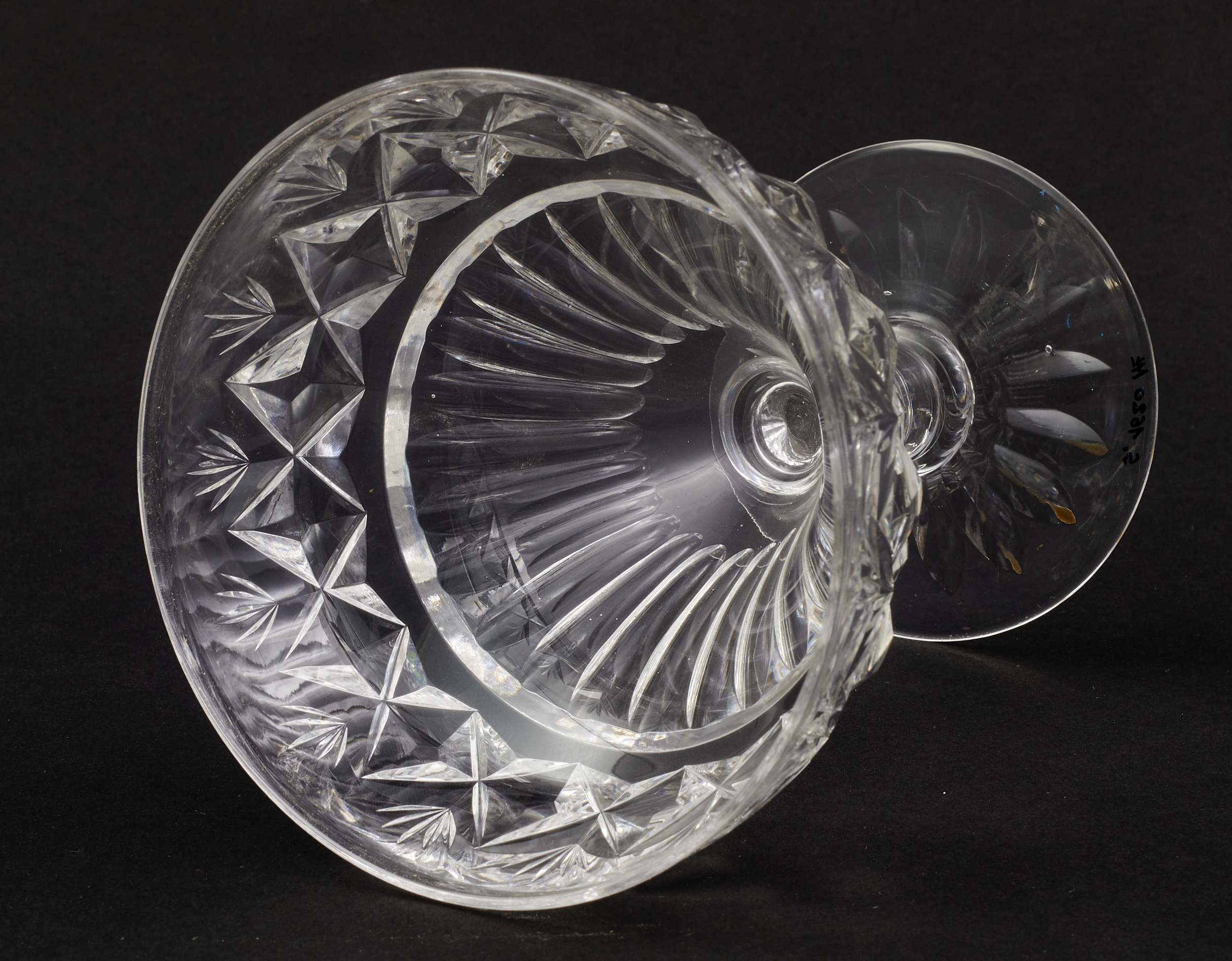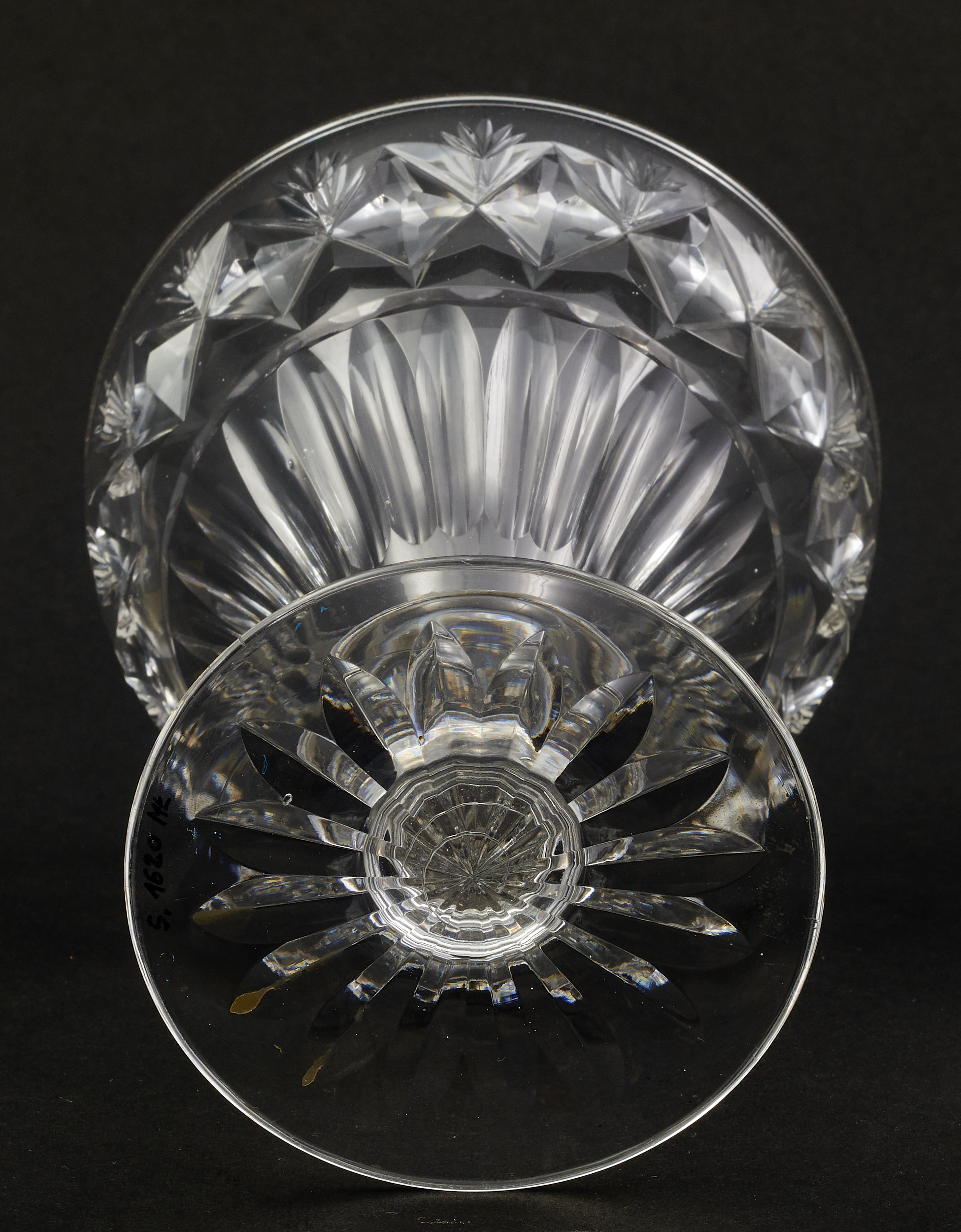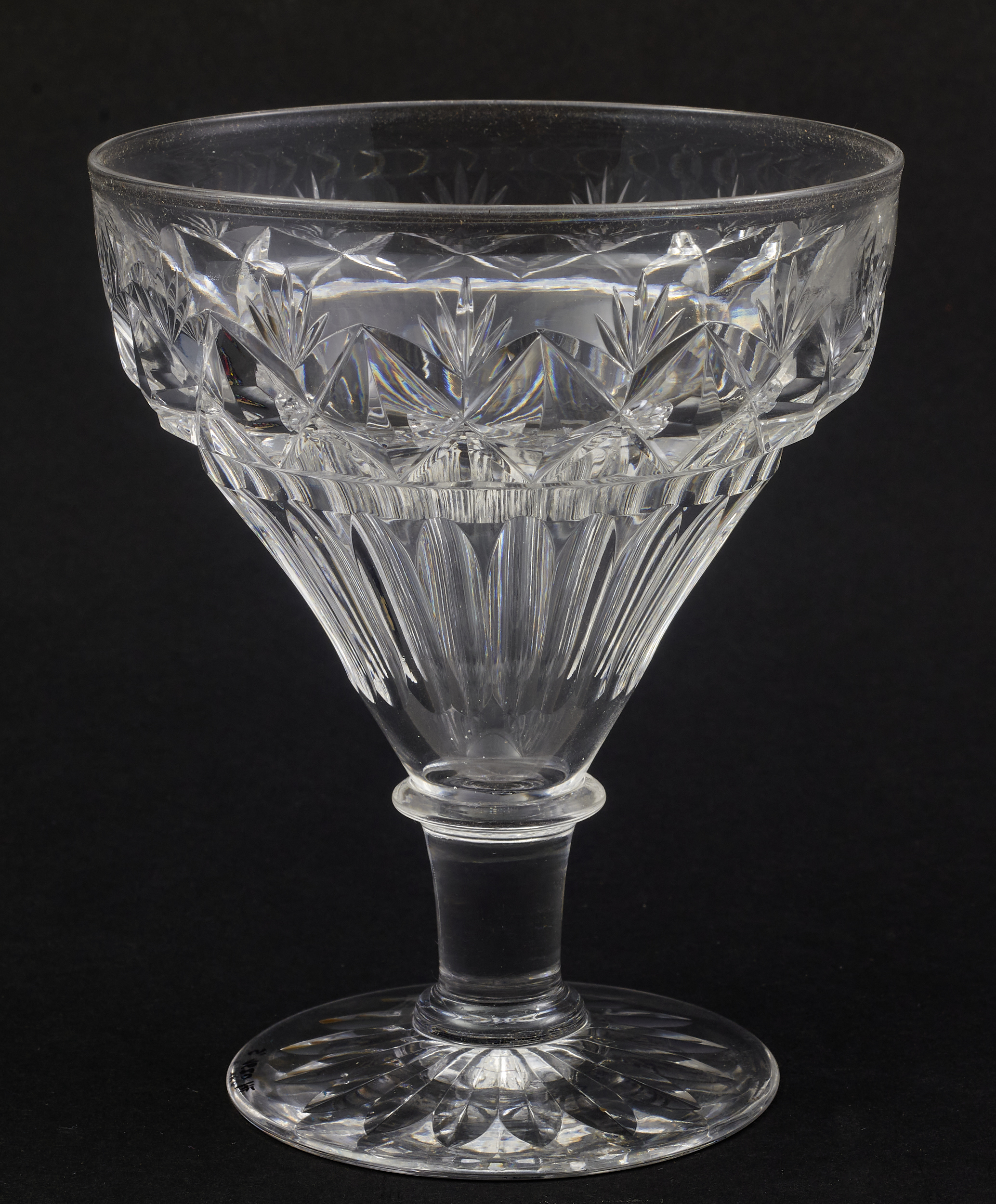 Kieliszek duży, wykonano ze szkła kryształowego. W zbiorach łańcuckich znajduje się także jeszcze pięć takich kieliszków. Zostały wykonane na przełomie XIX-XX wieku w Anglii, w stylu secesyjnym.