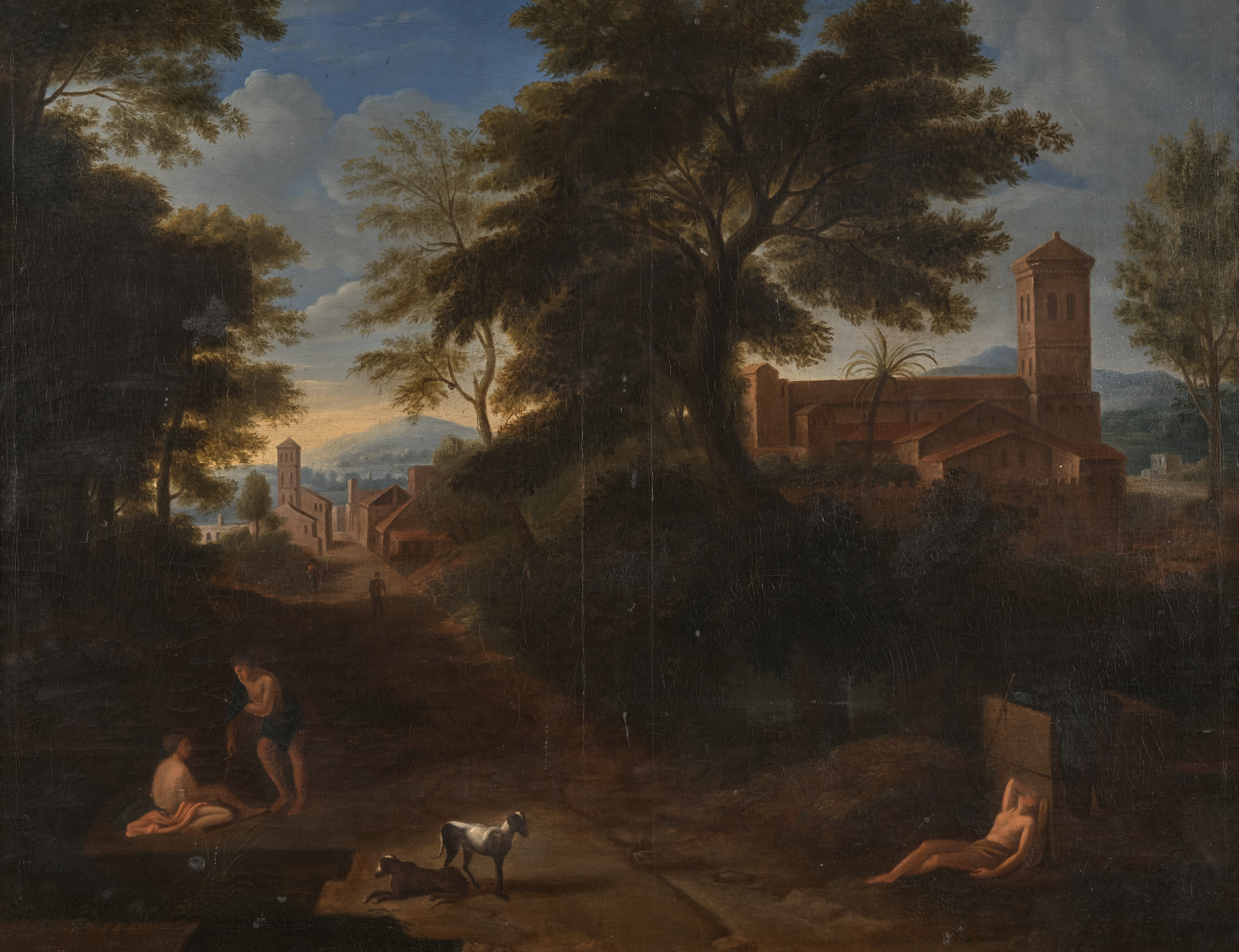 Obraz „Widok kampanii rzymskiej” pochodzi z kolekcji rodziny Potockich, dawnych właścicieli zamku w Łańcucie. Przedstawienie nawiązuje do heroizowanych krajobrazów XVII stulecia. W centrum polna droga biegnąca wśród drzew. Po obu stronach drogi nagie postacie pasterzy, ożywiające obraz. Na środku drogi widnieją dwa psy. W głębi podłużna budowla z wieżą. W tle jasnożółtego nieba widoczne błękitne góry.