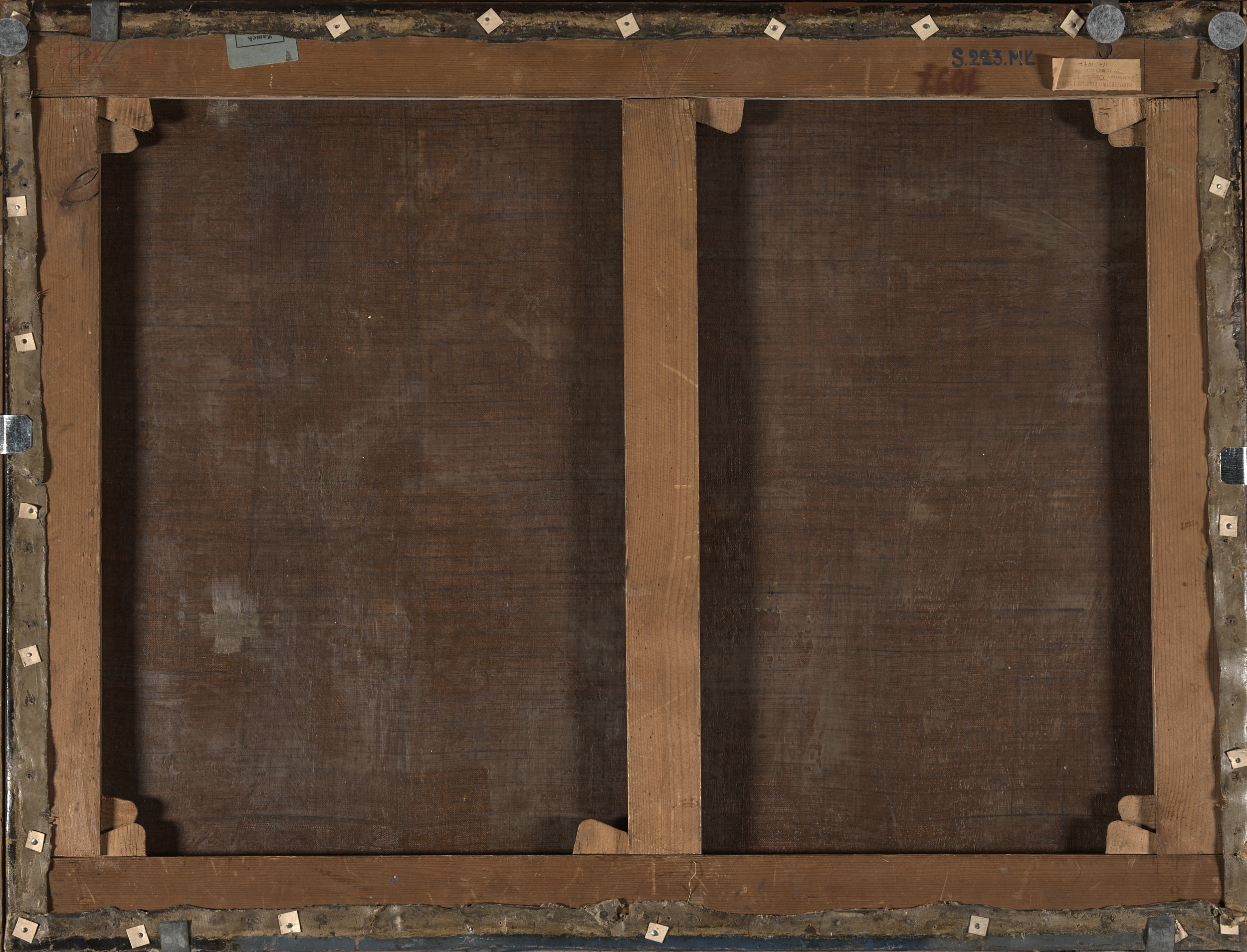 Obraz ujęty w szeroką drewnianą, złoconą ramę z napisem „Phidanza”.