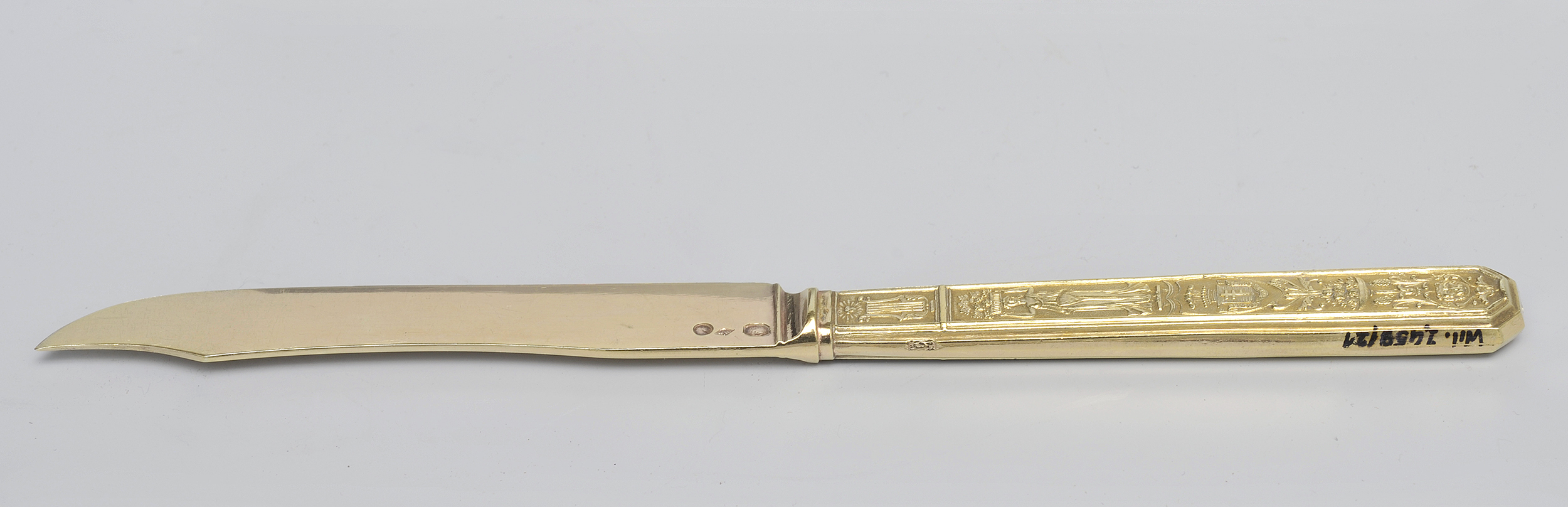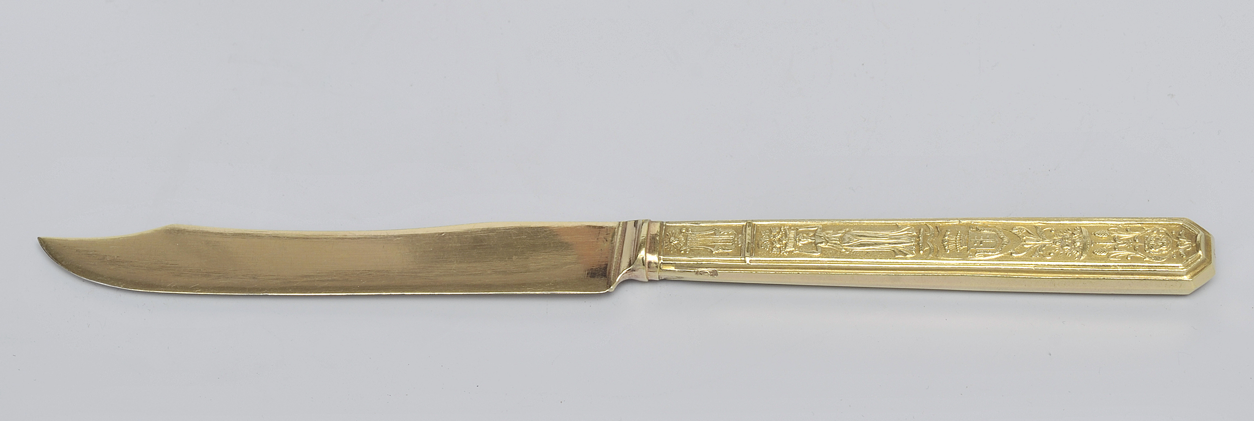 Prezentowany sztuciec jest jednym z siedemdziesięciu dwóch noży deserowych zachowanych w wilanowskiej kolekcji. Co ciekawe, cały komplet na 72 osób wykonany został przez dwóch złotników. Łyżki i widelce wykonał Dominique F. Naudin, a noże Martin G. Biennais.