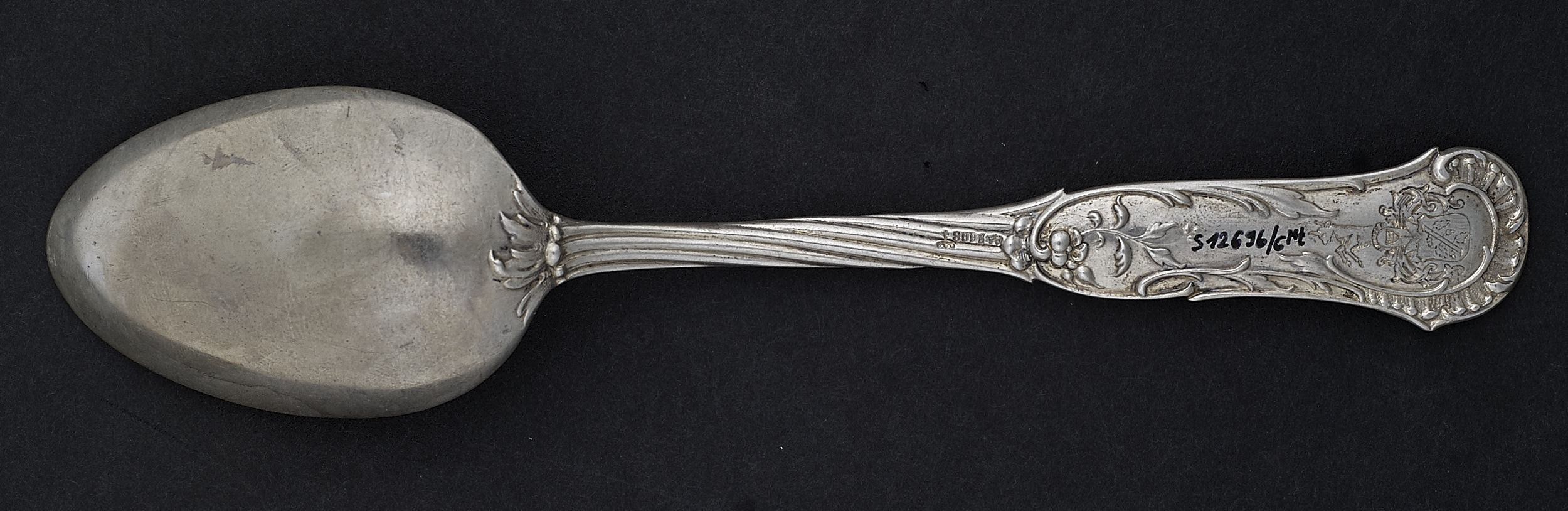 Sztućce znajdują się w specjalnie przygotowanej dębowej kasetce z dnem wyłożonym miękkim materiałem. Klapa kasetki wyścielona jest miękko atłasem z widocznym po środku złotym logo wytwórcy (J. Ludwig Juwelier). Sztućce są zdobione motywem eklektycznym na awersie uchwytu. Na rewersie dodatkowo pojawia się herb: gałązka dębu z liśćmi i żołędziami. Taki sam herb widnieje również na klapie kasetki. Na trzonku każdego ze sztućców wybito puncę i próbę srebra 800. Oznacza to stop o 80 % zawartości srebra z domieszką 20% innych metali. Wyroby tej próby wytwarzane były na terenie zaborów pruskiego i austriackiego. W zaborze pruskim w 1888 r. weszła w życie ustawa nakazująca cechować jedynie wyroby próby 800 i wyższych. W zaborze austriackim, po 1866 roku wprowadzono system oznaczeń jednocyfrowych gdzie 1 oznaczało próbę 950, 2 – 900, 3 – 800 a 4 – 750.