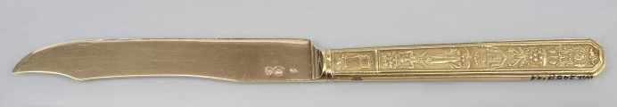Prezentowany sztuciec jest jednym z siedemdziesięciu dwóch noży deserowych zachowanych w wilanowskiej kolekcji. Co ciekawe, cały komplet na  72  osób wykonany został przez dwóch złotników. Łyżki i widelce wykonał Dominique F. Naudin, a noże Martin G. Biennais.