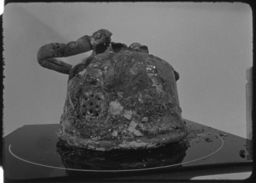„Szukaliśmy w popiołach” to zestaw 5 filmów oraz 12 fotografii. Powstały one z wykorzystaniem obiektów archeologicznych znajdujących się w depozycie Muzeum POLIN – przedmiotów codziennego użytku należących do dawnych żydowskich mieszkańców Muranowa, znalezionych podczas budowy Muzeum POLIN, takich jak nożyczki, zegarek, czajniczek, termometr czy flakonik po perfumach. W pracach Artura Żmijewskiego przedmioty te – teraz już zabytki archeologiczne, na których czas odcisnął swoje piętno – są „ożywiane” poprzez umieszczenie w naturalnej dla nich scenerii: w zakładzie krawieckim, u lokalnego zegarmistrza czy na kuchence. W przypadku fotografii ten kontekst nadaje zaaranżowana kompozycja, zaś w czarno-białych filmach, które nakręcono w stylistyce przedwojennego kina – obraz i dźwięk. Ideą artysty było pokazanie, że przedmioty te są materialnymi świadkami życia społeczności żydowskiej na Muranowie i jej zagłady. Jak mówią autorzy: „Podzieliły los tej dzielnicy i jej mieszkańców”.