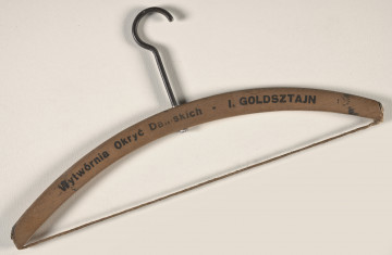 Wieszak z napisem: „CENTRALA UBIORÓW MĘSKICH-DAMSKICH, UCZNIOWSKICH oraz FUTER – N. Fiszman – Lublin – ul. KRAK. PRZEDM. 10, róg Bernardyńskiej”; drugi z napisem: „Ubiory damskie, męskie i dzieć. oraz futra M[.] – Szyfman. Lublin, Królews[k]a. 5”. Podarowane przez Juliana Lenkiewicza.