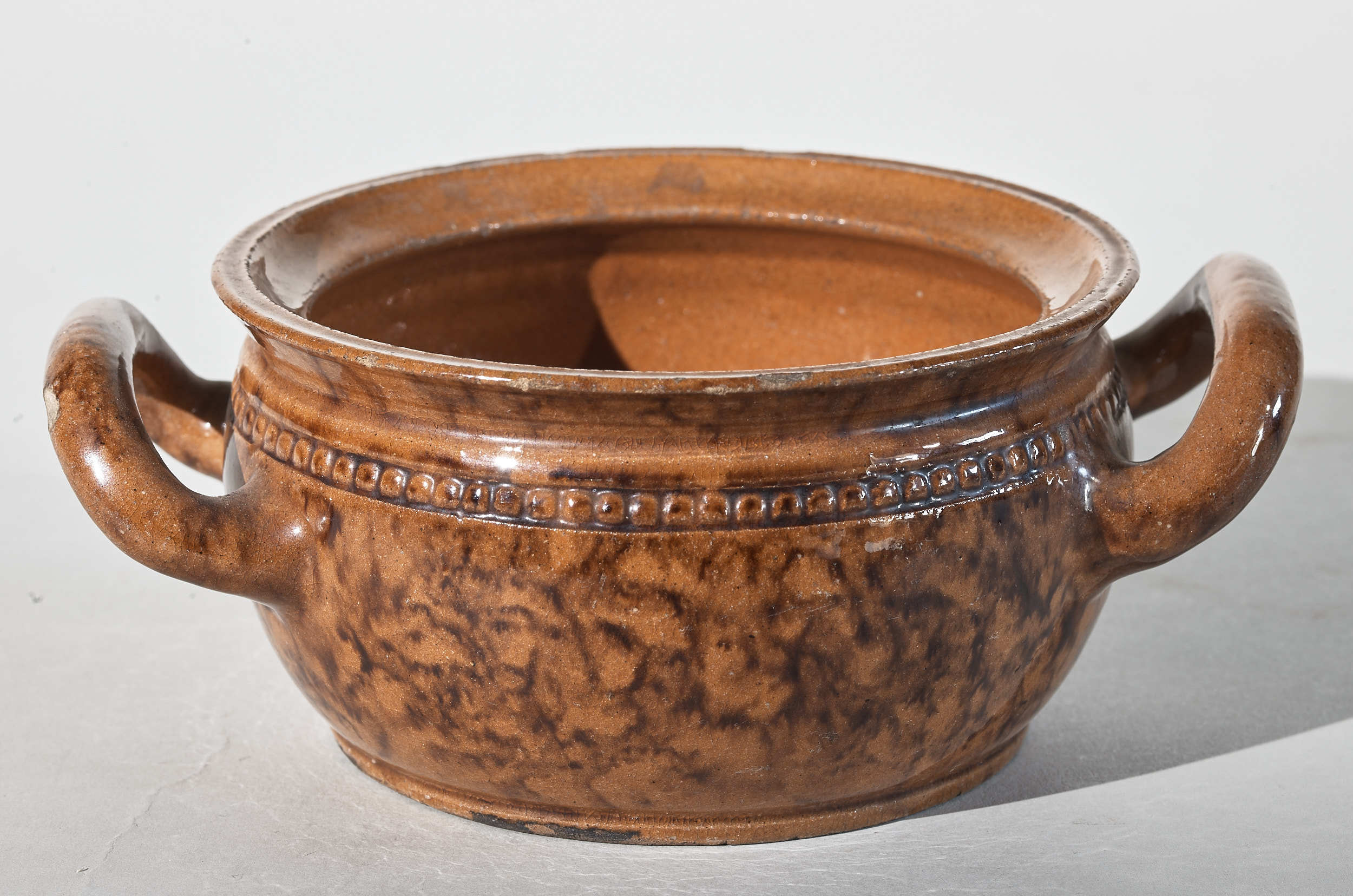 Okrągła miseczka z dwoma wystającymi uchwytami, w kolorze wypalonej glinki. Od spodu wytłoczona sygnatura producenta Feuerfest Meissen. Założenie manufaktury zawdzięczamy elektorowi saskiemu, a później królowi Polski Augustowi II Mocnemu. Monarcha był miłośnikiem i kolekcjonerem porcelany wschodniej.