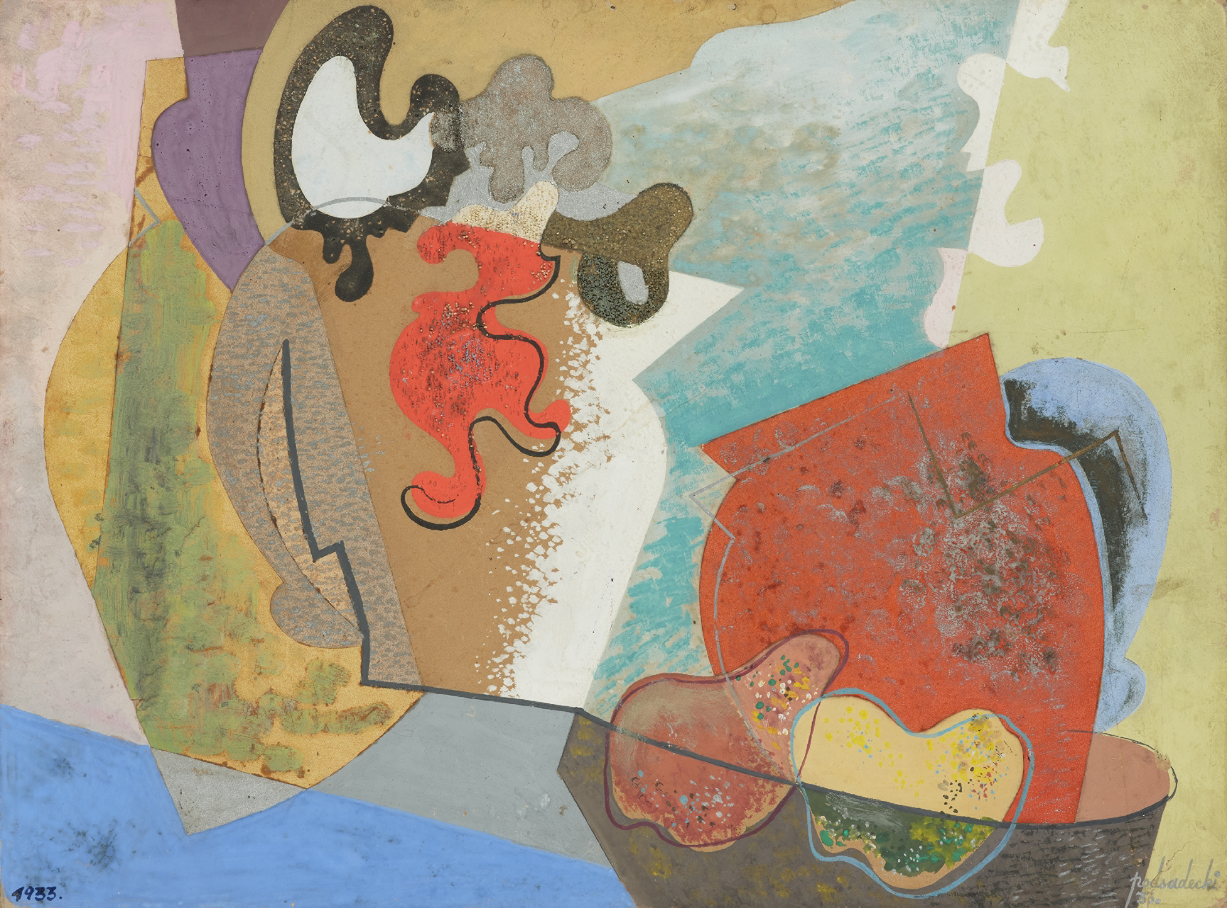 Kazimierz Podsadecki należy do najważniejszych przedstawicieli polskiej awangardy artystycznej okresu dwudziestolecia międzywojennego. Absolwent Wydziału Sztuk Zdobniczych Szkoły Przemysłowej w Krakowie (1923) współpracował jako grafik i typograf z tamtejszymi czasopismami o ogólnopolskim zasięgu: „Zwrotnicą”, „Na Szerokim Świecie” i „Światowidem”. W projektach wydawniczych stał się pionierem techniki fotomontażu na rodzimym gruncie. Wystawiając dzieła malarskie z konstruktywistami skupionymi wokół warszawskiego ugrupowania Praesens, wyróżniał się oryginalnym językiem formalnym bliskim włoskim futurystom. Stosował go także w dekoracjach teatralnych, w których czerpał z rozwiązań scenodynamiki Enrica Prampoliniego. Wraz z drugim krakowianinem, Januszem Marią Brzeskim, Podsadecki angażował się w promocję międzynarodowych twórców nowych mediów. Zorganizował I Wystawę Fotografii Modernistycznej w Muzeum Przemysłowym (1931), sam powołując Studio Polskiej Awangardy Filmowej (1932). Pokłosiem współpracy Podsadeckiego i Brzeskiego był eksperymentalny film krótkometrażowy Beton (1933). Kompozycja bezprzedmiotowa (1933) ze zbiorów szczecińskich ukazuje powolne wycofywanie się ze skrajnie awangardowych postaw malarskich poprzednich lat. Wbrew swojej nazwie, stosowanej za teorią Kazimierza Malewicza jako ekwiwalent abstrakcji (niem. ungegenständlich, gegenstandslos, z ros. bespredmetnyj), zawiera wyraźne nawiązania do świata rzeczywistego. Poprzez wybór motywu – klasyczną martwą naturę – zbliża się natomiast do tematyki dominującej w krakowskim środowisku lat trzydziestych XX wieku, zdominowanym przez koloryzm. Podsadecki ciążył ku niemu także w drugiej połowie dekady, stylizując misy, wazony i owoce w sposób przypominający dokonania francuskich purystów. Jednocześnie zachowywał ulubiony zestaw abstrakcyjnych rozwiązań – uniezależnienie linearnego konturu i plamy, nakładające się nawzajem geometryczne płaszczyzny kolorowych „filtrów” oraz dekoracyjne ameboidalne figury.
