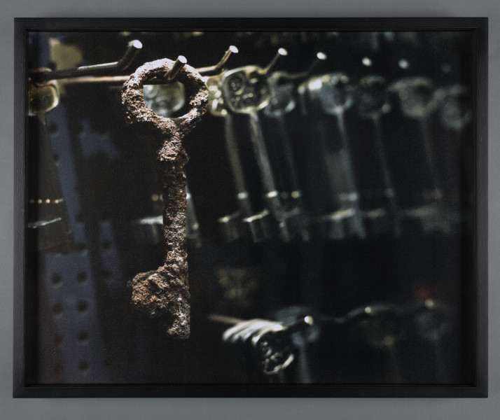 Jedna z 12 fotografii barwnych wchodzących w skład pracy „Szukaliśmy w popiołach”, powstałych z wykorzystaniem obiektów archeologicznych znajdujących się w depozycie Muzeum POLIN. Przedstawia metalowy klucz do otwierania drzwi, w całości pokryty rdzą, który wisi na tle nowych, współczesnych kluczy w punkcie usługowym na Muranowie, zajmującym się ich dorabianiem.