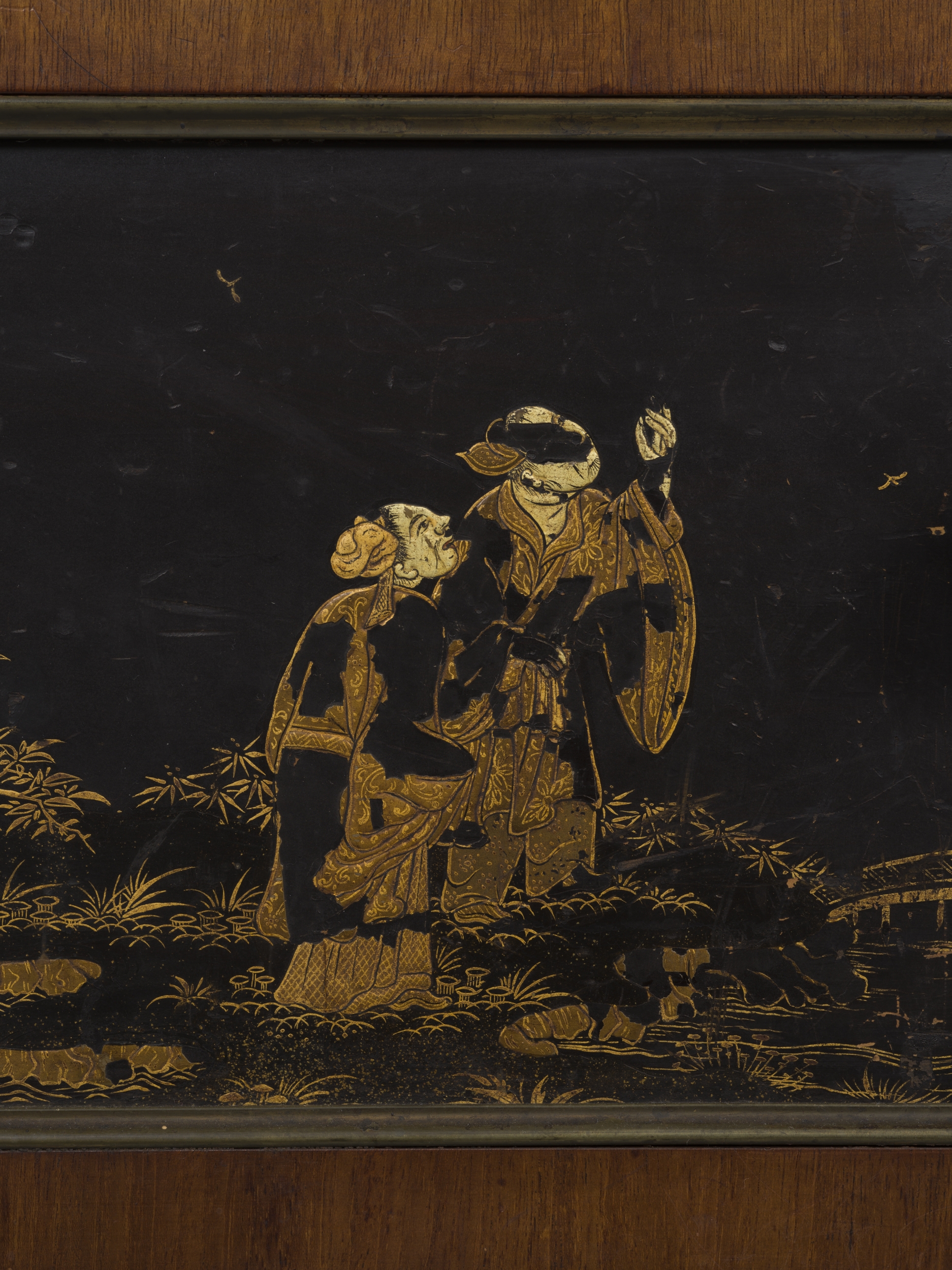 Zabiegi polegające na wykorzystywaniu oryginalnych elementów importowanych z krajów Dalekiego Wschodu, takich jak części większych mebli, panele parawanów czy wręcz specjalnie produkowane na eksport prostokątne panele lakowe z dekoracją figuralną, do wykonywania mebli i innych elementów wystroju wnętrz w warsztatach europejskich były bardzo powszechne w XVIII i XIX wieku, kiedy moda na orient była w rozkwicie. W ten sposób nie tylko można było zwiększyć import przedmiotów lakowych, ale także łatwiej sprostać europejskim gustom, nadając gotowym wyrobom formy niespotykane w Azji, a bardziej przystające do europejskiego stylu życia.