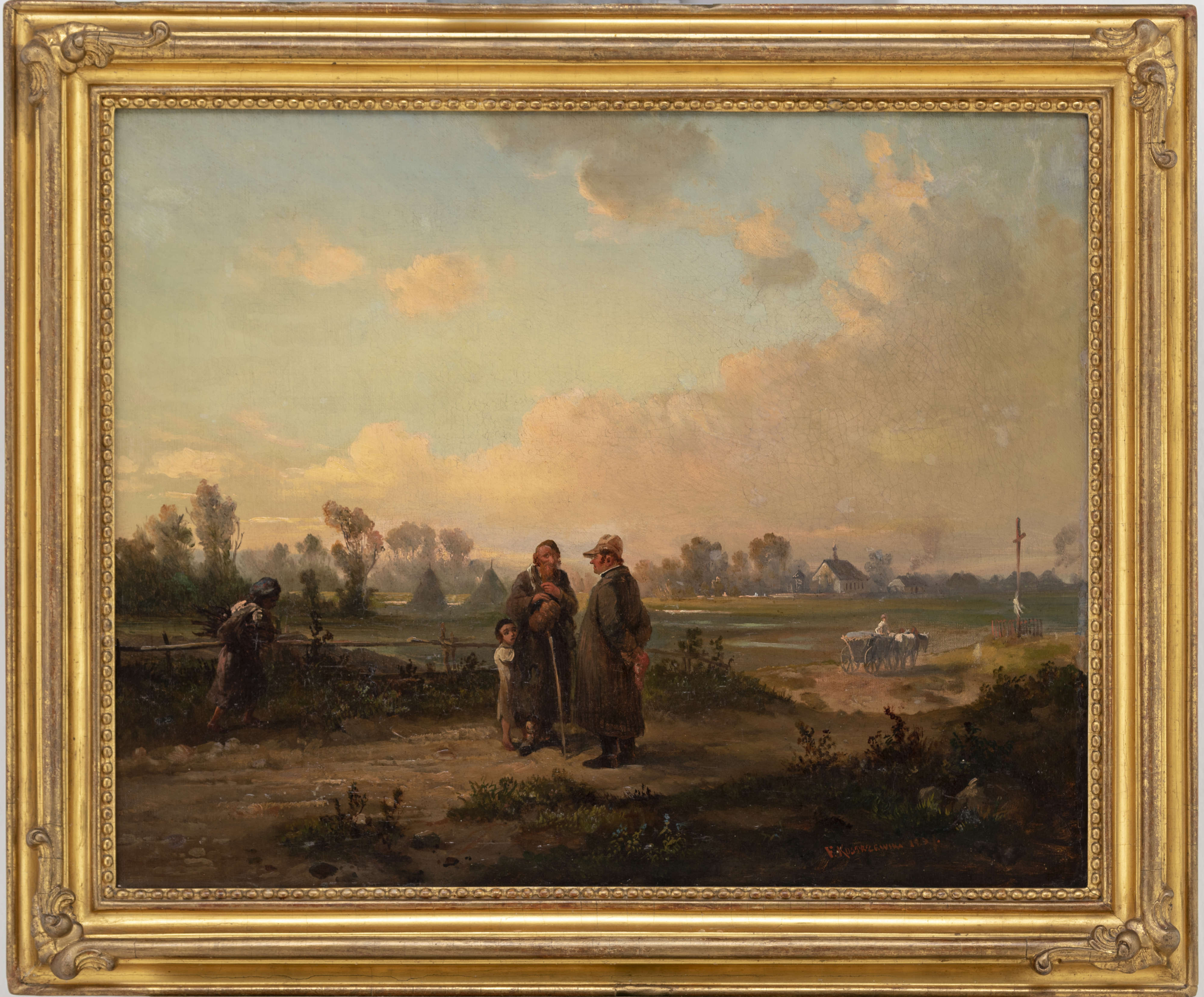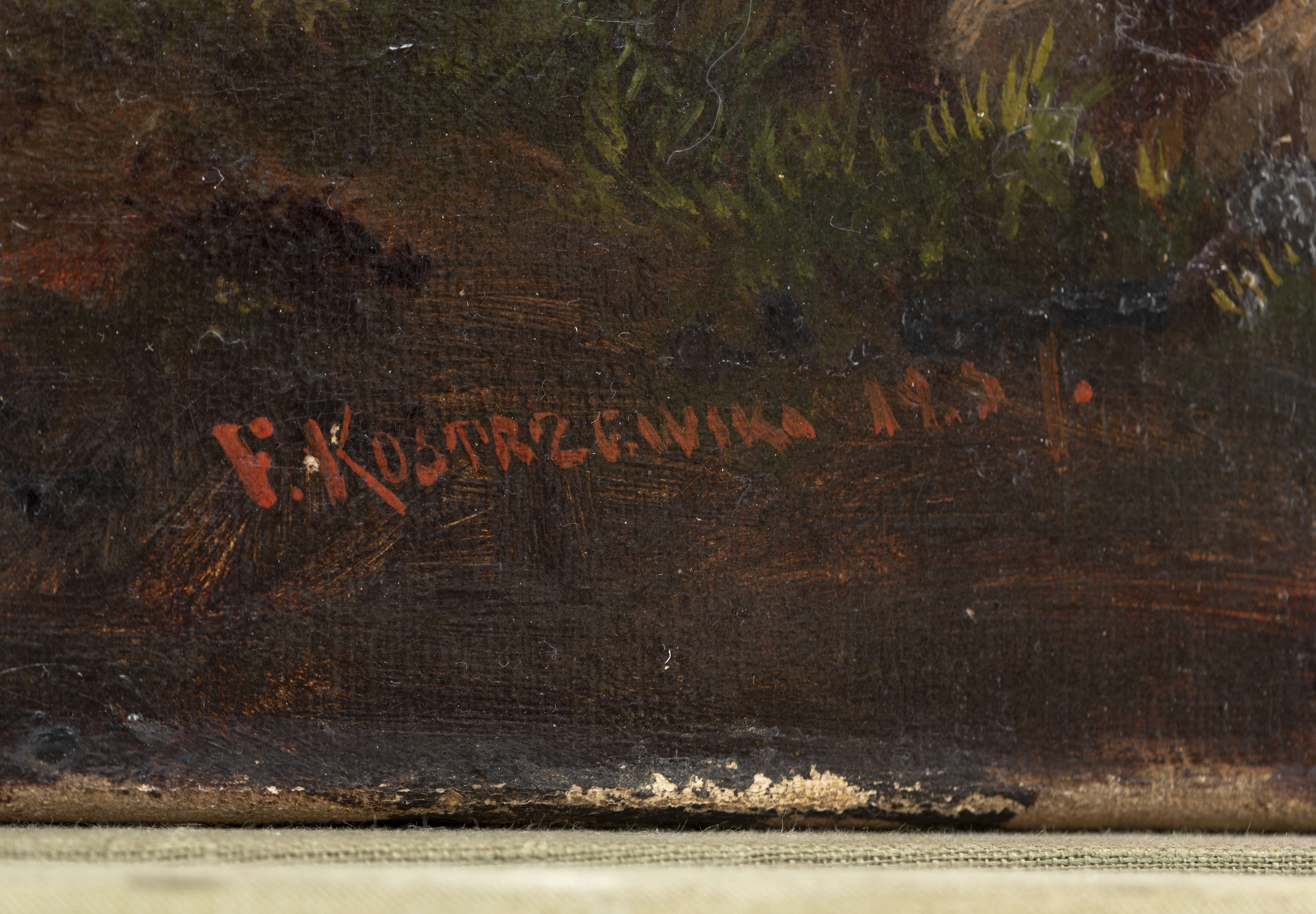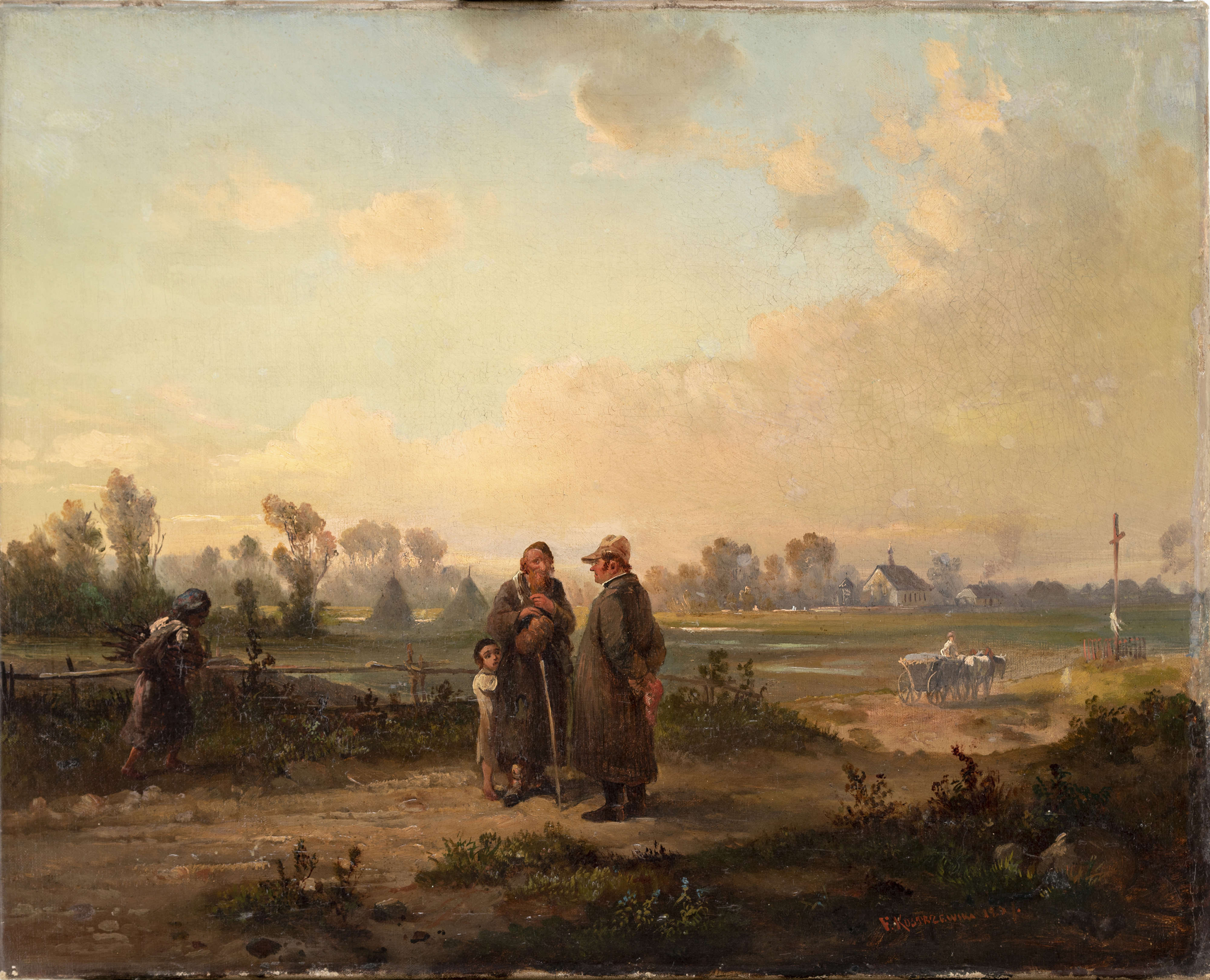 Franciszek Kostrzewski – twórca realistycznych scen rodzajowych osadzonych w pejzażu polskich wsi i miasteczek, został ukształtowany artystycznie przez środowisko otwartej w 1844 roku warszawskiej Szkoły Sztuk Pięknych. Działający od 1816 roku Oddział Sztuk Pięknych na Uniwersytecie Warszawskim został zlikwidowany w ramach represji po powstaniu listopadowym. Malarz należał do grona pierwszych absolwentów, którzy jako Grupa Marcina Olszyńskiego utworzyli cyganerię artystyczną. Przewodzący grupie Olszyński, opiekun artystów i mecenas kultury, jeden z pierwszych zawodowych fotografów, był autorem wielu inicjatyw (między innymi Towarzystwa Zachęty).