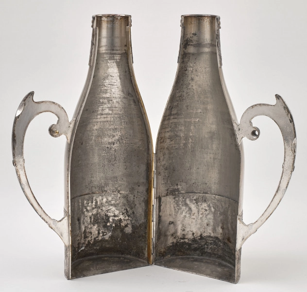 Butelka – etui ze zbiorów Potockich, wykonana z plateru, pochodzi z końca XIX wieku, wyrób z USA. Etui na butelkę alkoholu w kształcie butli składające się z dwóch części złączonych zawiasem (części otwierają się na zewnątrz umożliwiając włożenie butelki z alkoholem) z ozdobnym uchem z wici roślinnych. Butelka dość wysoka, z szeroką profilowaną gardzielą, ozdobiona pasem ornamentu z kwiatów i wici roślinnych. Na dole brzuśca szeroki pas ozdobny z dekoracją kwiatowo-roślinną. Środek butelki wyłożony miękkim materiałem. Tego typu etui było stosowane z dwojakich powodów. Miękka materia wewnątrz z jednej strony zapobiegała rozbiciu szklanej butelki, a jednocześnie spełniała funkcje izolacyjną, czyli utrzymywała jednakową temperaturę alkoholu. Druga równie ważna funkcja to estetyka podania alkoholu, trzeba pamiętać że stare alkohole (butelki) przechowywane w ciemnych wilgotnych pomieszczeniach miały nie raz ślady pleśni zabrudzeń czyli mało apetyczny. Dzięki takim wynalazkom jak opisywane etui można było serwować wybrany alkohol w żądanej temperaturze bardzo estetycznie czy wręcz wytwornie.