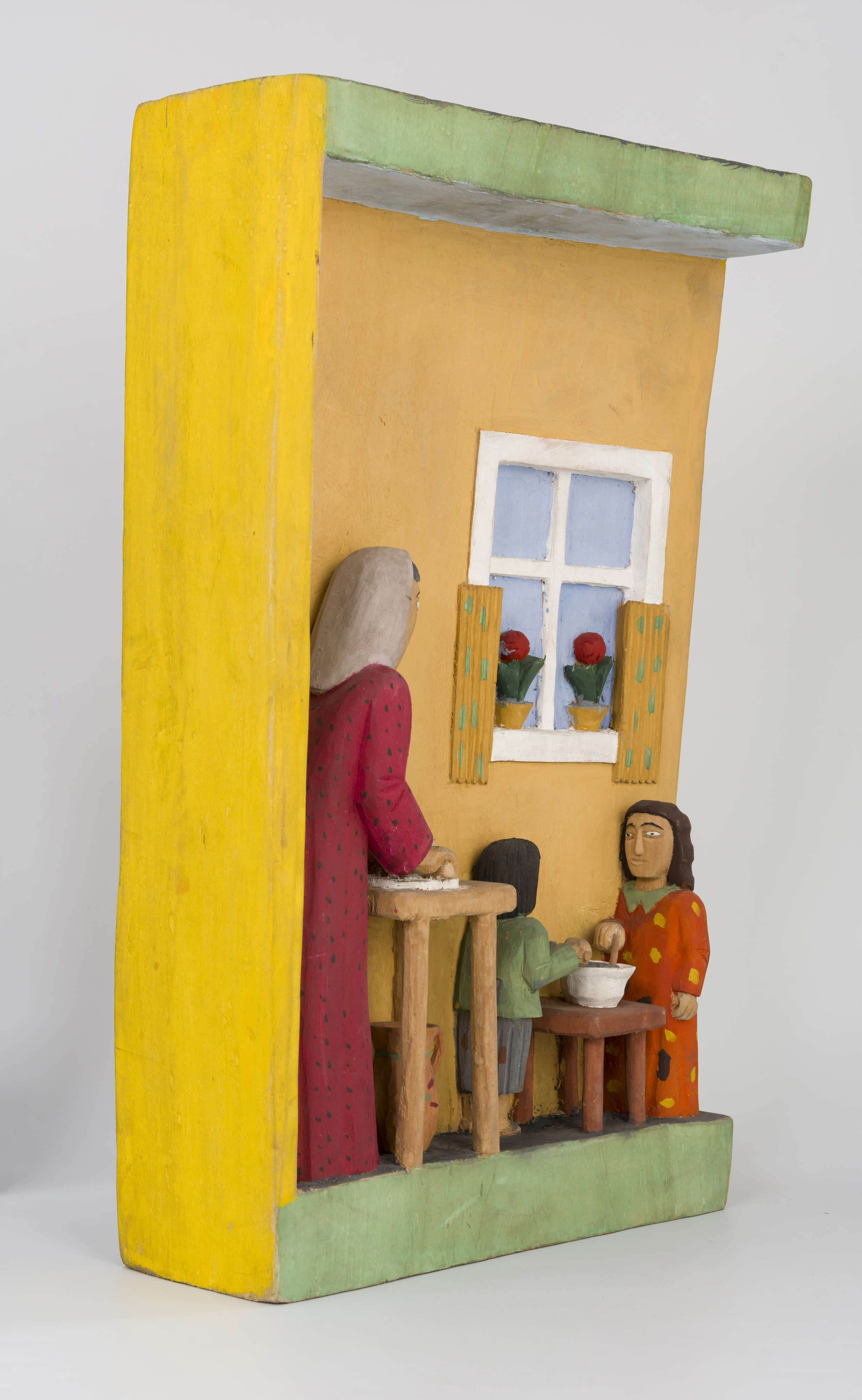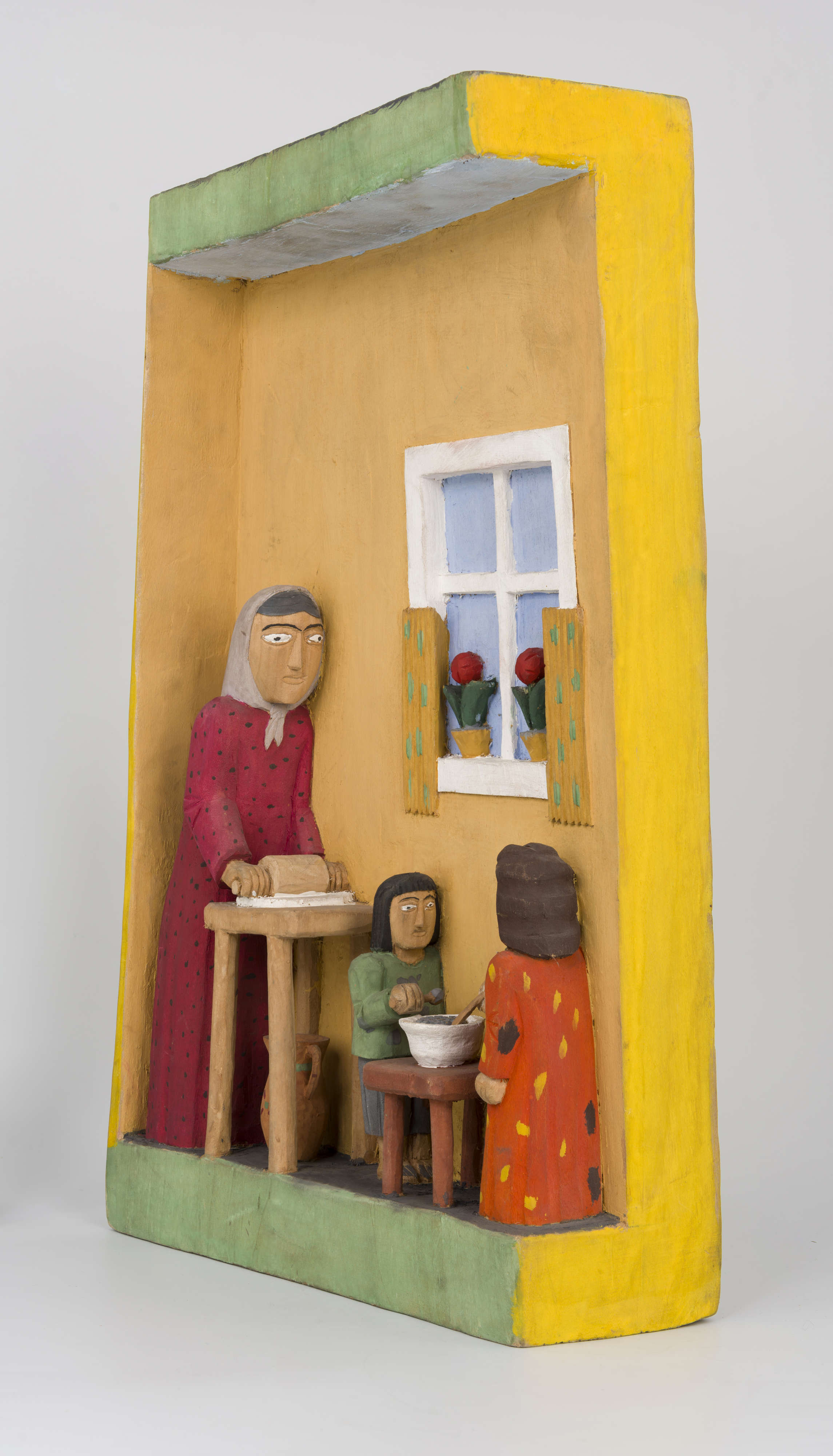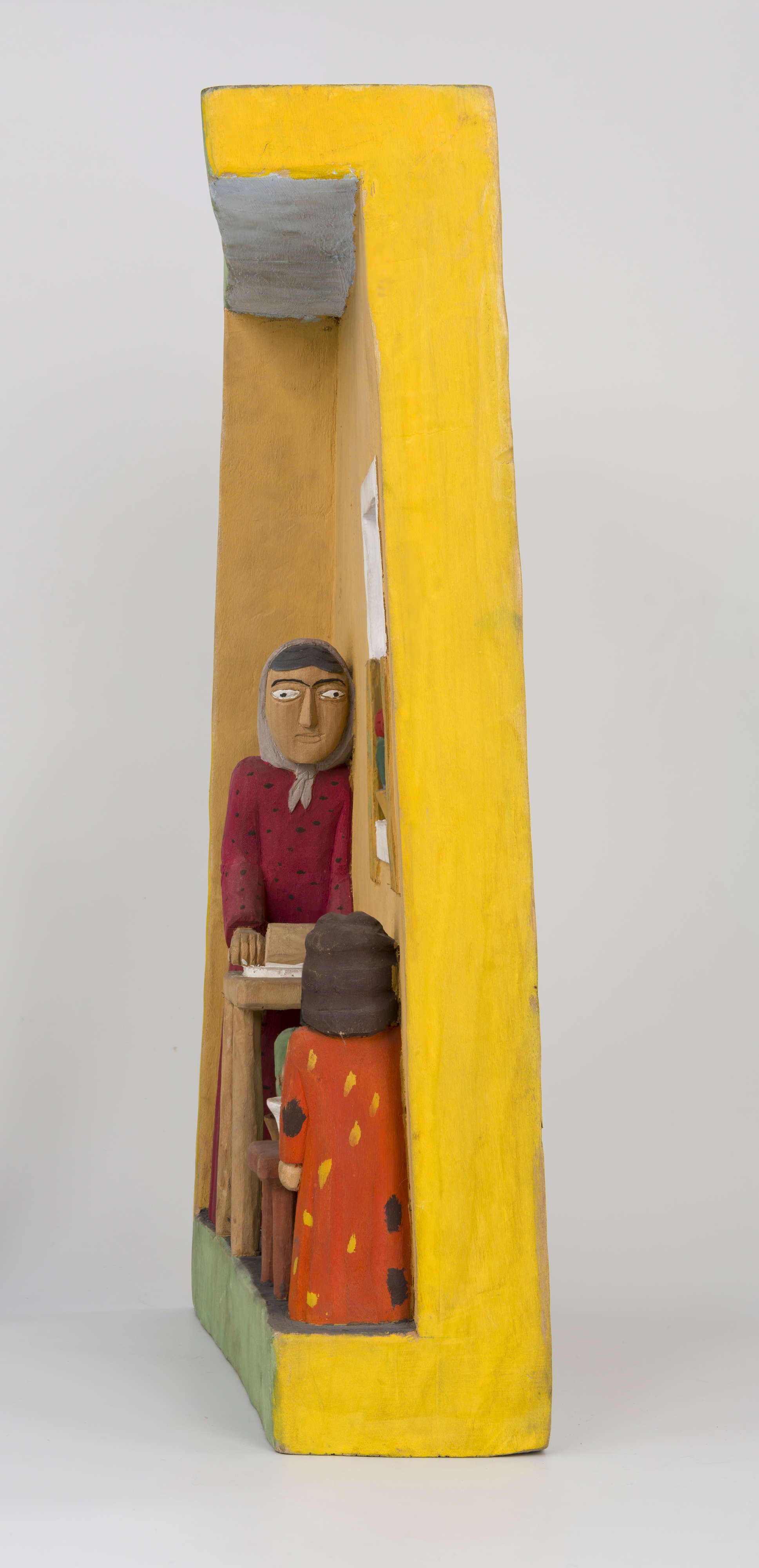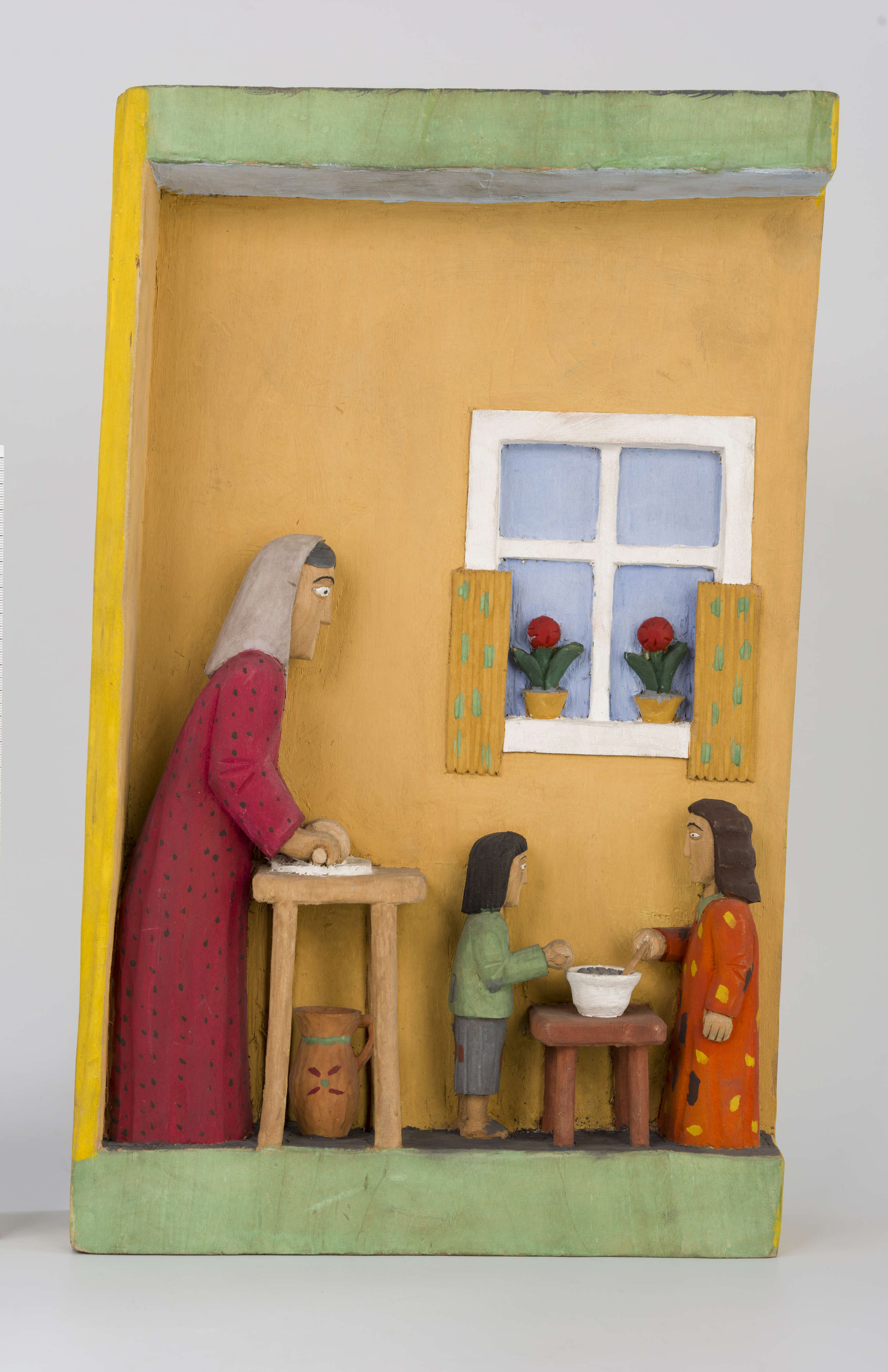 Rzeźba, podobnie jak malarstwo, w kulturze ludowej będąca wyrazem potrzeb artystycznych i duchowych, wyraziście ujawnia indywidualność twórców. W XIX i na początku XX wieku przedstawienia rzeźbiarskie były związane z kultem religijnym. Od 1960 roku, gdy rozpowszechniła się moda na ludowość, twórców ze środowisk wiejskich zaczęto promować szerzej. Obok prac o tematyce religijnej pojawiły się kompozycje podejmujące wątki świeckie (patrz: E/14750/ML) przedstawiające sceny z życia wsi (patrz: E/16317/ML) czy obrzędy rodzinne i doroczne.