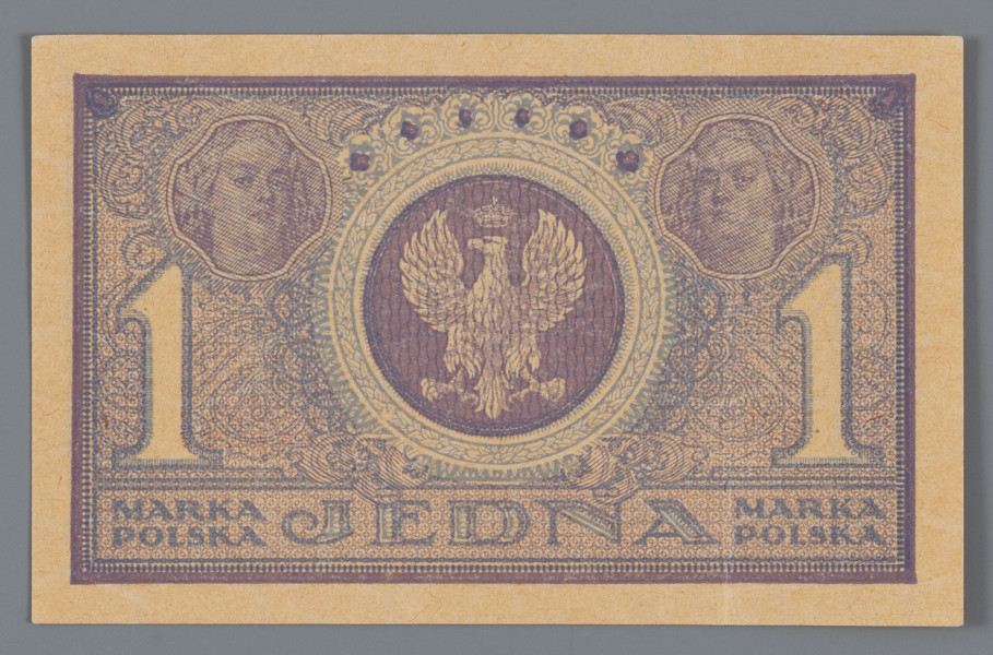 O ile projekt graficzny pierwszego niepodległościowego banknotu o nominale 500 mkp czerpał wprost ze wzorców okupacyjnych, to kolejne emisje z pierwszego półrocza 1919 roku były projektami oryginalnymi, na których ujawnia się talent wybitnego polskiego grafika Adama Jerzego Półtawskiego (1881–1952), twórcy polskiego kroju pisma (antykwa Półtawskiego). Był on autorem licznych prac z zakresu ilustracji i grafiki książkowej, nagradzanym twórcą exlibrisów i zasłużonym pedagogiem zajmującym się grafiką oraz redaktorem czasopism o tej tematyce. W pierwszych latach niepodległości był związany między innymi z Zakładem Graficznym PKKP oraz z Zakładem Graficznym Bolesława Wierzbickiego w Warszawie, dla których zaprojektował banknoty o nominałach: 1, 5, 20 i 100 mkp. Na rewersie 1 mkp możemy odszukać litery A P, którymi projektant sygnował swoje prace.