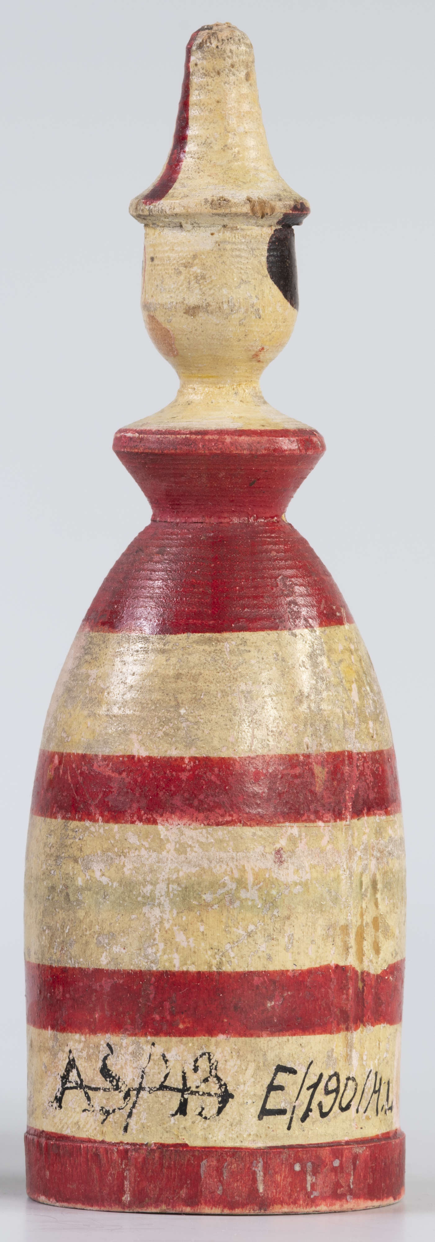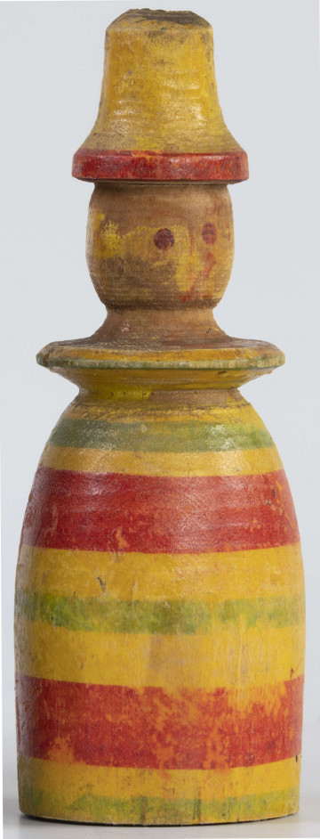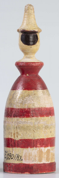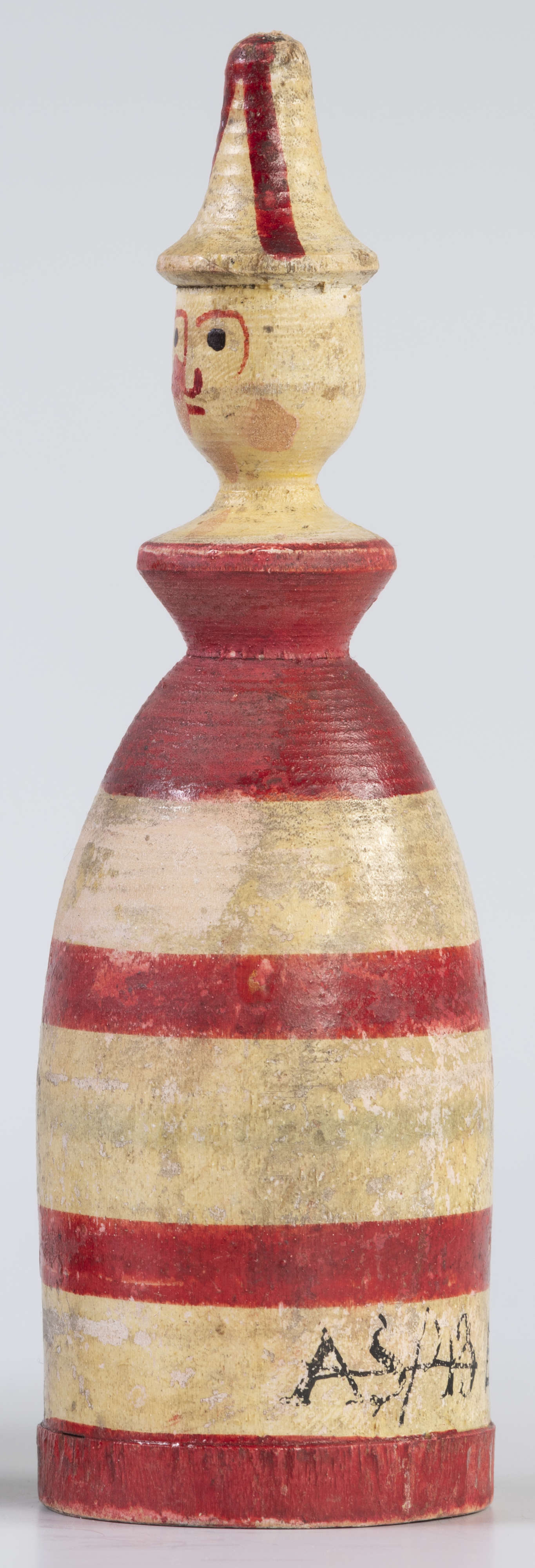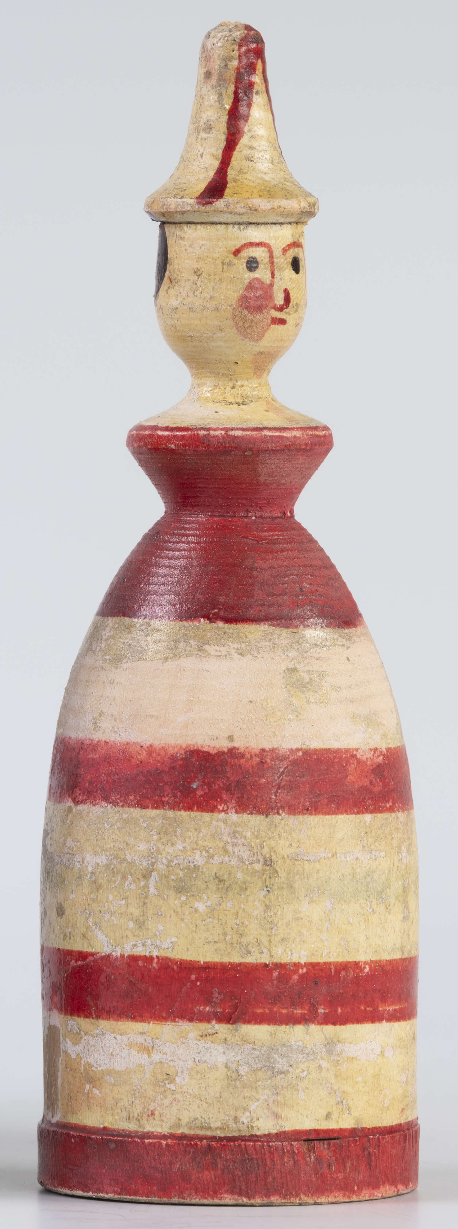 Grzechotka szybko zdobyła popularność. Gliniane, stożkowate, gruszkowate, workowate, sercowate, kuliste, baniaste z szyjkami, a także w kształcie ptaszków znaleziono podczas wykopalisk archeologicznych w Biskupinie. W środku znajdowały się kamyczki, których ruch powodował grzechot. Te drobne przedmioty były lepione nieudolnie. Prawdopodobnie robiły je dzieci, bądź „na szybko” dorośli. Drewniane, których XX-wiecznym przykładem jest ta grzechotka-figurka przypominająca pajacyka, wymagały większych zdolności stolarskich, a nawet odpowiednich urządzeń pomocnych w obróbce. Na pewno były bardziej trwałe i bezpieczniejsze, dzięki wygładzonym kształtom.