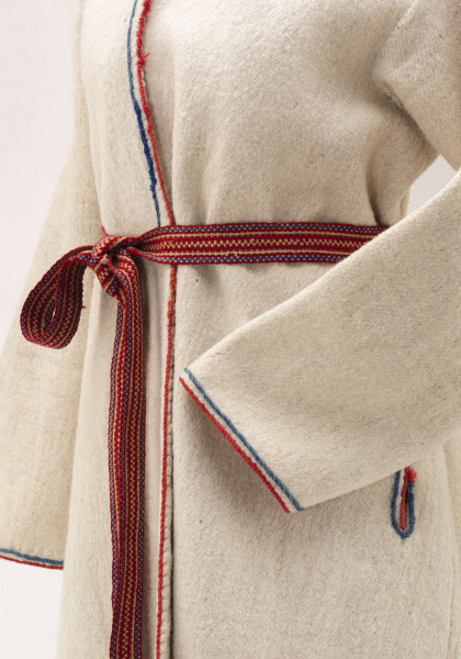 Sukmana kobieca pochodzi z miejscowości Okopy w powiecie chełmskim, z pierwszej połowy XX wieku. Była noszona do stroju świątecznego w okresie jesiennym i wiosennym. Podczas mroźnych zim nakładano ją na kożuch, aby chronić się przed zimnem. Była szyta przez krawca z materiału samodziałowego wełnianego o kroju poncho podłużnego z dwoma bocznymi klinami wszytymi od pasa w dół. Jest wcięta dzięki zastosowaniu trzech zaszewek w pasie. Posiada także kliny pod pachami rękawów, które zwężają się ku brzegom, gdzie od strony wewnętrznej jest niewielkie rozcięcie. Sukmana jest ozdobiona obszyciem ze sznurków w kolorze czerwonym i niebieskim, które są umieszczone po obu brzegach stójki, przy rozcięciu na całej długości kolorem czerwonym i do pasa niebieskim oraz na obrzeżu mankietów i na zaszewkach bocznych. Oba rozcięcia z przodu były zakładane na siebie, całość obwiązywano w pasie krajką.