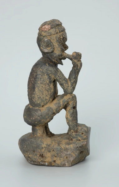 Rzeźba przedstawia dwie postacie w pozycji siedzącej – mężczyzny po prawej i kobiety po lewej stronie. Jest to mintadi (liczba pojedyńcza ntadi) figura kamienna umieszczana na ołtarzach domowych oraz na grobach potężnych i szanowanych osób, na przykład szefów wioski i ich rodziny. Rzeźba mężczyzny przedstawia zamyślonego naczelnika wioski. Przedstawienia dostojników i władców rozpoznaje się po insygniach władzy. Omawiana postać pali fajkę, a na głowie ma czapkę zwaną w języku kikongo mpu – typowe atrybuty władcy.
