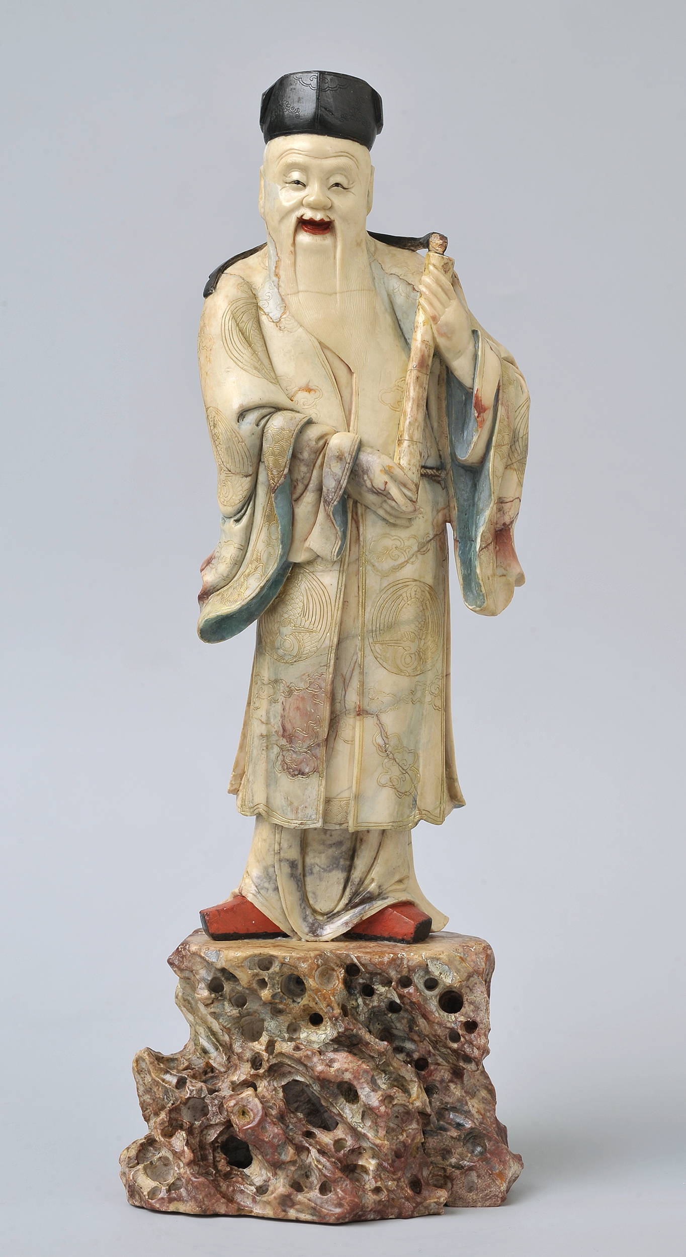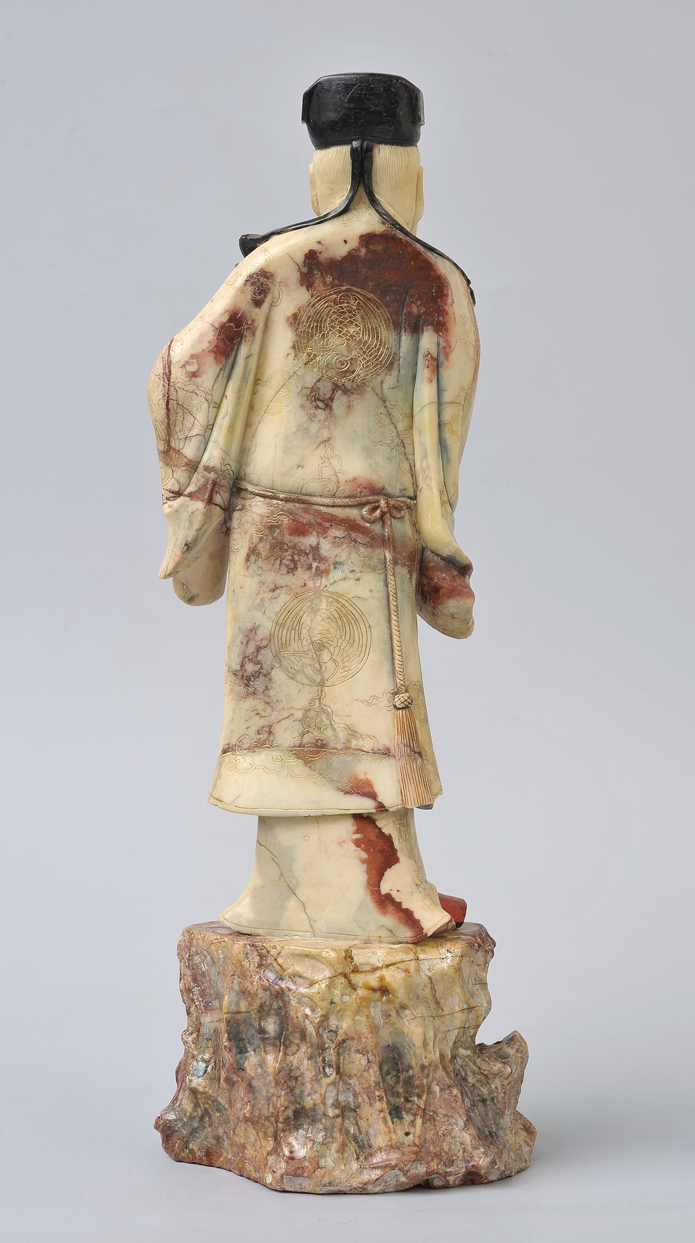 Steatyt, nazywany też słonińcem czy kamieniem mydlanym, jest jednym z bardziej popularnych surowców w chińskim rzemiośle artystycznym, i nie tylko. Dzięki wysokiej zawartości talku w składzie tej skały, wahającej się od 30 do 80 procent, steatytu używano do tworzenia różnorodnych przedmiotów, również codziennego użytku. Miękkość kamienia pozwalała na szybkie i niewymagające specjalnych narzędzi obrobienie tego materiału. Stosunkowo dobra dostępność do surowca wpływała na jego powszechność i powiązaną z tym cenę. Kolorystyka kamienia mydlanego jest bardzo szeroka. Skały przybierają barwy bieli, różu, szarości, czerni, czerwieni, brązu, fioletu i zieleni.