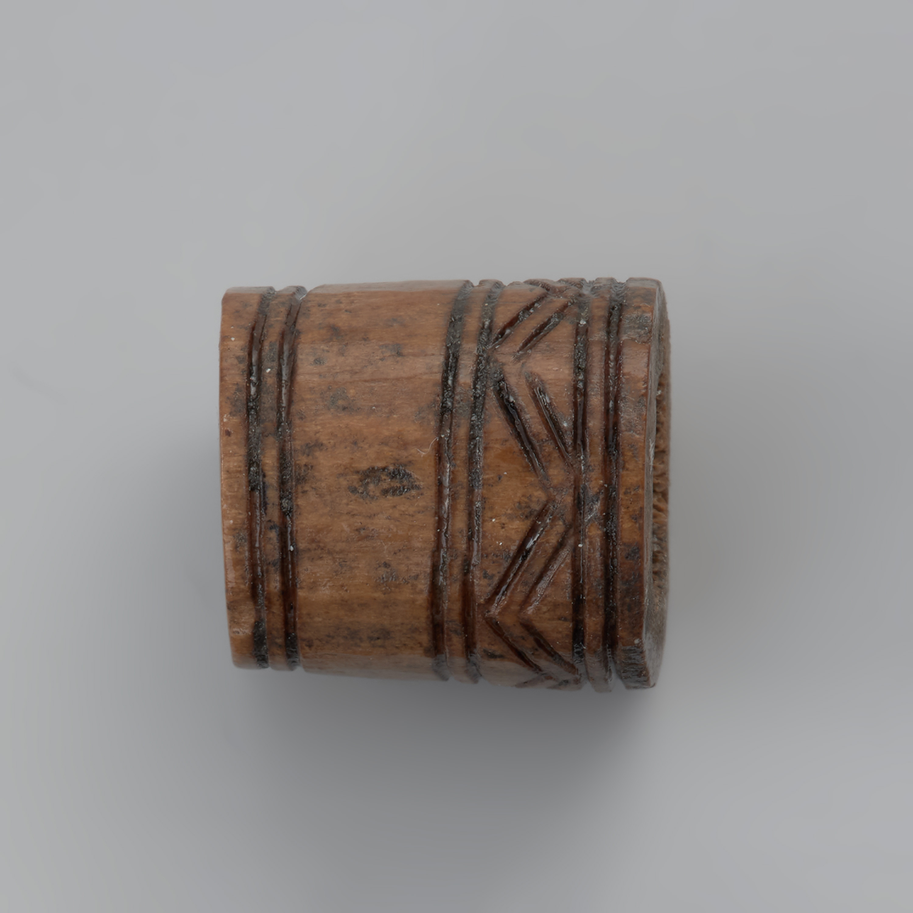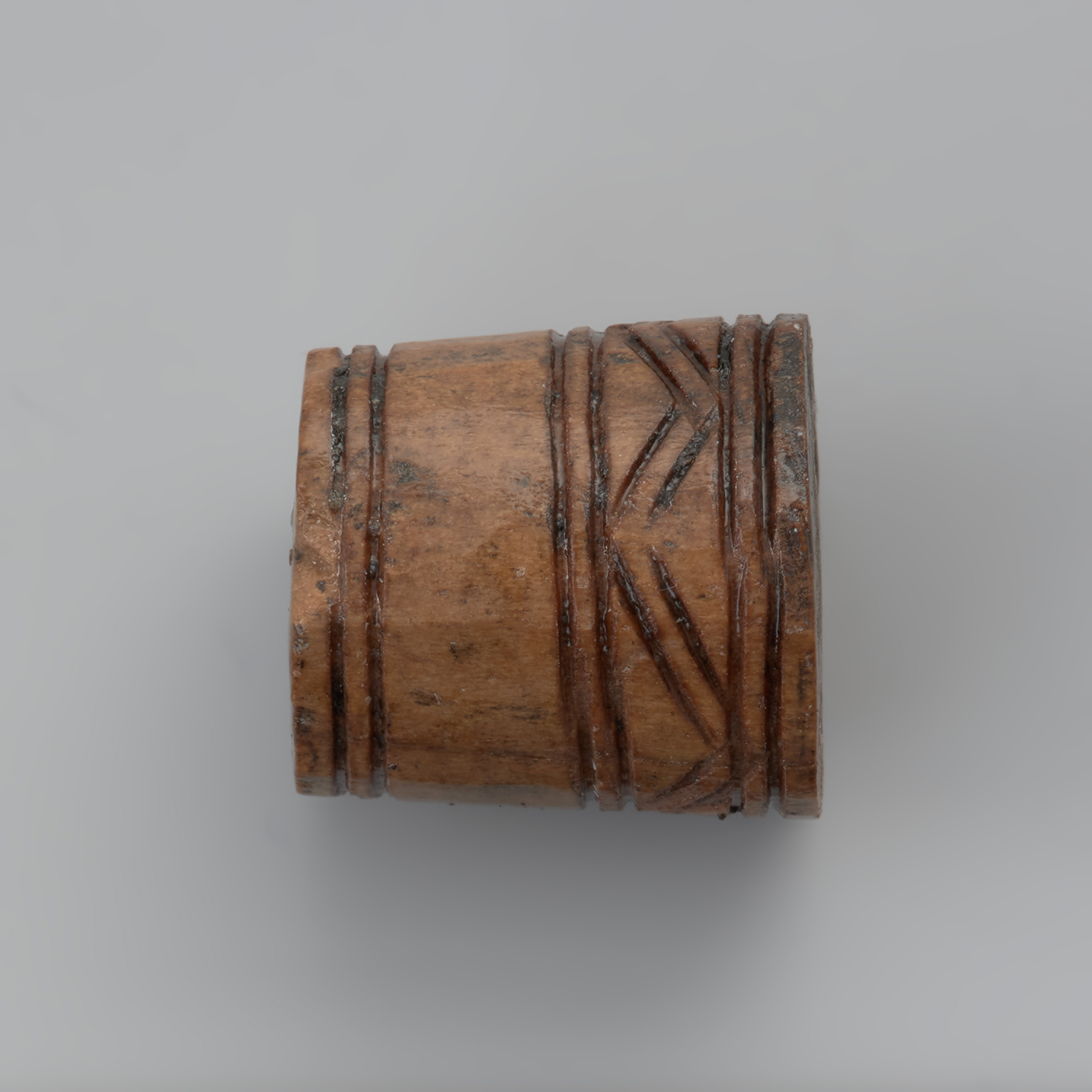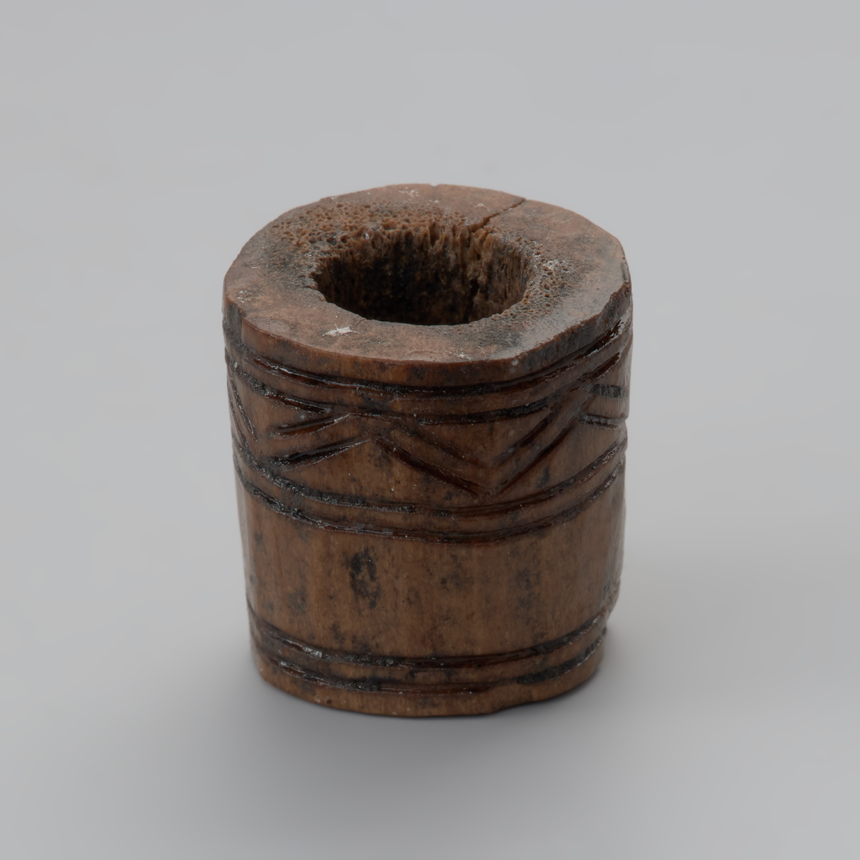 Do jednych z prężnie działających rzemiosł we wczesnym oraz późnym średniowieczu można zaliczyć rogownictwo. Z poroża pozyskiwanego głównie z gatunków zwierząt jeleniowatych, wykonywano przepiękne, często bardzo bogato zdobione przedmioty, takie jak grzebienie jedno- lub wieloczęściowe wraz z pochewkami, okładziny noży, pochewki do sierpów, szpile, paciorki, figurki do gier planszowych i wiele innych przedmiotów codziennego użytku. Należały do nich także stożkowate oprawki występujące na terenie Pomorza od IX do XIV wieku, najliczniej w X–XII stuleciu. Wykonywano je najczęściej w wyspecjalizowanych pracowniach grzebienniczych z odpadów powstających przy produkcji grzebieni. Poroże należy do surowców stosunkowo łatwych w obróbce. Pierwszym etapem jest jego zmiękczenie poprzez gotowanie w wodzie. W kolejnych etapach obróbki używano toporów, pił, noży, dłut, świdrów, pilników lub tokarek. Gotowe oprawki wykorzystywano do wzmacniania nasad drewnianych trzonków noży, bądź innych narzędzi żelaznych. Na powierzchni oprawki kamieńskiej znajduje się nieskomplikowany wzór zdobniczy złożony z linii i zygzaków naniesionym ostrym narzędziem.
