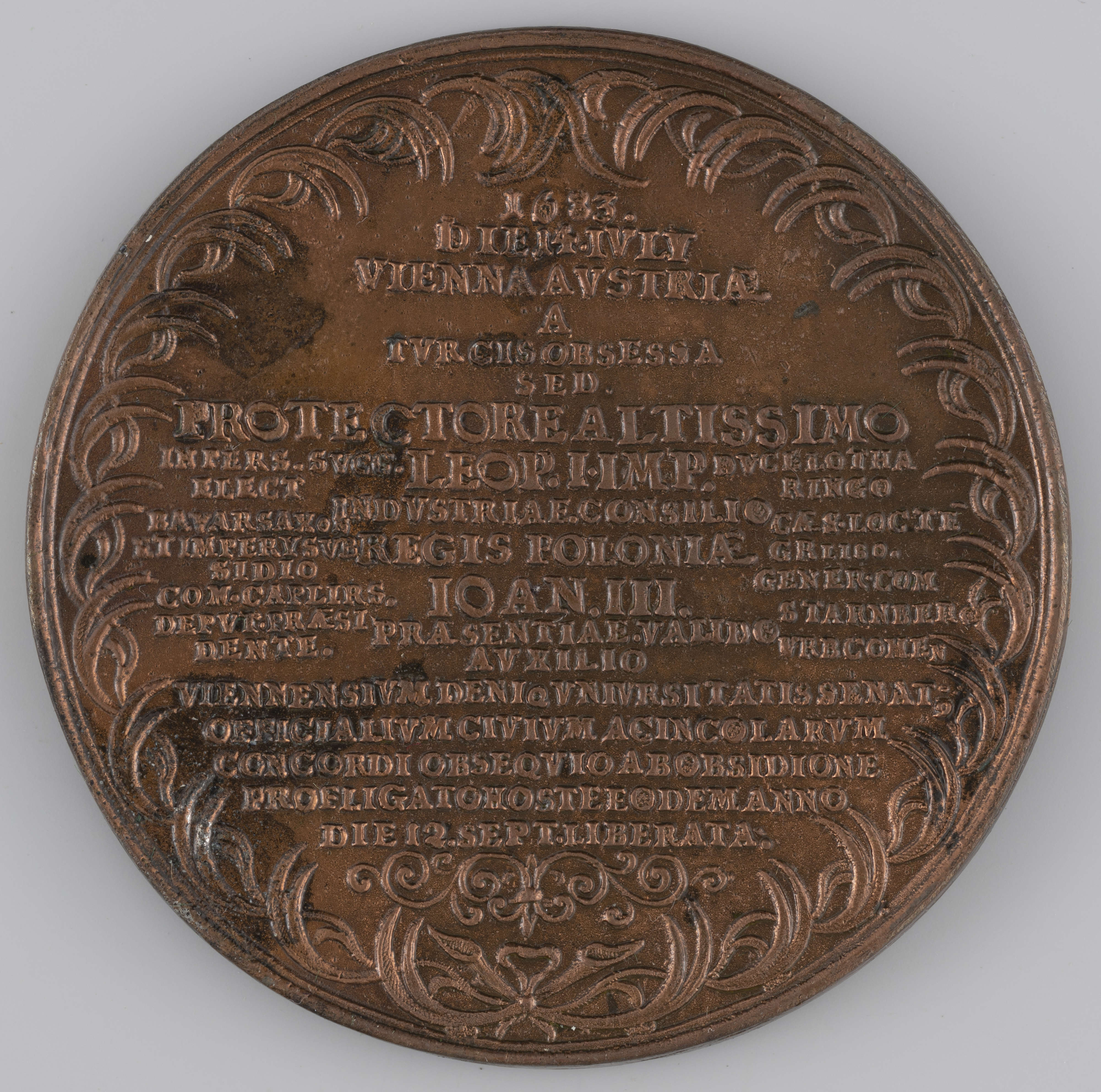 Wiek XVII obfitował w ważne wydarzenia. Spora ich część wiązała się z toczonymi wówczas wojnami. Spośród batalii związanych z działaniami wojsk polskich niewątpliwie najbardziej znana w ówczesnej Europie była bitwa z Turkami, wynikiem której było uwolnienie cesarskiego Wiednia z oblężenia. Wiktoria wiedeńska odbiła się szerokim echem w całym chrześcijańskim świecie. Nic zatem dziwnego, że wydarzenie to było chętnie upamiętniane. Na gruncie polskim powstało wiele dzieł, również medali, ukazujących samo wydarzenie czy też Jana III Sobieskiego. Nie inaczej było na terenach podlegających władzy cesarza Leopolda I. Zwycięstwo to postanowiono uczcić również w bogatym Hamburgu. Z tej okazji powstał prezentowany medal zaprojektowany przez Jana Reteke. Co znaczące, na gruncie niemieckim akcentowano głównie udział wojsk cesarskich w zwycięstwie, jednak uhonorowany został także Jan III Sobieski oraz polsko-litewska armia Rzeczypospolitej. Twórca tego medalu urodził się w Rydze, najpewniej w 1643 roku, jako syn medaliera Jana Rethe. Początkowo pracował w Sztokholmie, jednak na stałe związał się z Hamburgiem, gdzie zajmował się głównie projektowaniem tak zwanych portugałów, czyli wielodukatowych złotych monet. Były one naśladownictwem monet portugalskich emitowanych od 1499 roku. Z tego też względu otrzymał przydomek Twórca Portugałów. Specyfika tych monet – były bardziej wyrazem potęgi finansowej Hamburga niż środkiem płatniczym – powodowała, że nie bez racji nazywano je aż do XIX wieku także portugalskimi medalami. Doświadczenie zdobyte przy ich projektowaniu sprawiło, że Jan Reteke wyjątkowo dobrze nadawał się do roli twórcy medalu dokumentującego wiktorię wiedeńską.