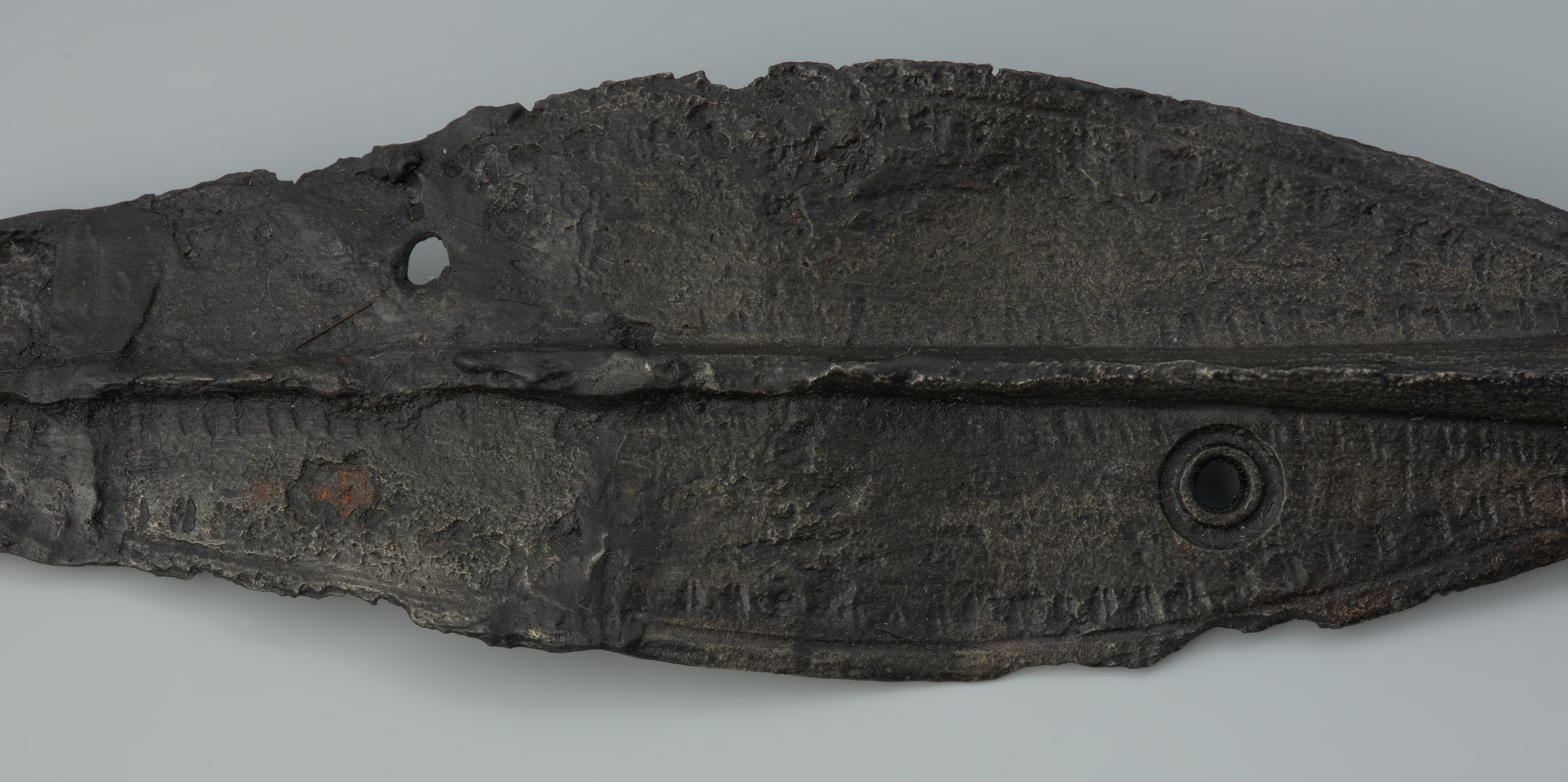 Grot oszczepu z żelaza z otworem w środku jest ornamentowany, najpewniej niezachowaną aplikacją z metalu kolorowego. Był element wyposażenia grobu ciałopalnego popielnicowego obsypanego resztkami stosu kremacyjnego. Taka forma chowania zmarłych była powszechnie stosowana w okresie wpływów rzymskich, w I–IV wieku, w całej Europie północnej. Zdobione groty oszczepów są od dawna przedmiotem drobiazgowych badań w archeologii okresu wpływów rzymskich. Jako miejsca ich pierwotnego pochodzenia wskazuje się Skandynawię albo obszary zajmowane przez ludy stepowe. Na dolnym Nadodrzu zwyczaj ornamentowania grotów broni drzewcowej zapożyczony został od społeczności kultury przeworskiej zamieszkującej obszar dzisiejszej Wielkopolski. Grot z Czelina, na podstawie pozostałych elementów wyposażenia grobu, można datować na rozwinięty okres wpływów rzymskich, na II/III wiek. W pochówku, oprócz popielnicy i grotu znajdowało się również umbo z kolcem – okucie środka tarczy, imacz żelazny – okucie uchwytu tarczy, dwie zniszczone zapinki z brązu, brzytwa, nóż i szpila z żelaza oraz okucia końca pasa. Cmentarzysko w Czelinie odkryły w 2004 roku dzieci bawiące się na terenie żwirowni. Obecnie jest ono badane przez archeologów z Muzeum Narodowego w Szczecinie. Do tej pory odkryto około 200 obiektów, przeważnie grobów ciałopalnych wyposażonych w elementy stroju i uzbrojenie. Zróżnicowanie ozdób i innych wyrobów wskazuje na mieszanie się w tej części Pomorza różnych wpływów kulturowych – wspomnianej kultury przeworskiej, kultury wielbarskiej oraz kultur z terenów nadłabskich i Skandynawii. W grobach znaleziono ponadto przedmioty importowane z prowincji Cesarstwa Rzymskiego, w tym krótki miecz (gladius) i rzymskie naczynie z brązu.