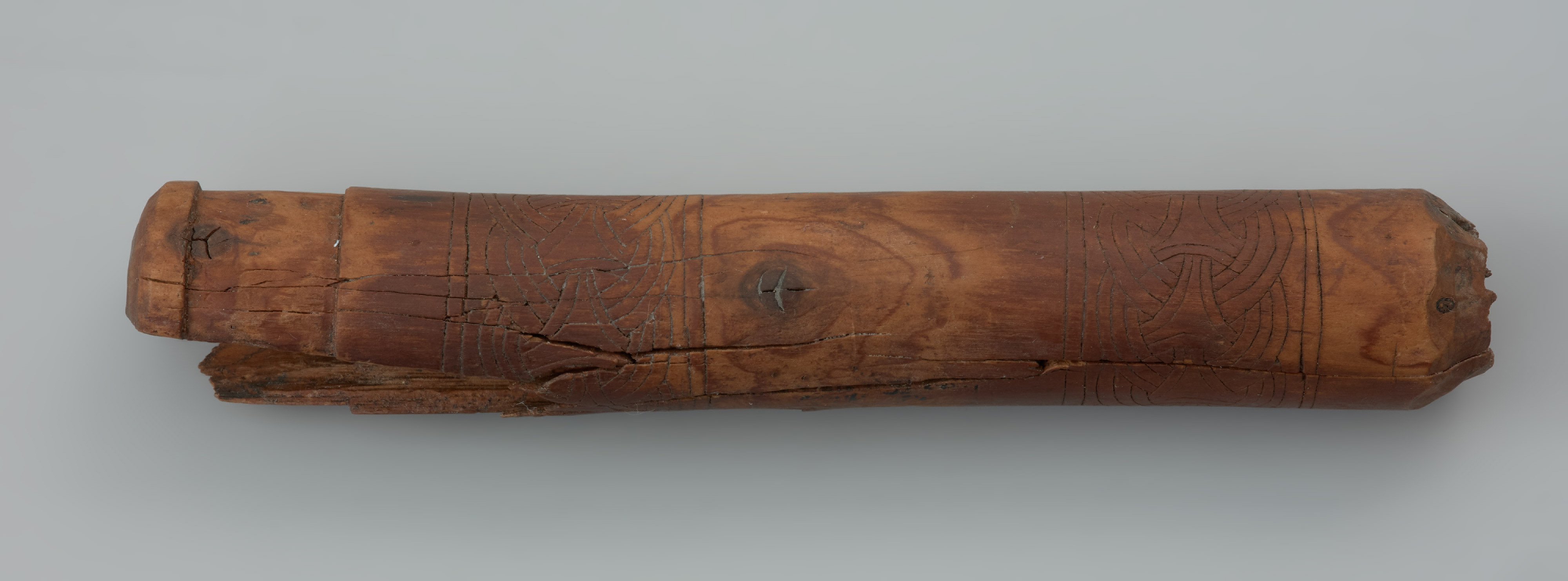 Drewniana oprawka zachowana z żelaznym nożem ma dekorację charakterystyczną dla kultury Skandynawii. Wzajemne kontakty pomorsko-skandynawskie we wczesnym średniowieczu, rozpatrywane z punktu widzenia związków politycznych, gospodarczych i kulturowych od lat budzą niesłabnące zainteresowanie historyków i archeologów. Kontakty pomiędzy ludami Północy a Słowianami na południowym wybrzeżu Bałtyku odzwierciedla między innymi obecność wyrobów pochodzenia skandynawskiego, wśród których znajdują się przedmioty pospolite i luksusowe, a także surowce niezbędne w kluczowych sektorach wytwórczości rzemieślniczej, w tym żelazo niskofosforowe i fyllit.
