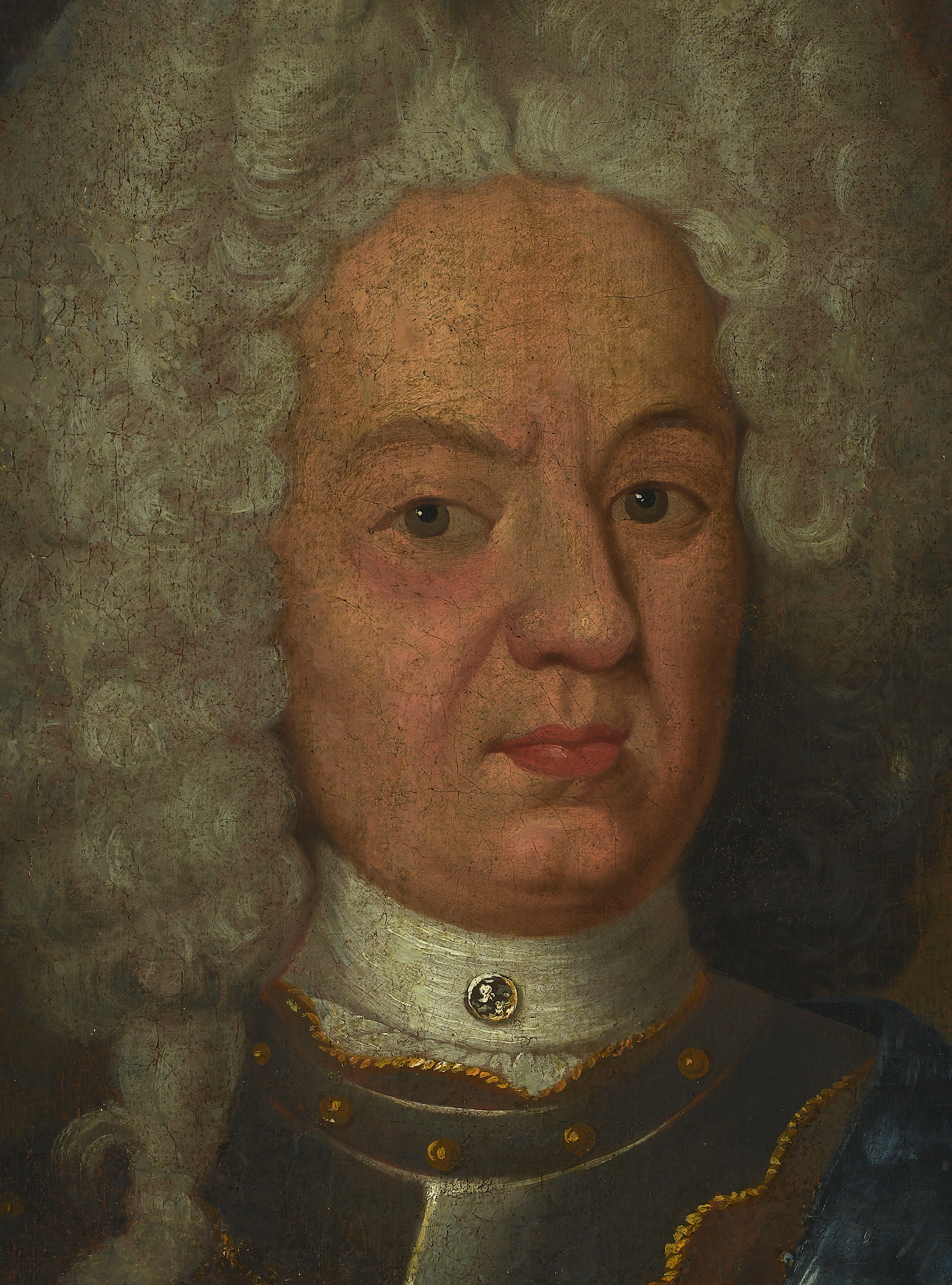 Nieokreślony malarz polski przedstawił na ciemnym, gładkim tle popiersie mężczyzny w średnim wieku, w wysokiej pudrowanej peruce na głowie, rozdzielonej pośrodku, ubranego w pancerz. Przez pierś portretowanego widoczna jest przeciągnięta wstęga orderu Orła Białego. Wkoło szyi zawiązany biały krawat z wpiętym z przodu brylantowym guzem, stanowiącym bardzo kosztowną ozdobę, świadczącą o wysokim statusie społecznym portretowanego.