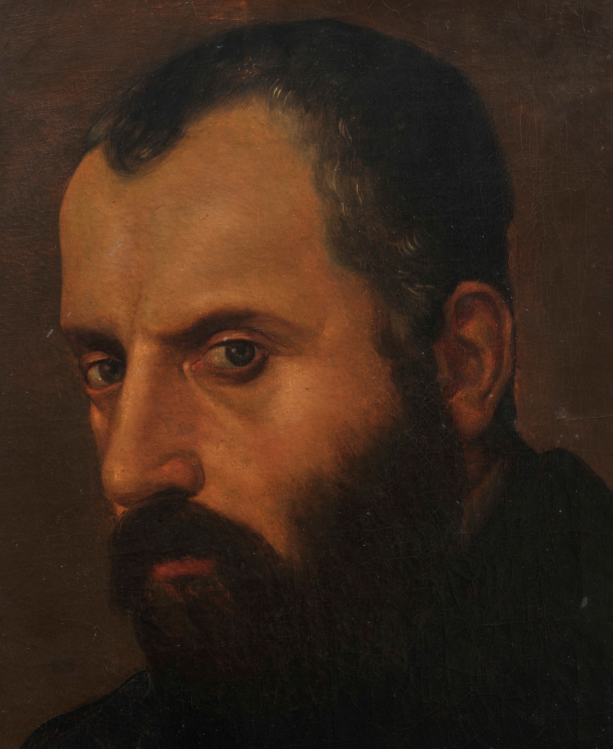 W wyrazie twarzy sportretowanego mężczyzny kryje się tajemnica. Zmarszczone brwi, zaciśnięte usta ledwo widoczne spod wąsów i brody, skierowany w bok nieobecny wzrok, czy nadstawione ucho pozwalają wnioskować o pewnym zniecierpliwieniu pozującego. Pojedyncze siwe włosy na skroni i zarysowujące się zakola dają ogólne pojęcie o jego wieku, który szacować można na trzecią dekadę życia. Obraz tonie w czerni stroju mężczyzny, który dopełnia takiż kolor jego włosów; brak jaśniejszych akcentów. Brązowawe tło z widocznymi tu i ówdzie rudymi prześwitami współgra z karnacją jego skóry. Może nie widać tu wirtuozerii warsztatu, ale na pewno jest to poprawnie i wnikliwie psychologicznie wykonane studium głowy pozbawione zbędnych, osłabiających wyraz ozdobników.