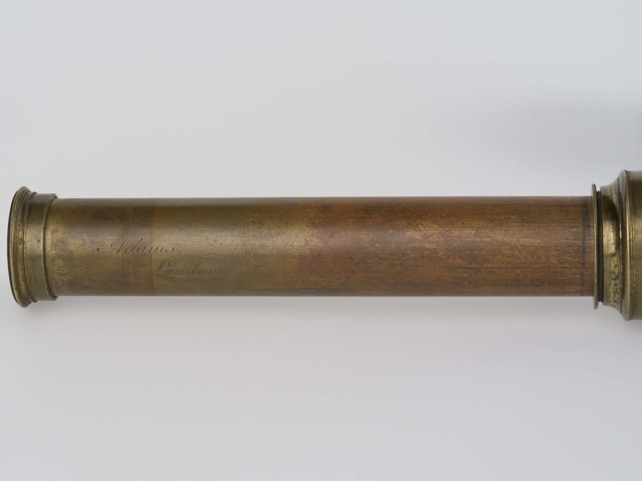 Ciekawa jest jednak postać wytwórcy obiektu, którym prawdopodobnie był George Adams młodszy. George Adams, ojciec, (1704-1773) był angielskim uczonym, znanym twórcą przyrządów matematycznych, globusów ziemskich i niebieskich. Prowadził prestiżowe i poważane przedsiębiorstwo oraz sklep, które działały w Londynie, przy Fleet street. Jego syn, również George (1750-1795, zw. młodszym), przejął zainteresowania po ojcu; początkowo był jego współpracownikiem, a po śmierci George’a starszego, przejął opiekę nad firmą i kontynuował działalność ojca. Za jego wszechstronne zasługi w dziedzinie udoskonalania narzędzi badawczych został uhonorowany oficjalnym stanowiskiem twórcy instrumentów matematycznych dla Jego Wysokości Króla Jerzego III (lata panowania 1760-1820), a także optykiem Księcia Walii, przyszłego Króla Jerzego IV (lata panowania 1820-1830). Do popularnych przedmiotów wyrabianych przez przedsiębiorstwo Adamsów należały lunety gabinetowe oraz teleskopy. Najprawdopodobniej, egzemplarz wilanowski, wyposażony był w stojak (trójnóg) oraz element, który umożliwiał zamocowanie do niego lunety.