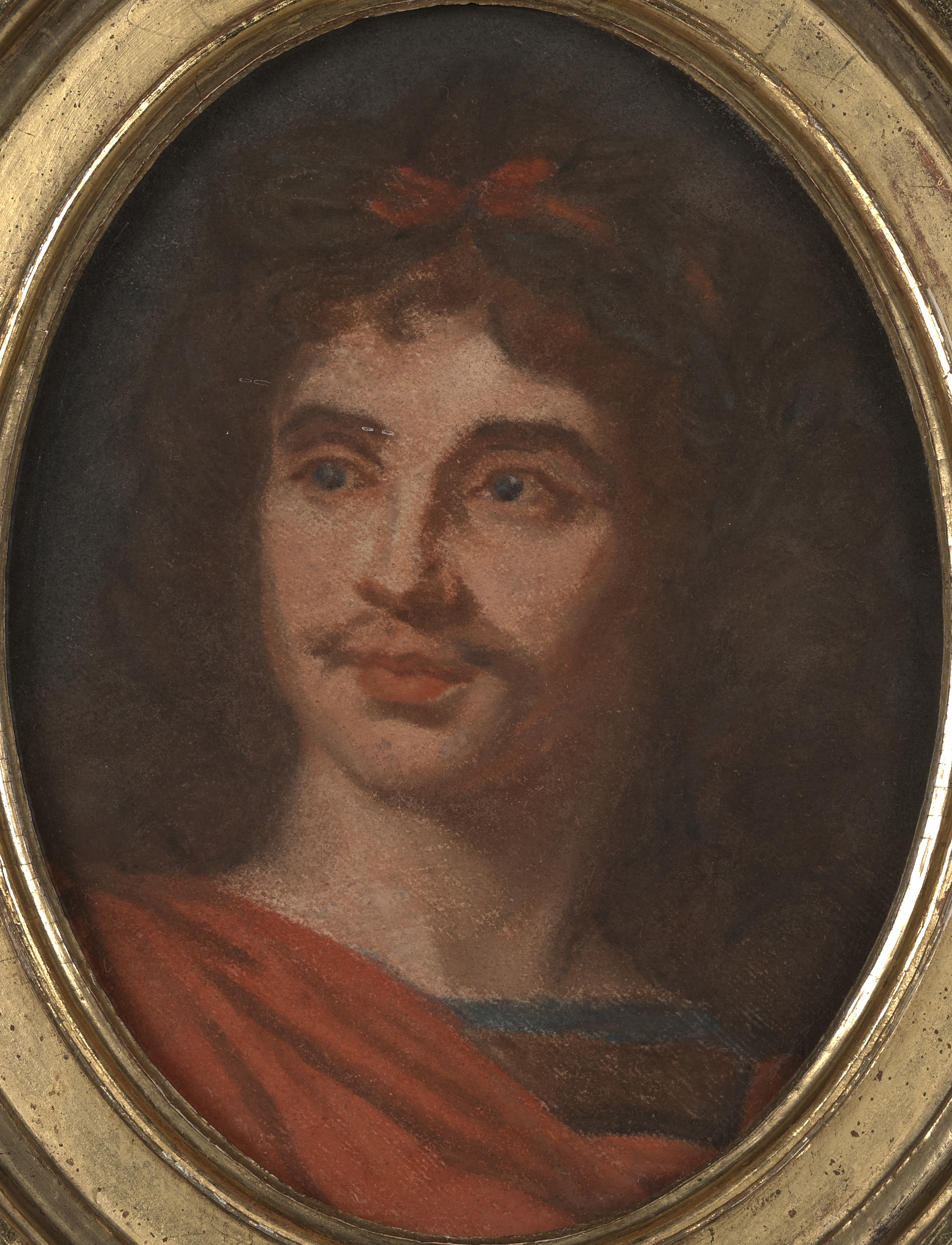 Jedna z trzech miniatur, będących od 1944 r własnością Muzeum – Zamku w Łańcucie, a należących przed tym rokiem do rodziny Potockich, właścicieli zamku łańcuckiego. Owalne miniatury przedstawiają sławnych ludzi związanych ze sztuką w szerokim jej pojęciu, żyjących w XVII w, a namalowane zostały w XVIII w przez nieznanego malarza. Jedna z nich przedstawia Portret Moliera – popiersie młodego mężczyzny na neutralnym tle z podpisem na ramie czarną farba MOLIERE. Moliere, spolszczone Molier nazywał się Jean Baptiste Poquelin (ur. w styczniu 1622 r w Paryżu zm. w lutym 1772 tamże) był francuskim komediopisarzem epoki baroku. Pochodził z mieszczaństwa, po ukończeniu studiów prawniczych nigdy nie pracował w zawodzie. W 1643 r założył trupę teatralna w Paryżu, która wystawiała średniowieczne farsy oraz commedia dell arte. Po bankructwie Molier trafił do więzienia za długi. Po wyjściu z więzienia wiódł życie wędrownego aktora do 1658 r, kiedy, wraz z innymi aktorami tej trupy wrócił do Paryża. W 1659 r wystawił tam komedię swego autorstwa „Pocieszne wykwintnisie”, która odniosła sukces i spodobała się Ludwikowi XIV. Od tej pory aż do 1673 r tworzył komedie, farsy, komediobalety, w których ośmieszał wady ludzkie – hipokryzję, zakłamanie, życie rodzinne („Świętoszek,” „Szkoła żon”), pogardę wobec uczciwych ludzi („Mizantrop”), czy gromadzenie bogactw dla samego gromadzenia („Skąpiec”).Interesowały go typy ludzkie, ale pomimo pesymizmu i goryczy zawartych w niektórych jego dziełach wierzył w dobroć ludzką, rozum oraz przezwyciężanie zła. Zmarł w 1673 r w trakcie wystawiania sztuki „Chory z urojenia”. Początkowo odmówiono pochowania go na cmentarzu, po wstawiennictwie arcybiskupa Paryża został pochowany poza miastem, a rok po śmierci przeniesiony na cmentarz Pere – Lachaise w Paryżu.