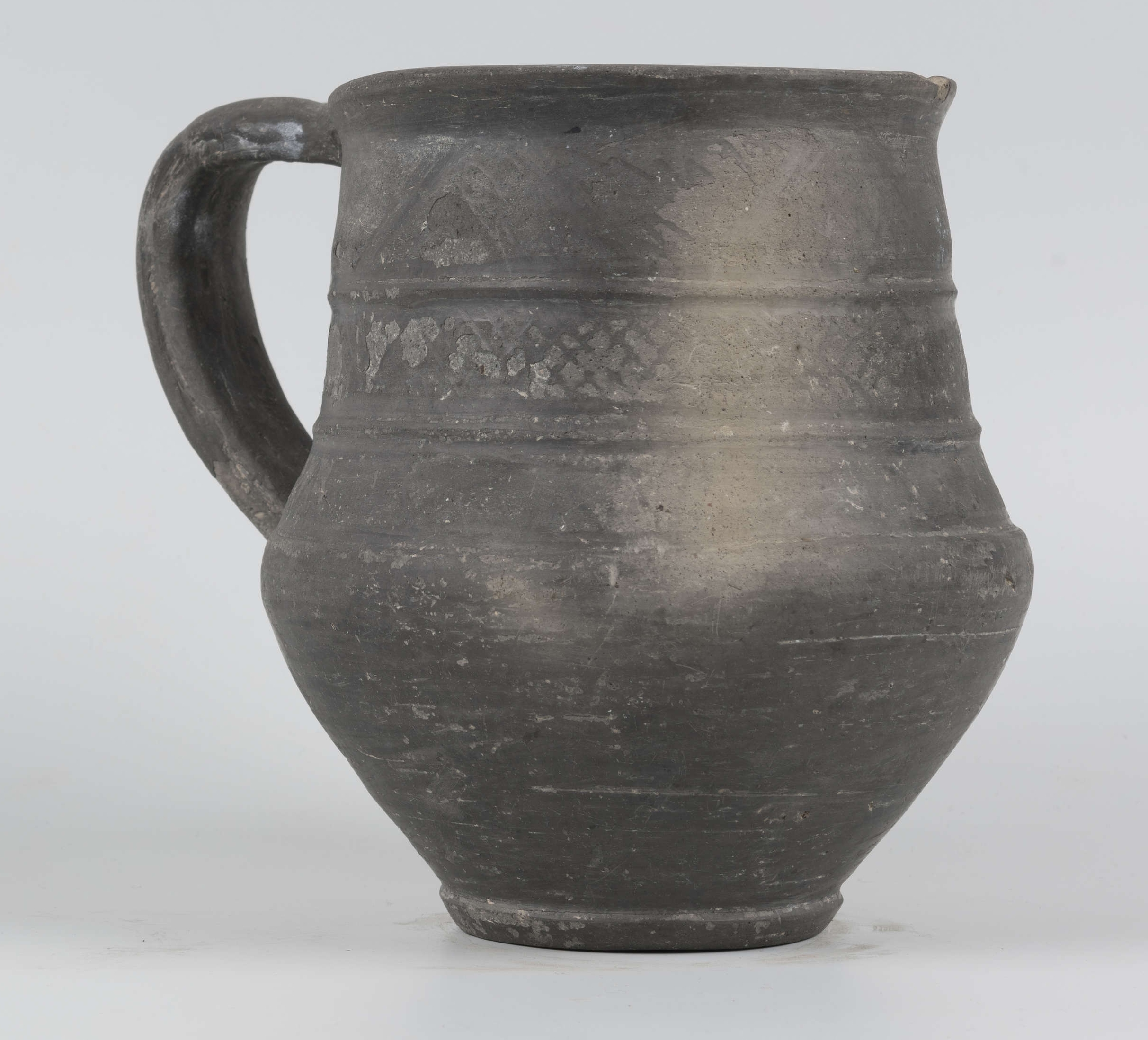 Wykonany przy użyciu koła garncarskiego dzban gliniany jest luksusowym naczyniem, jednym z elementów wyposażenia pochówku z późnego okresu rzymskiego (koniec III–1. połowa IV wieku n.e.) odkrytego na terenie osady wielokulturowej. Badania na stanowisku podjęli w 1959 roku archeolodzy z Państwowego Muzeum Archeologicznego w Warszawie, dostarczyły wielu znalezisk pochodzących z różnych okresów chronologicznych. Po opracowaniu materiały te, związane terytorialnie z Lubelszczyzną, przekazano do zbiorów Działu Archeologii Muzeum Narodowego w Lublinie.