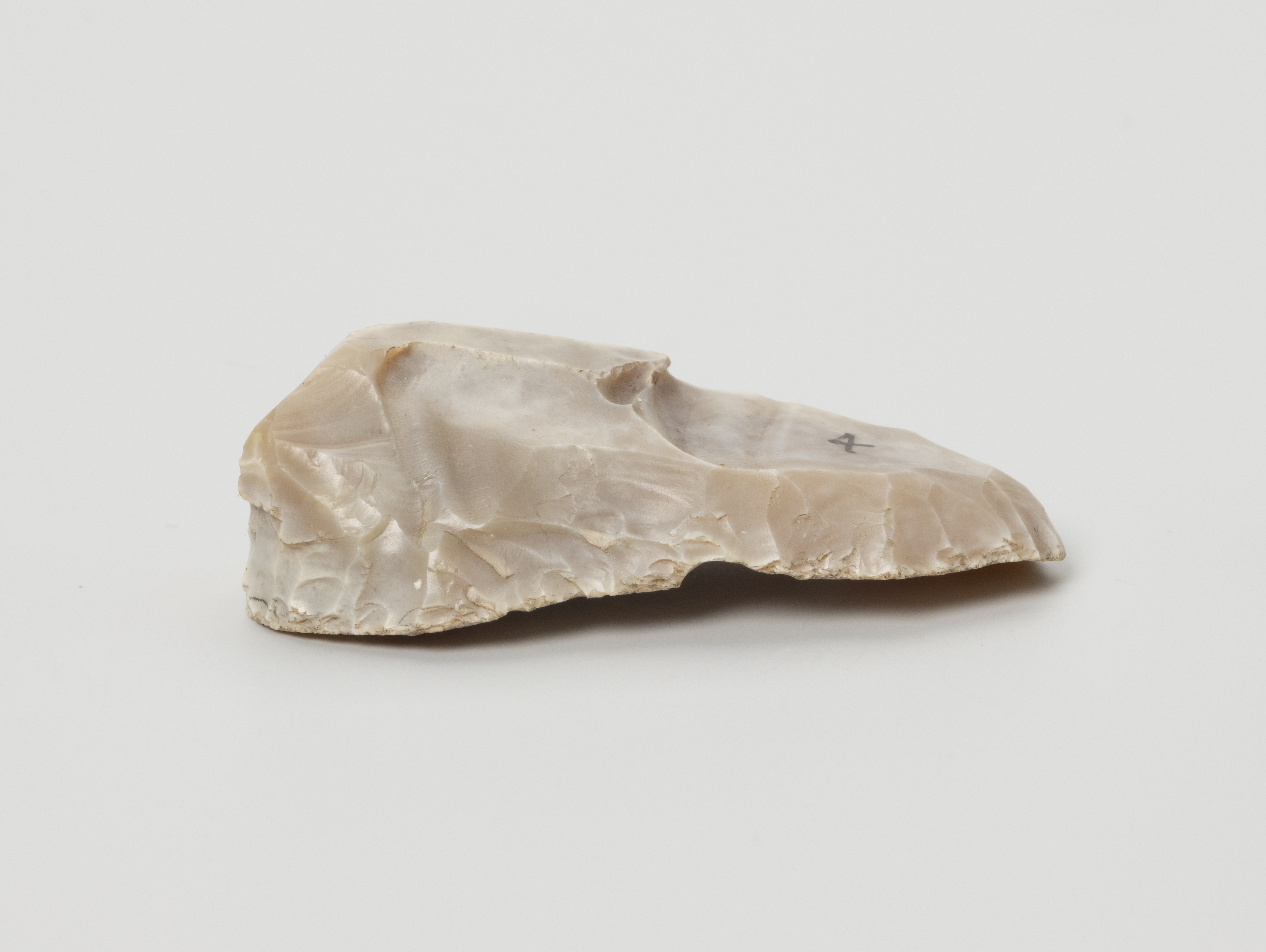 Na stronie spodniej zabytku widoczne są wyłamania i tzw. retusz użytkowy, który powstał na skutek zastosowania jakiejś formy oprawy wykonanej z kości, poroża lub drewna. Na krawędzi pracującej nie widać żadnych śladów użytkowania, co sugeruje, że pierwotnie narzędzie było dłuższe i zostało porzucone krótko po naprawie. Drapacze były narzędziami używanymi głównie do obróbki skór i innych materiałów organicznych. Często podlegały naprawom, co sprawia, że większość z nich wyrzucano, gdy były już silnie zredukowane, dlatego kształt znajdowanych przez archeologów okazów mocno może odbiegać od pierwotnego.