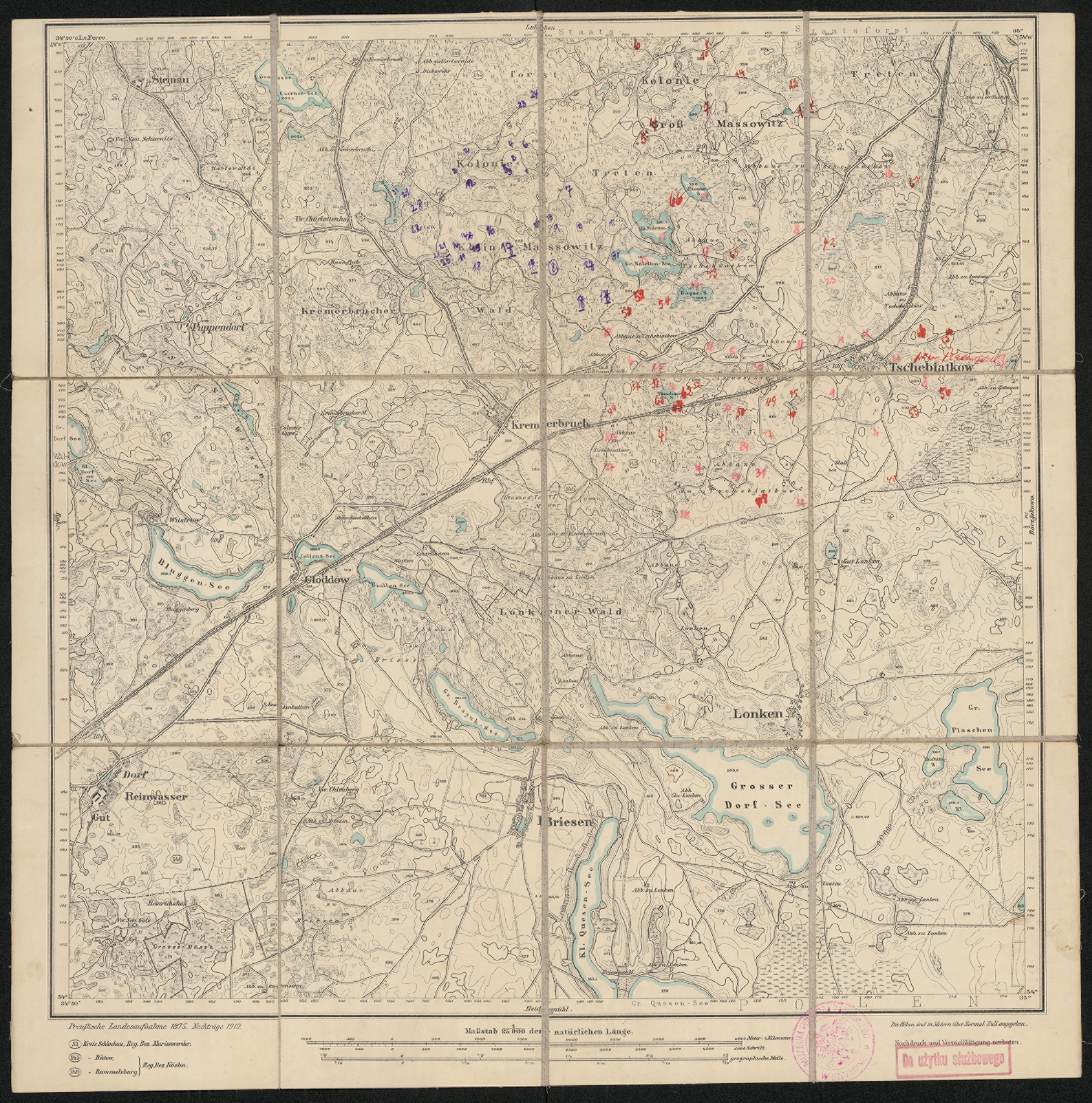 Mapa jest załącznikiem do spisu toponimów, wykonanego w ramach zainicjowanego przez pomorskiego językoznawcę dr. Roberta Holstena (1862–1954) projektu, polegającego na zebraniu z przedwojennej prowincji Pomorze w wyniku wywiadów terenowych i kwerendy źródeł nazw obiektów fizjograficznych naturalnych i antropogenicznych oraz miejsc zamieszkanych i niezamieszkanych. Mapy topograficzne typu Meßtischblatt w skali 1:25 000 charakteryzują się bardzo wysoką szczegółowością i dokładnością odwzorowania topografii terenu.