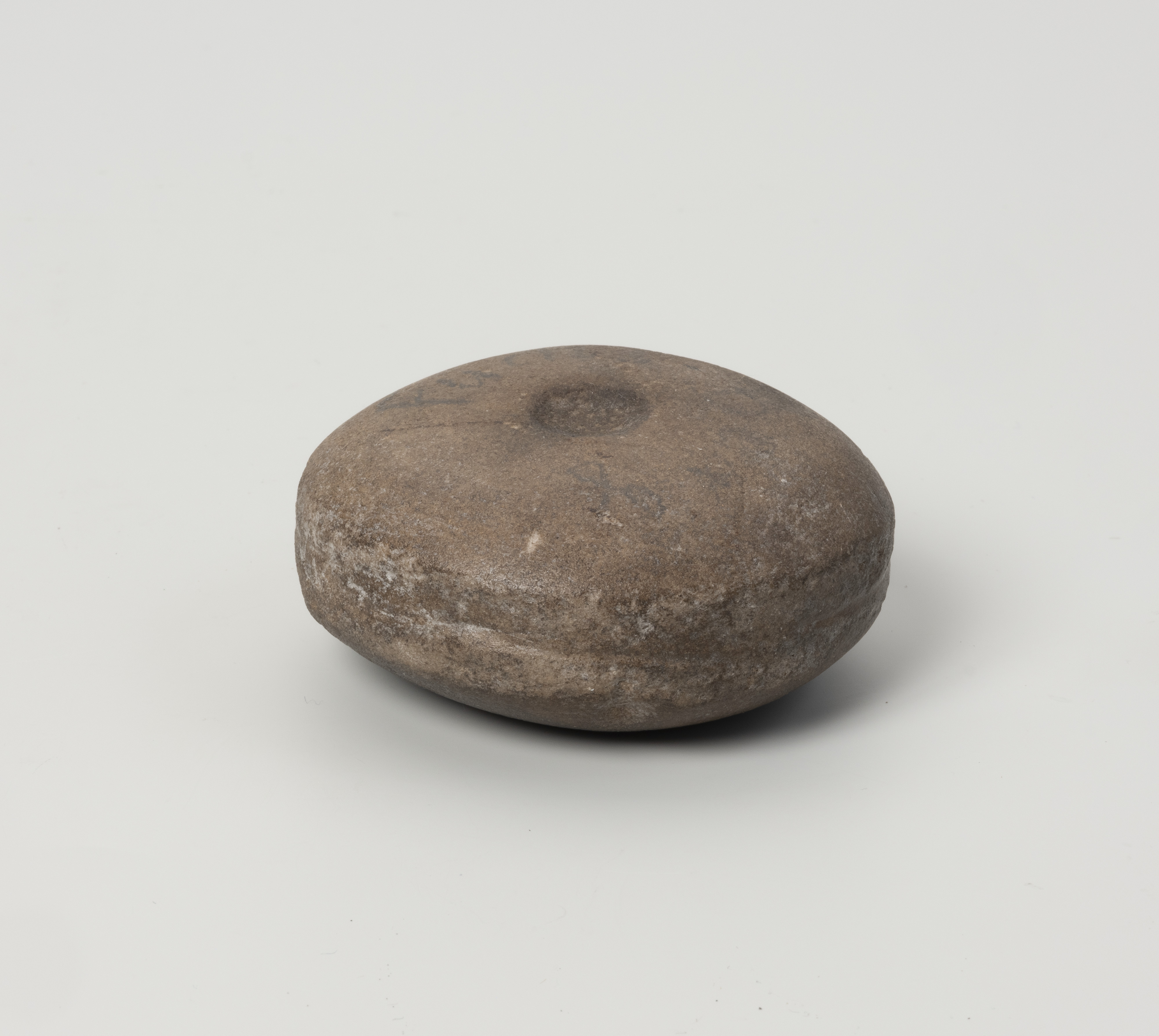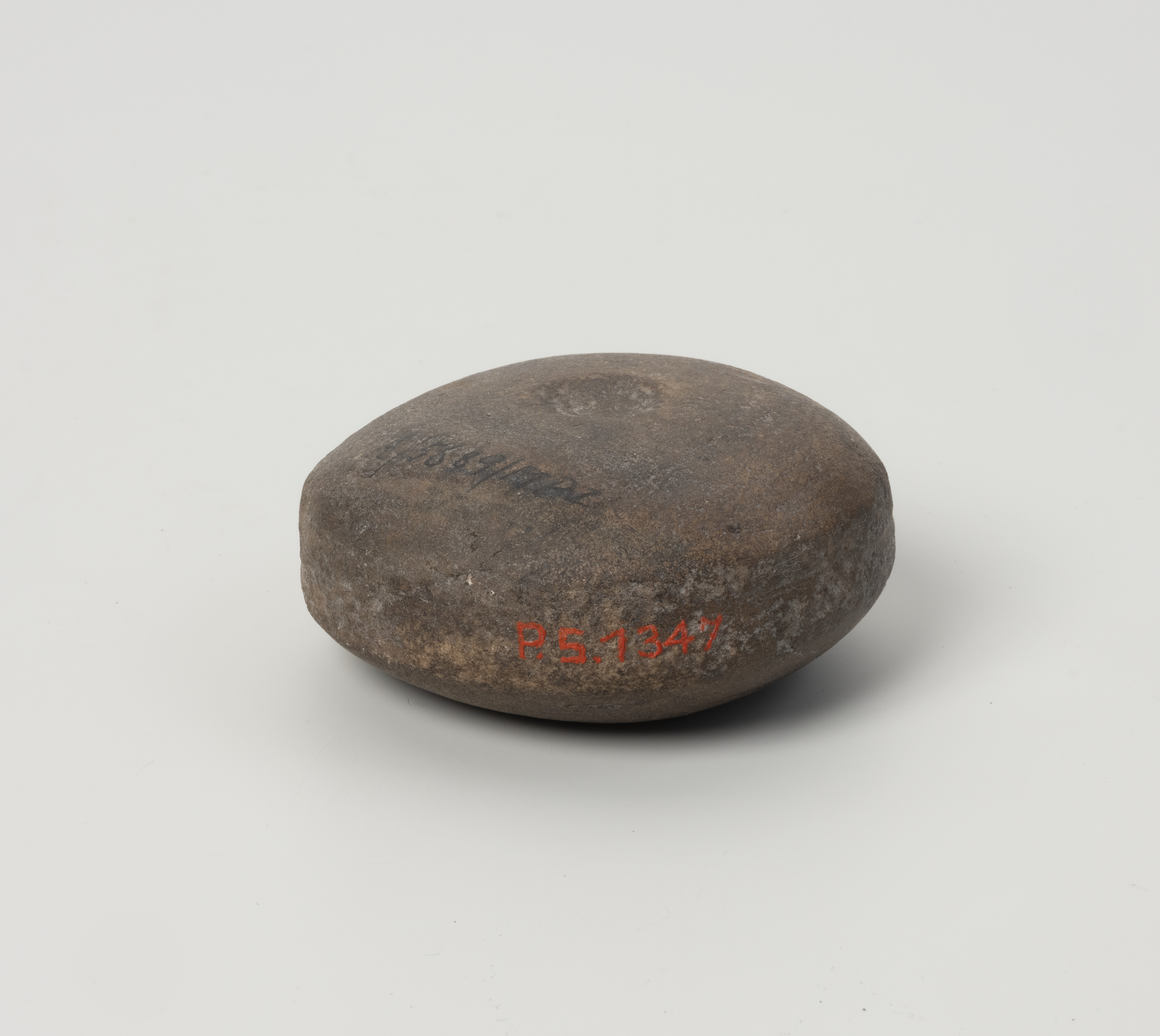 Ten tajemniczy przedmiot kamienny ma niecałe 7 cm średnicy i kształt spłaszczonej kuli, na której obu biegunach widnieją koliste wgłębienia, natomiast po obwodzie biegnie delikatnie zarysowany szeroki żłobek. Narzędzia tego rodzaju, należą do typu znalezisk określanych jako kamienie żłobkowane lub kanelowane (niem. Rillensteine, Kannelursteine). Prezentowany egzemplarz został znaleziony w zachodniopomorskiej miejscowości Swobnica w powiecie gryfińskim. Do zbiorów muzealnych w Szczecinie dostarczył go konrektor (wicedyrektor) jednej ze szkół szczecińskich, Reinhold Richter. Sądząc po numerze dawnej sygnatury (P.S. 1347), miało to miejsce najpewniej pod koniec lat 20. lub na początku lat 30. XX stulecia.