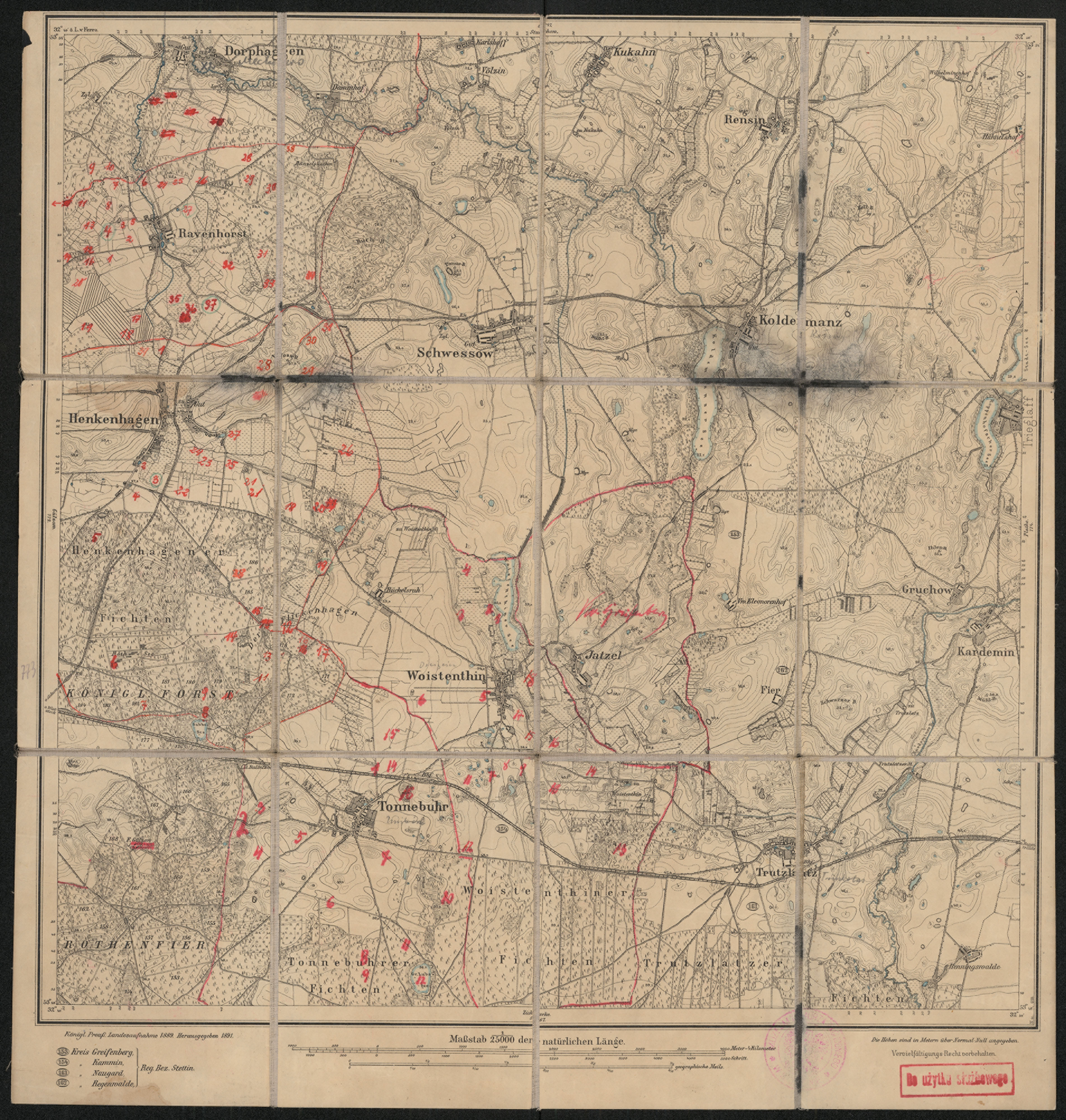 Mapa jest załącznikiem do spisu toponimów, wykonanego w ramach zainicjowanego przez pomorskiego językoznawcę dr. Roberta Holstena (1862–1954) projektu, polegającego na zebraniu z przedwojennej prowincji Pomorze w wyniku wywiadów terenowych i kwerendy źródeł nazw obiektów fizjograficznych naturalnych i antropogenicznych oraz miejsc zamieszkanych i niezamieszkanych. Mapy topograficzne typu Meßtischblatt w skali 1:25 000 charakteryzują się bardzo wysoką szczegółowością i dokładnością odwzorowania topografii terenu.