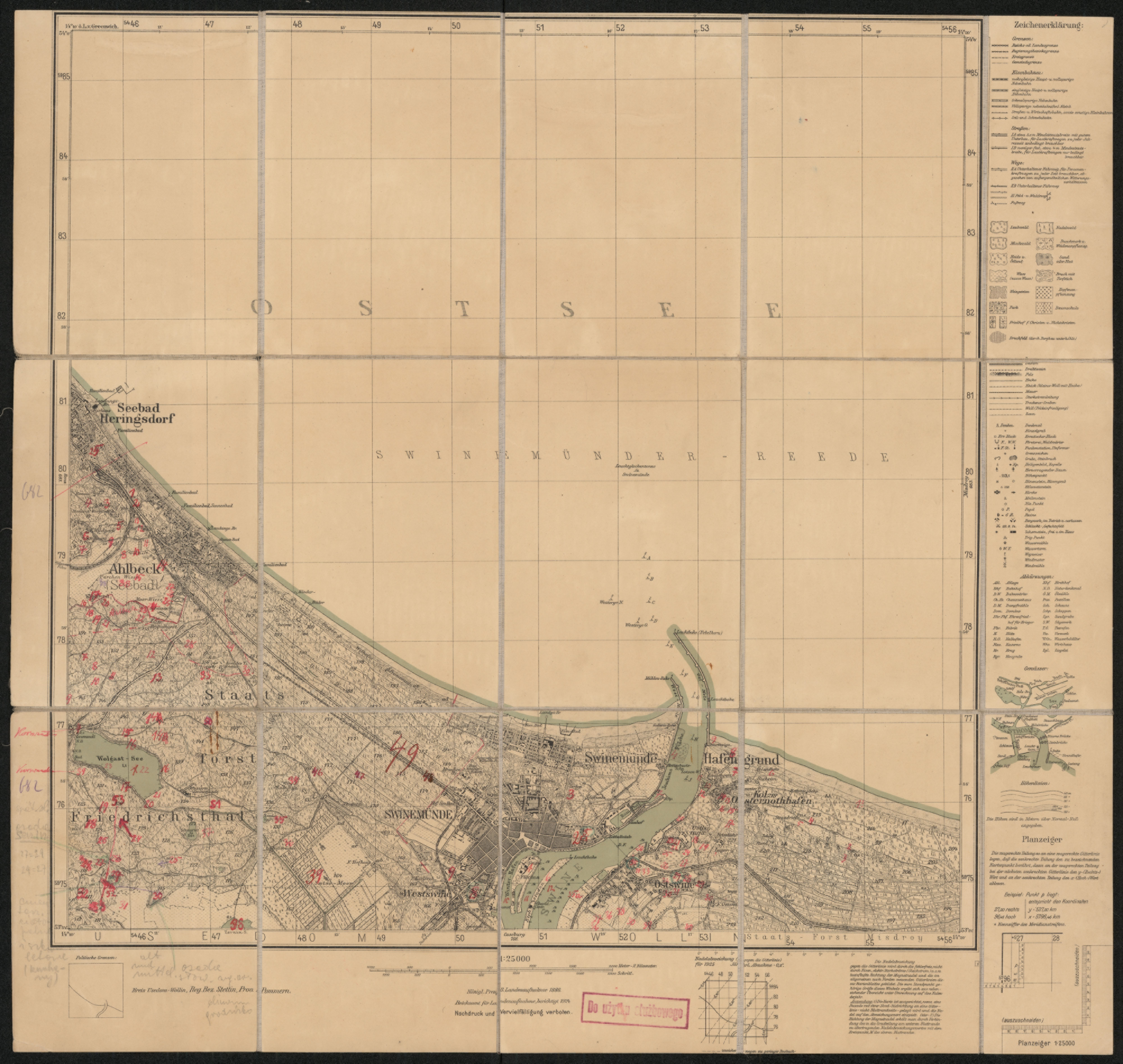 Mapa jest załącznikiem do spisu toponimów, wykonanego w ramach zainicjowanego przez pomorskiego językoznawcę dr. Roberta Holstena (1862–1954) projektu, polegającego na zebraniu z przedwojennej prowincji Pomorze w wyniku wywiadów terenowych i kwerendy źródeł nazw obiektów fizjograficznych naturalnych i antropogenicznych oraz miejsc zamieszkanych i niezamieszkanych. Mapy topograficzne typu Meßtischblatt w skali 1:25 000 charakteryzują się bardzo wysoką szczegółowością i dokładnością odwzorowania topografii terenu. Mapę 682 Swinemünde I opracowano i wydano w 1886, a skorygowano w 1924 roku. Obejmuje obszar w pobliżu miejscowości Swinemünde, Kreis Usedom-Wollin, Reg. Bez. Stettin, Prov. Pommern, dziś Świnoujście, miasto na prawach powiatu, woj. zachodniopomorskie, Polska. Jest jedynym zachowanym egzemplarzem arkusza przedwojennej mapy topograficznej oznaczonego godłem 682, zawierającym dane o lokalizacji obiektów i ich nazw w zasobie archiwalnym Flurnamen Sammlung. Na drukowanej mapie ręcznie naniesiono warstwę z numeracją obiektów fizjograficznych odnoszących się do miejscowości: Seebad Heringsdorf, Ahlbeck, Korswandt, Swinemünde. Andrzej Chludziński